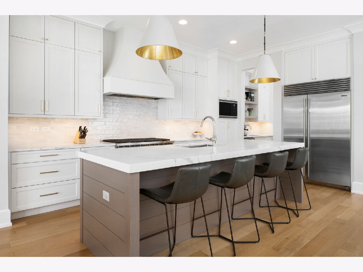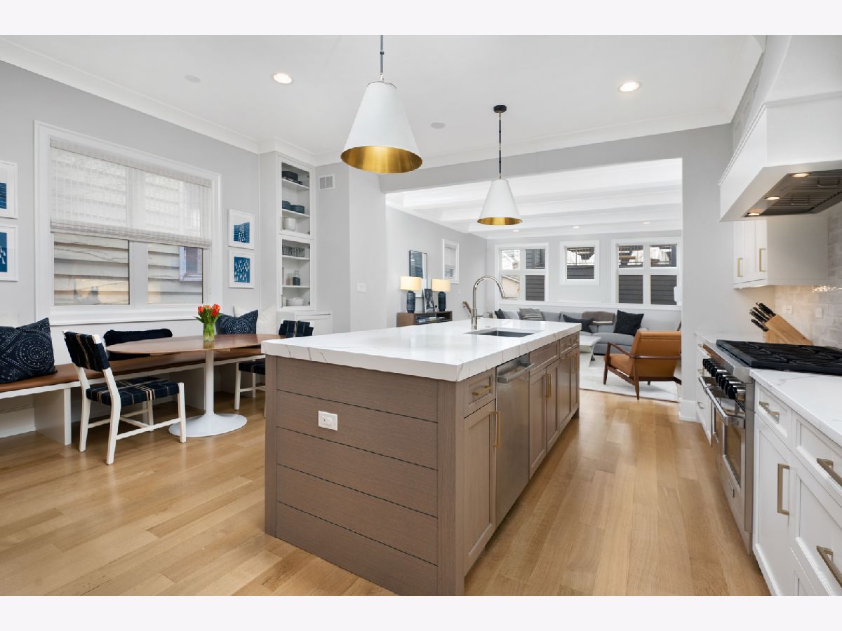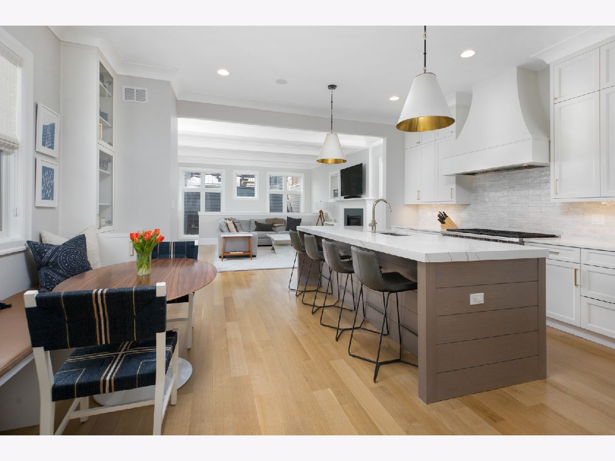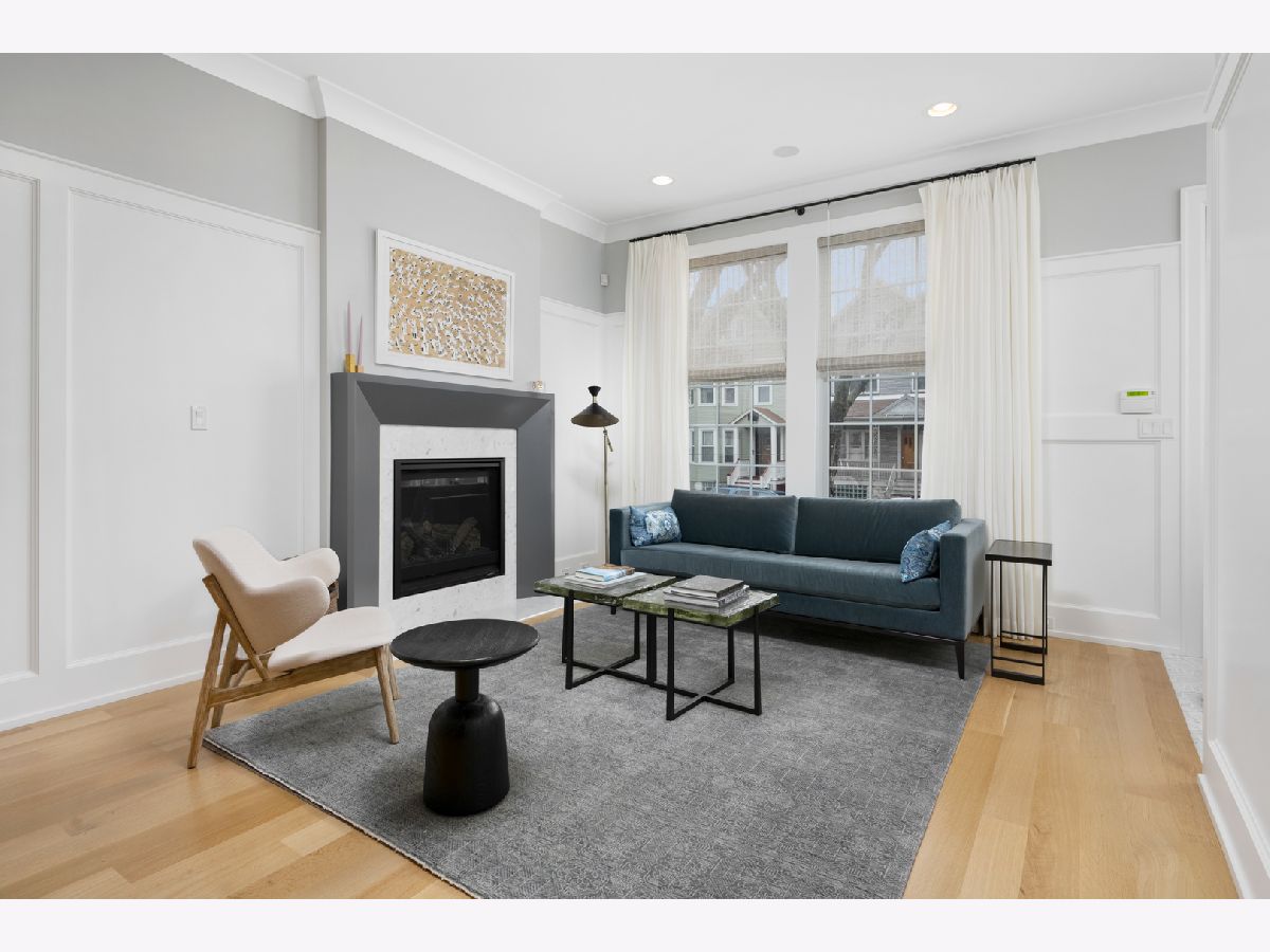 Impeccably maintained and wonderfully upgraded this 2019 home built by Barrett Homes is a true showstopper! Nestled on quiet, one way Henderson Street just a block from all Roscoe Village has to offer this gorgeous, light filled home showcases 6 bedrooms|4.5 baths and the finest interior finishes throughout. Features include a formal living room/dining room combo with beautiful millwork and a fireplace, Chef's kitchen complete with custom cabinetry, commercial grade appliances, a 10 ft island with seating, built-in banquet and desk, walk in pantry and butler's panty. The kitchen overlooks a generous great room with beamed ceilings/millwork and additional fireplace. 2nd level offers 4 generous sized bedrooms, 3 baths and a laundry room all on the same level. Stunning primary suite with vaulted ceilings, 2 large walk in closets, luxurious spa-like bath w/steam shower, soaking tub, split vanities, and heated flooring. Lower level competes this home with 2 additional bedrooms, recreation room, multiple custom built-ins, and wet bar. Outdoor space includes a large back patio and finished rooftop deck w/pergola. The sellers spent over $100,000 upgrading their home!