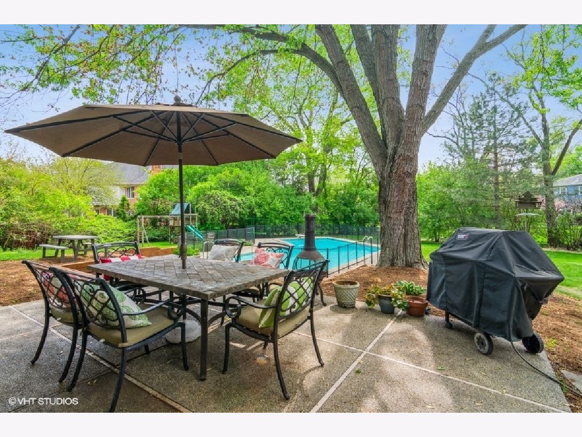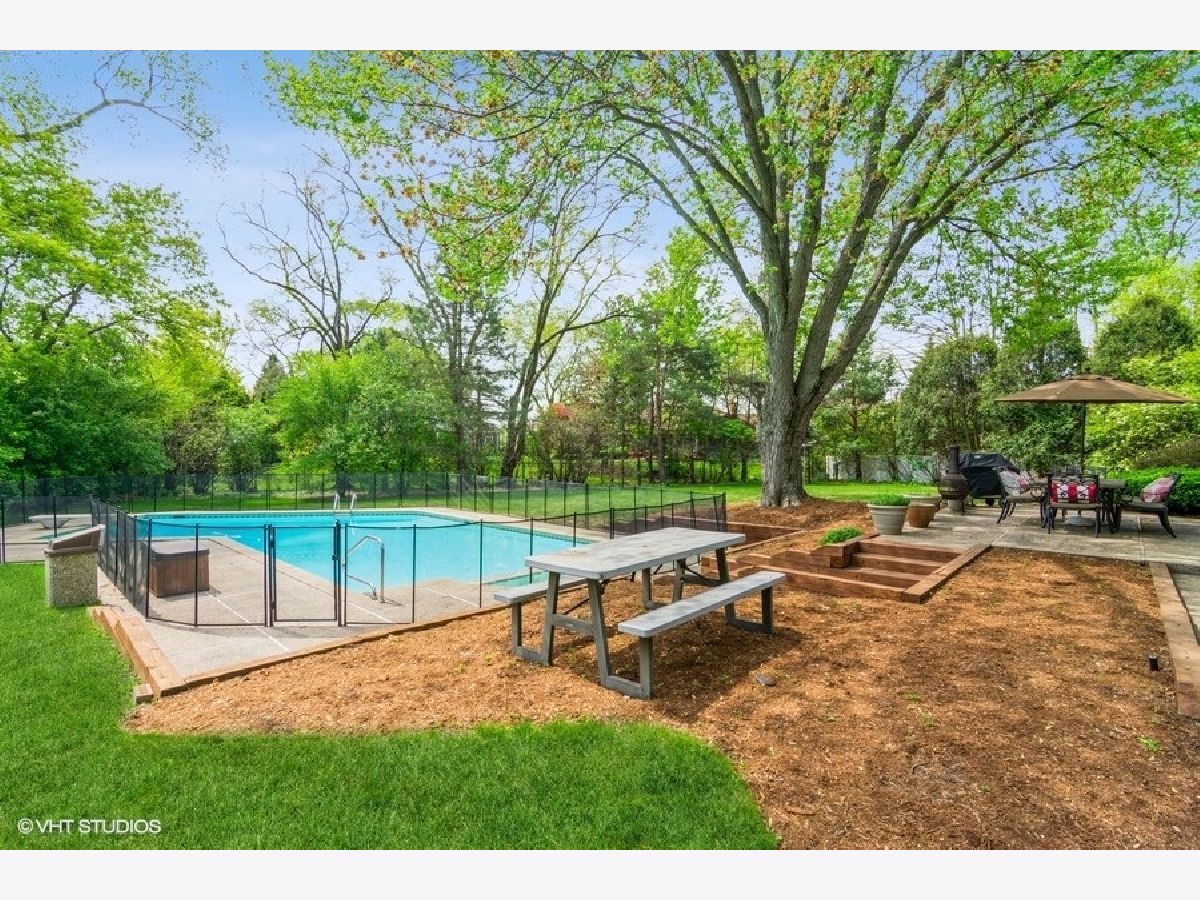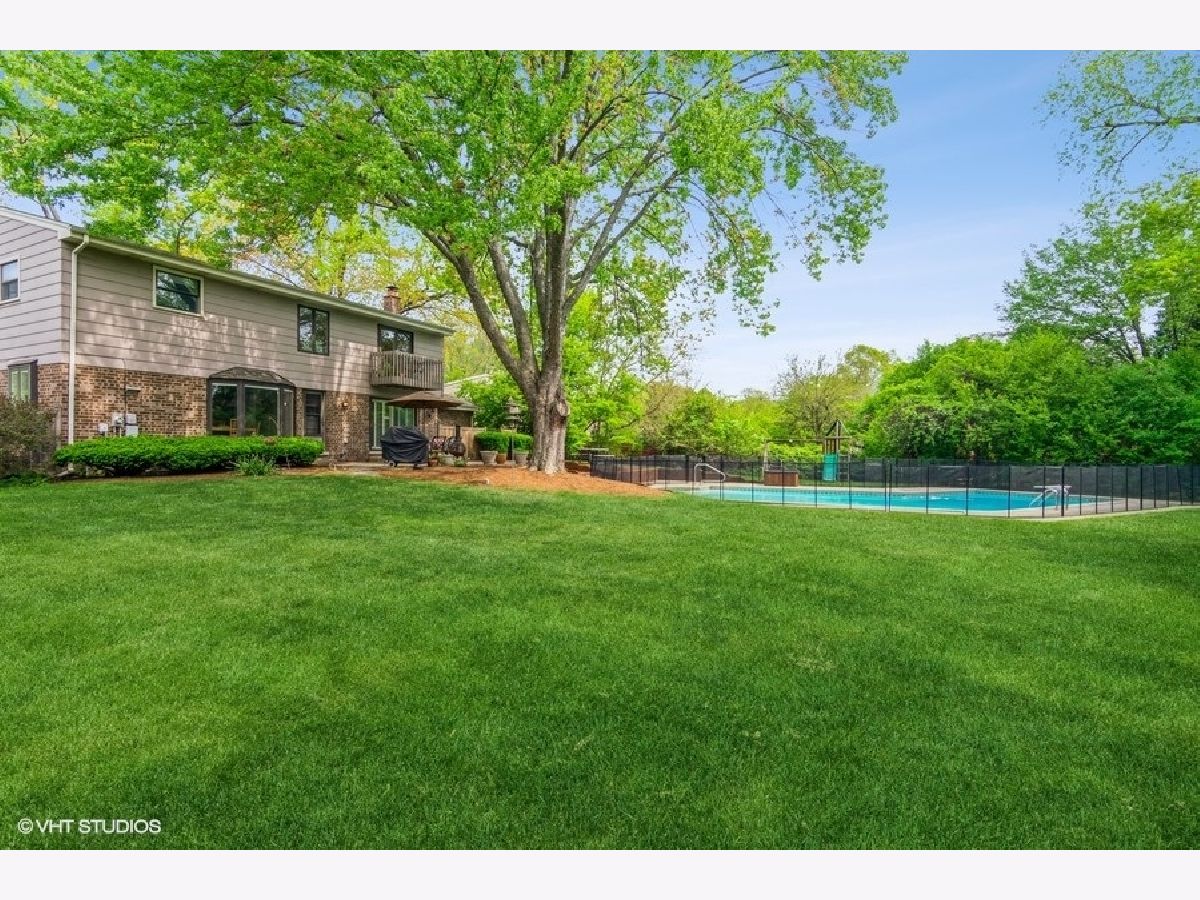 Your own private oasis in the middle of Northbrook! Spacious home on large 1/2 acre lot on one of the quietest streets in Northbrook. 4 bedrooms, 2.1 baths plus a full finished basement. In-ground pool with spa, patio, and spacious yard with a play set greet you in the back. This lot is a gardener's paradise! First floor features an oversized living room, separate dining room with built-in cabinets, cook's kitchen with large eating area and plenty of storage. A family room / den with wet bar, wood-burning fireplace and wine fridge off the light-filled foyer. Laundry and a half bath complete the first floor. Upstairs you'll find a massive main bedroom suite with walk-in closet and balcony overlooking the pool, three more bedrooms (one could make a great work from home office), a hall bath with twin vanities, and a linen closet. Under the carpet on the stairs and upstairs bedrooms is all oak hardwood flooring. Basement is finished out as a large recreation room complete with bar. 2-car attached garage. So much to love in a great location!
