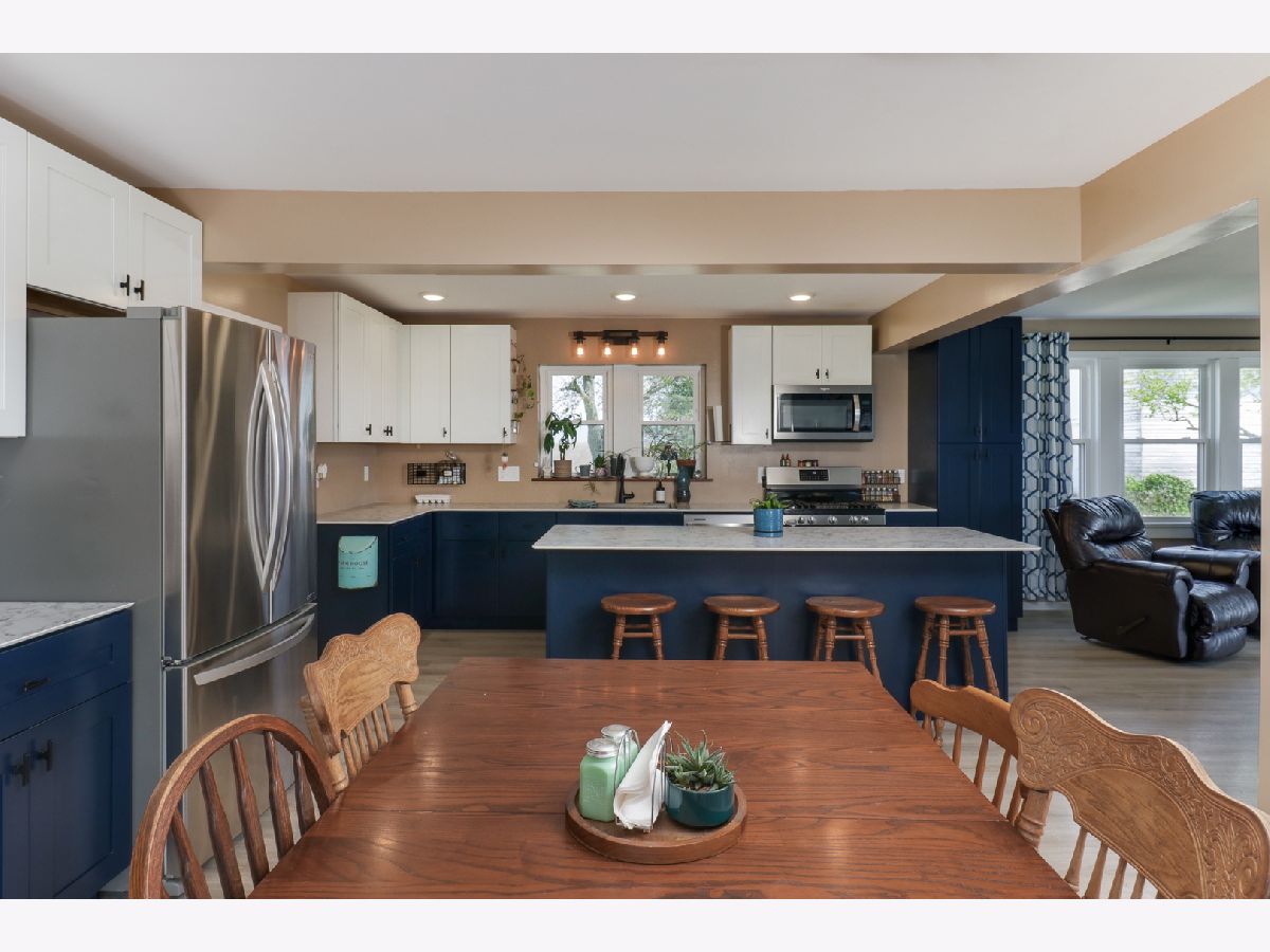 Welcome to this beautifully updated 4 bedroom, 2.5 bathroom two-story farmhouse, perfectly situated on a picturesque 2.91 acre lot. Tucked away down a private lane, this charming home offers a tranquil setting with an expansive footprint and a wealth of amenities inside and out. Starting with the home, step into the inviting mudroom, complete with a large closet, before entering the stunning open-concept living space. The kitchen is a true showstopper featuring an island, updated cabinetry, modern countertops, stylish fixtures, and stainless-steel appliances. It seamlessly flows into the dining room, which offers beautiful views of the property through sliding patio doors. The spacious living room boasts large windows and a cozy adjoining nook, perfect for a reading corner, play area, or home office. A generous main-level laundry room includes tiled flooring, cabinetry, and ample counter space for everyday convenience. A true highlight is the stunning 3-season room, showcasing a vaulted beam ceiling and walls of windows that flood the space with natural light. The all-new first-floor primary suite offers double closets and a luxurious en-suite bath featuring a walk-in shower. Completing the main level is a roomy full bathroom with a tub/shower combo. Upstairs, you'll find three additional bedrooms, each with great closet space, a dedicated office, and a convenient half-bathroom. The home also includes an appealing basement and an attached 1 car garage. To the outdoors, the fully fenced backyard is designed for enjoyment and relaxation with a 15' x 21' concrete patio, which connects to both the 3-season room and dining area, as well as a fire pit and ample space for a play set or other outdoor activities. The property's charm continues with a large barn featuring an attached and enclosed 35' x 40' metal lean-to, an additional barn/shed, utility shed, grain bin, insulated yard shed with electricity and two dog runs, chicken coop, garden space, and freshly planted apple and peach trees enhancing the rural lifestyle. In the past four years, major system upgrades have been completed, including a new furnace with a whole-home humidifier and hypoallergenic purification system, central air, updated ductwork, electrical, well equipment, and more. With its thoughtful updates, beautiful land, and versatile amenities, this property offers the ideal setting for peaceful country living, while providing all the comfort and convenience you could want in a home. A must-see for those seeking space, charm, and functionality!