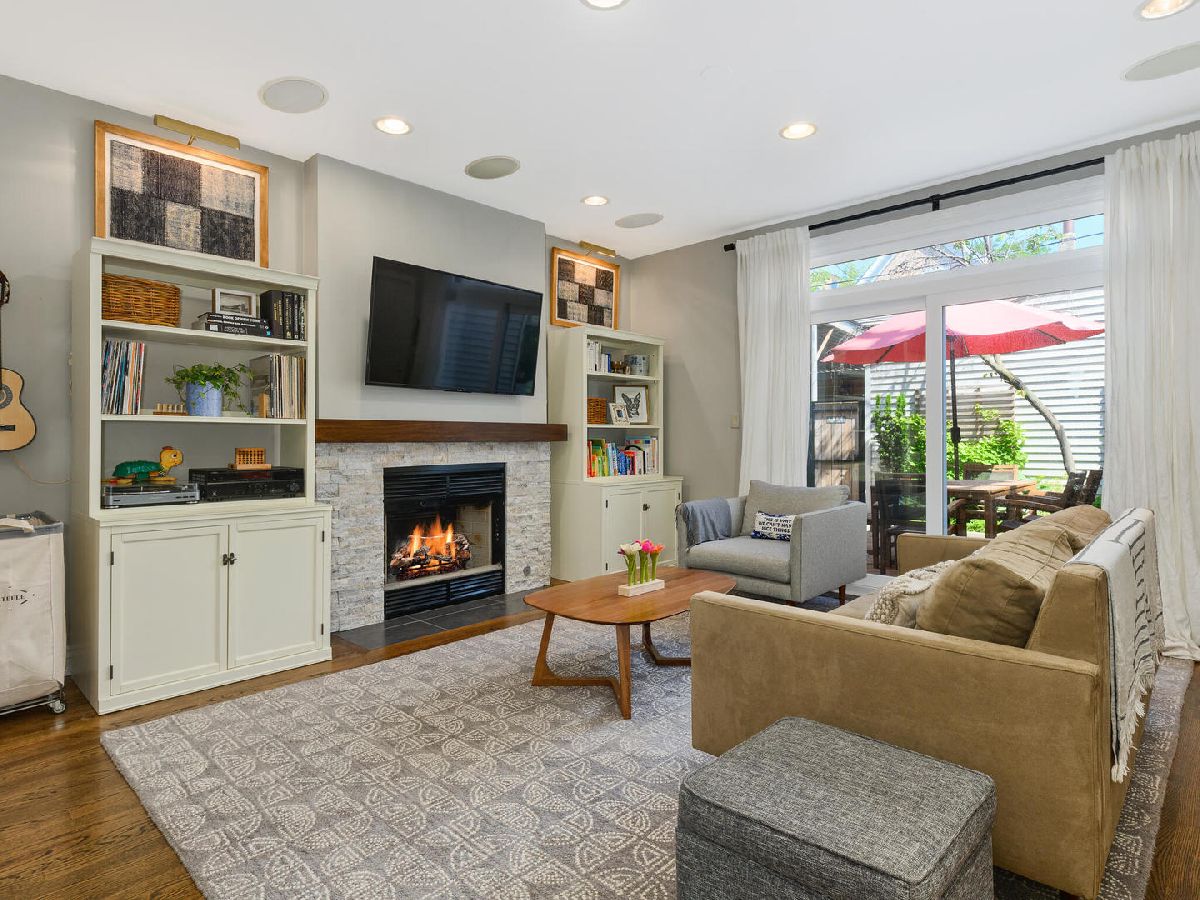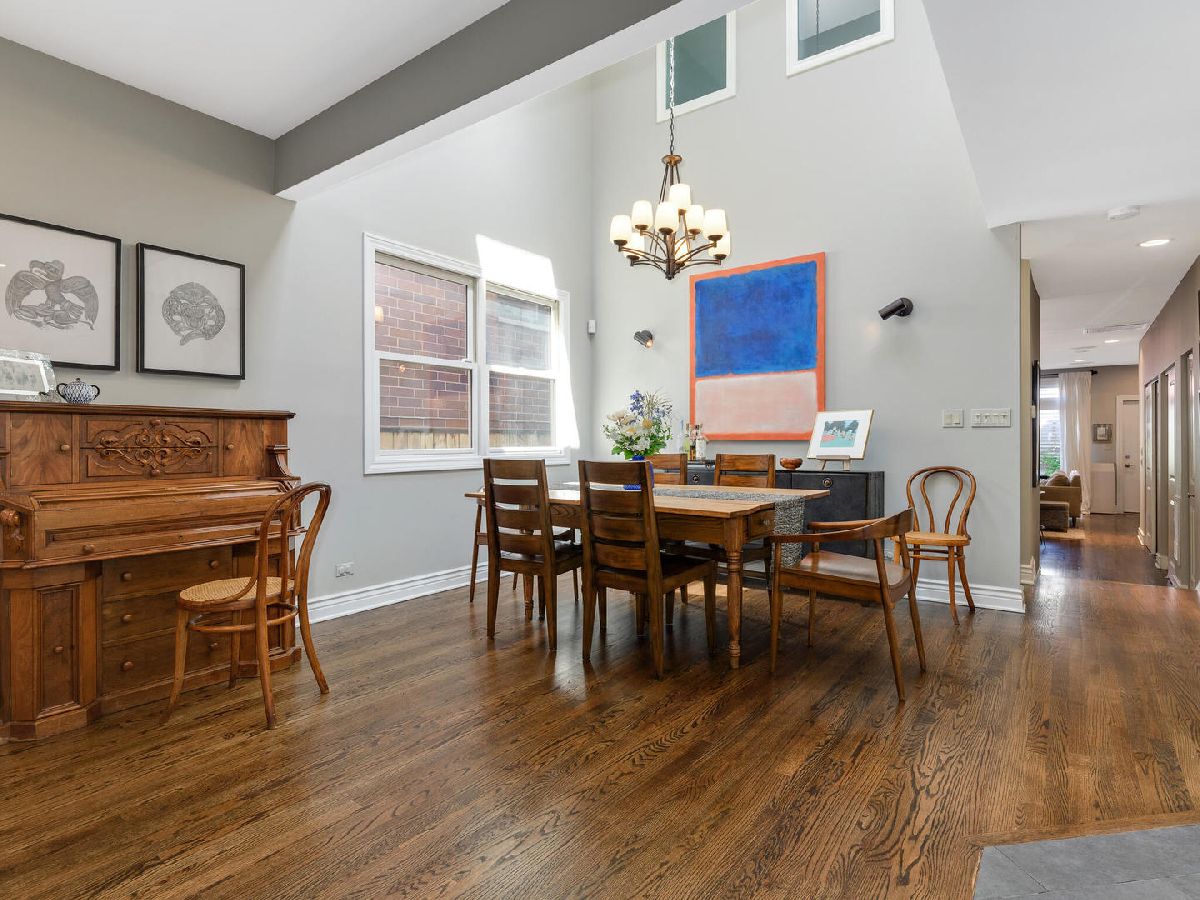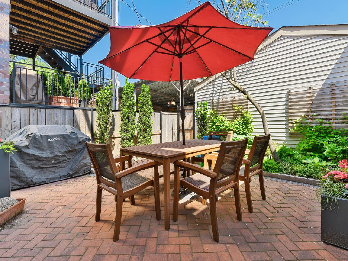 Beautiful, timeless and functional! This perfectly designed home is situated on an extra-long lot on one of Wicker Park's prettiest tree lined streets! Outdoor space abounds starting with a charming front patio which can be accessed through the living room French doors! The living room also has a wood burning fireplace and opens to a dramatic 2 story dining room with skylights and plenty of room for a large dining set. Gorgeous, open, chef's kitchen featuring white cabinetry with designer quality hardware, beautiful granite counters, center island with overhang and stainless steel appliances. The kitchen opens to a family room with a fireplace that faces a private, brick paver patio - perfect for entertaining! The rare breezeway offers an enclosed route to the attached 2 car garage and also opens to the patio! A powder room and closet located between living/dining and kitchen/family rooms plus an organized entry system and main level laundry are all functional additions to the main level. The 2nd floor offers tons of natural light and 3 bedrooms. The king-size primary bedroom has a custom finished walk-in closet and another full wall of closet space. Both the primary and guest bath were renovated in 2021 with Toto/Kohler/Axor finishes and a walk-in steam shower in the primary bath. The front bedroom offers tree top views through floor to ceiling windows 3rd bedroom is also has great light and closet space. The 3rd floor can function as an additional bedroom, family room, exercise room or home office and is connected to a spacious rooftop deck! Other improvements - roof & gutters 2021, electrical upgrade 2019, walnut stained oak hardwood floors throughout with newly installed hardwood on 2nd and 3rd floors 2017, landscaping & sprinkler system 2019, Garage door 2020, several zones of wired-in speakers 2017. New light fixtures, closet organizers and window treatments throughout. A++ Wicker Park location nestled between the 6 corners/Damen L stop and prime Division Street restaurant row. Also near I90/94, Downtown, shopping and short walk to the 606 trail! Sellers prefer to close around Feb 1, but can potentially be flexible.