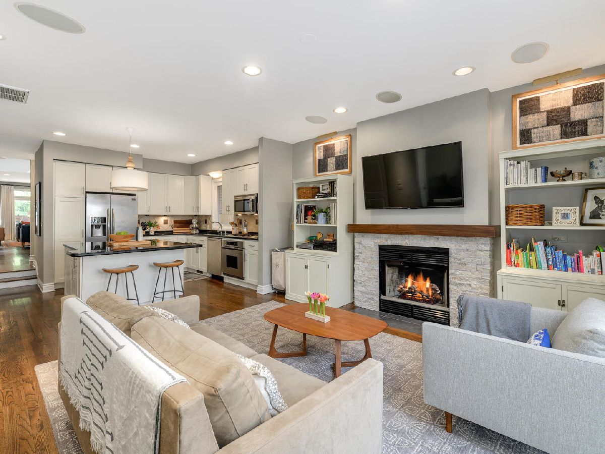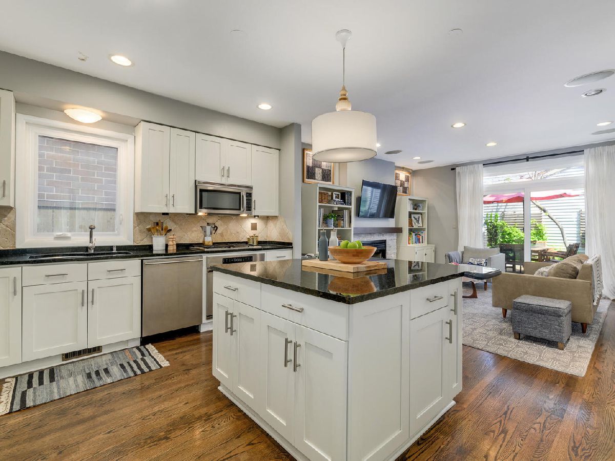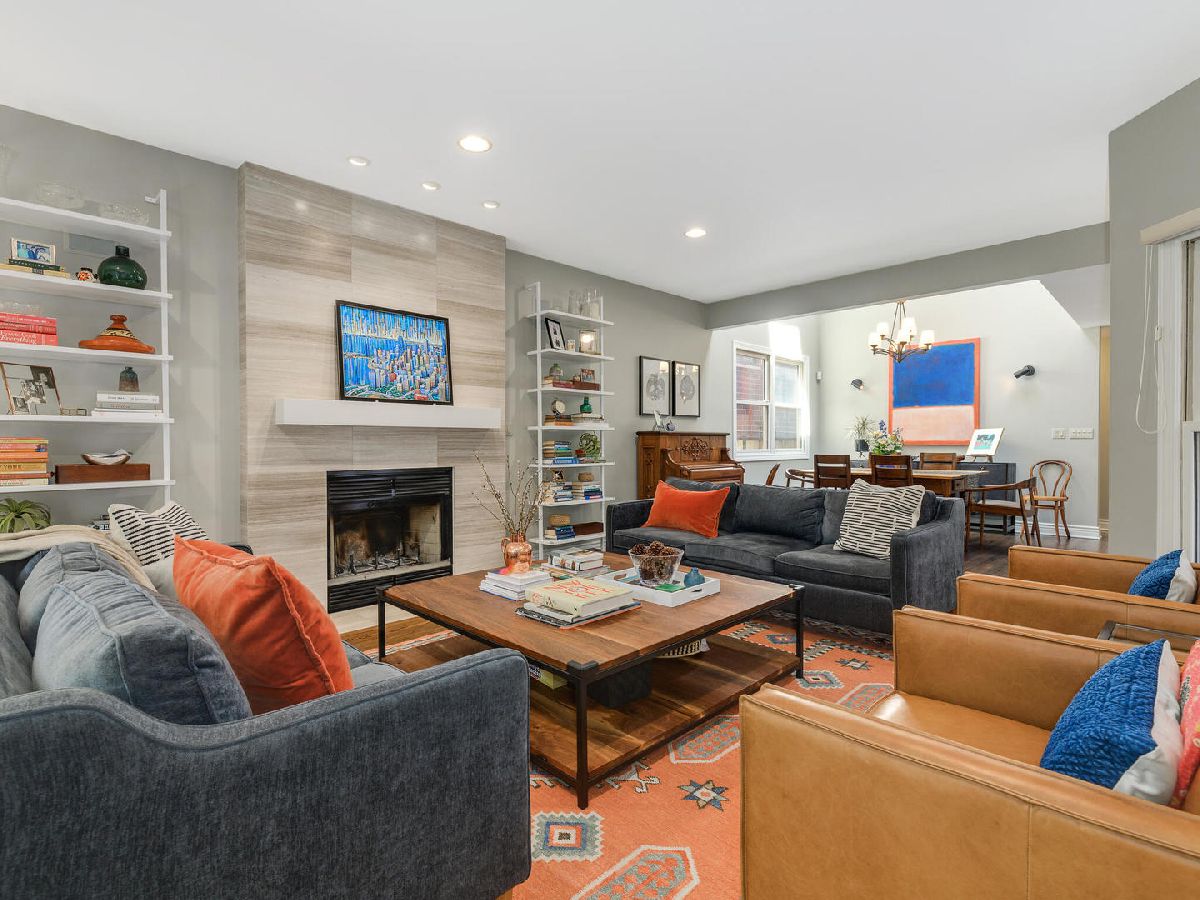 Beautiful, timeless and functional! This perfectly designed home is situated on an extra-long lot on one of Wicker Park's prettiest tree lined streets! Outdoor space abounds starting with a charming front patio which can be accessed through the living room French doors! The living room also has a wood burning fireplace and opens to a dramatic 2 story dining room with skylights and plenty of room for a large dining set. Gorgeous, open, chef's kitchen featuring white cabinetry with designer quality hardware, beautiful granite counters, center island with overhang and stainless steel appliances. The kitchen opens to a family room with a fireplace that faces a private, brick paver patio - perfect for entertaining! The rare breezeway offers an enclosed route to the attached 2 car garage and also opens to the patio! A powder room and closet located between living/dining and kitchen/family rooms plus an organized entry system and main level laundry are all functional additions to the main level. The 2nd floor offers tons of natural light and 3 bedrooms. The king-size primary bedroom has a custom finished walk-in closet and another full wall of closet space. Both the primary and guest bath were renovated in 2021 with Toto/Kohler/Axor finishes and a walk-in steam shower in the primary bath. The front bedroom offers tree top views through floor to ceiling windows 3rd bedroom is also has great light and closet space. The 3rd floor can function as an additional bedroom, family room, exercise room or home office and is connected to a spacious rooftop deck! Other improvements - roof & gutters 2021, electrical upgrade 2019, walnut stained oak hardwood floors throughout with newly installed hardwood on 2nd and 3rd floors 2017, landscaping & sprinkler system 2019, Garage door 2020, several zones of wired-in speakers 2017. New light fixtures, closet organizers and window treatments throughout. A++ Wicker Park location nestled between the 6 corners/Damen L stop and prime Division Street restaurant row. Also near I90/94, Downtown, shopping and short walk to the 606 trail! Sellers prefer to close around Feb 1, but can potentially be flexible.