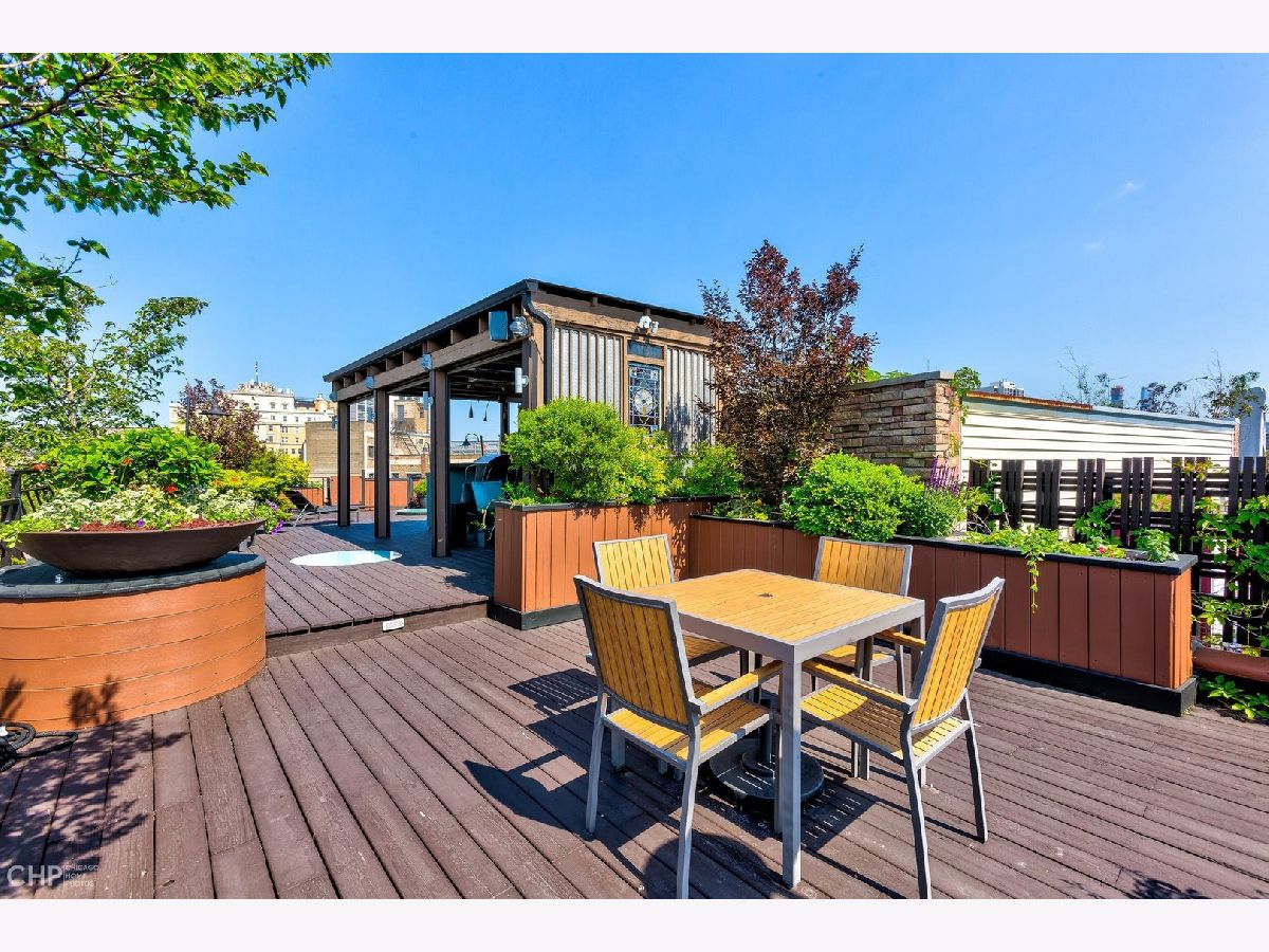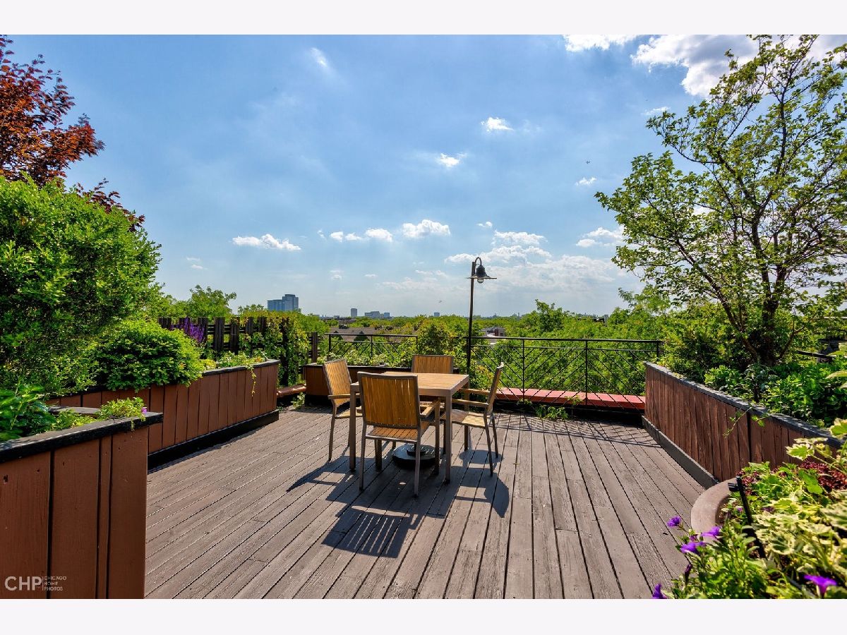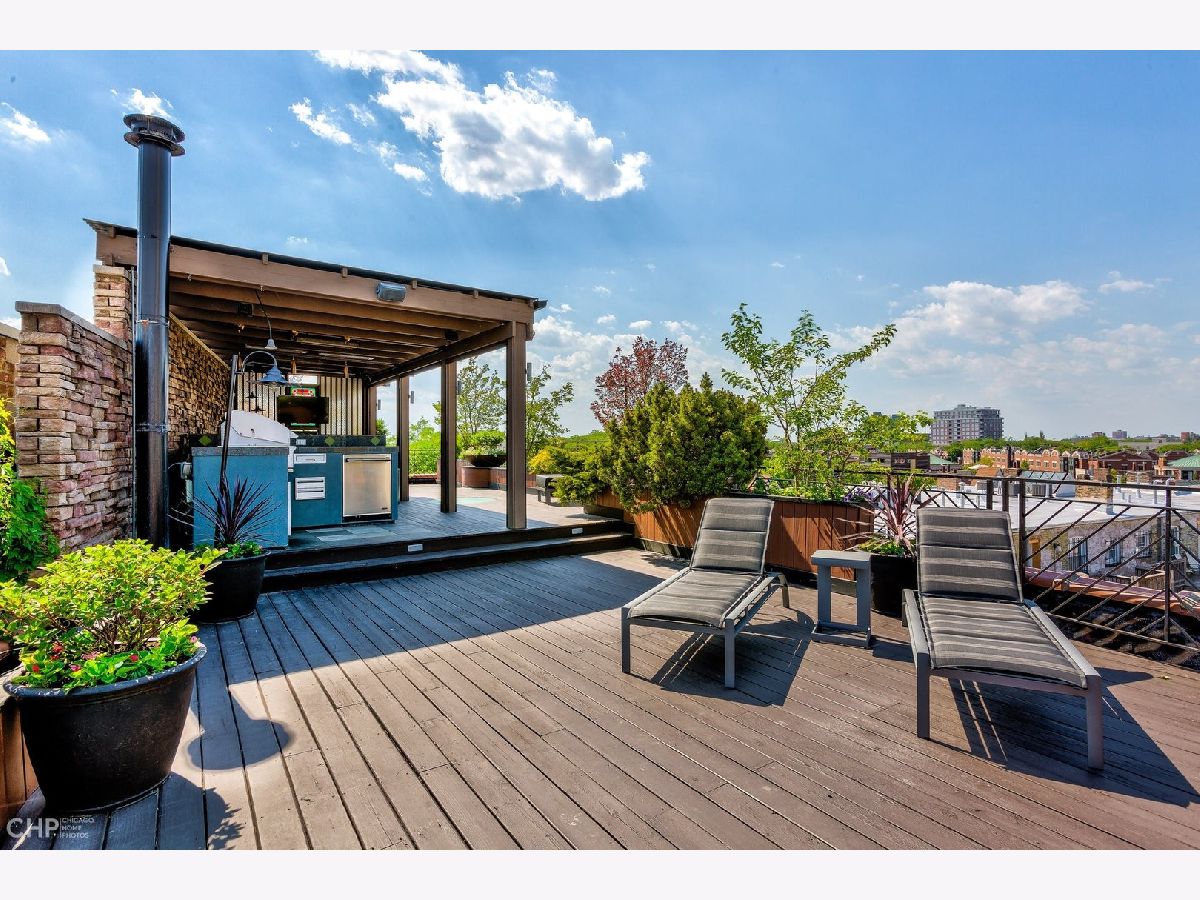 This 3000 sq ft duplex up, with professionally built out 1500 sq ft roof deck in the heart of Lincoln Park, is truly a special property. First floor features 14 foot ceilings with crown molding and endless character. This floor includes the dining area, and over-sized living room with built in cabinetry and a wood burning fireplace as well as a bay window overlooking the picturesque tree lined street. Continue on to the half bathroom, 2 sets of stairwells leading you to the bedrooms on the upper level and a chef's dream kitchen. Kitchen has plenty of room for a table, plus an absolutely massive eat in island, perfect for entertaining! Top of the line stainless steel kitchen appliances, built in wine fridge and ice maker complete this beautiful space. Upstairs level includes 3 full bedrooms and 2 additional bathrooms. Primary bedroom has a private balcony, custom walk in closet that passes through to the spa like en suite bathroom with double sinks, waterfall shower and jet tub. This unit has multiple outdoor spaces, one being a private roof deck just in time for the summer months. Roof deck has an outdoor kitchen, motorized shades, built in heaters, TV, irrigation system and skyline views! This space is one of as kind and hard not to fall in love with! Garage parking space and additional storage included!