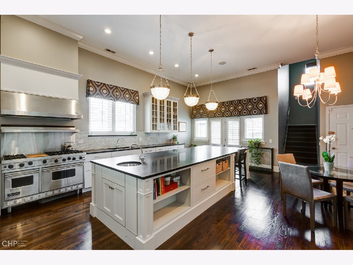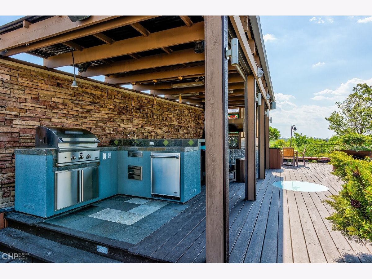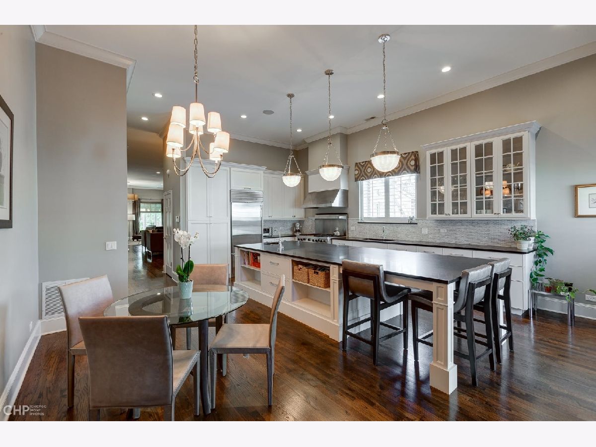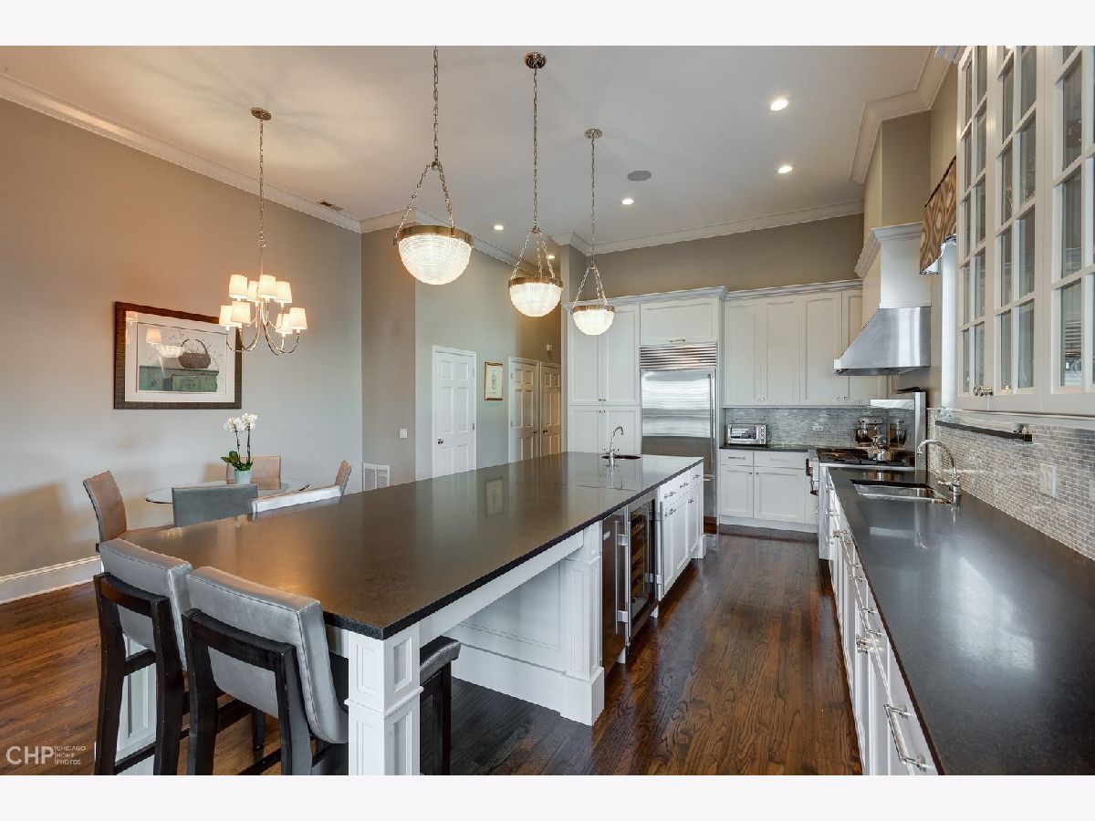 This 3000 sq ft duplex up, with professionally built out 1500 sq ft roof deck in the heart of Lincoln Park, is truly a special property. First floor features 14 foot ceilings with crown molding and endless character. This floor includes the dining area, and over-sized living room with built in cabinetry and a wood burning fireplace as well as a bay window overlooking the picturesque tree lined street. Continue on to the half bathroom, 2 sets of stairwells leading you to the bedrooms on the upper level and a chef's dream kitchen. Kitchen has plenty of room for a table, plus an absolutely massive eat in island, perfect for entertaining! Top of the line stainless steel kitchen appliances, built in wine fridge and ice maker complete this beautiful space. Upstairs level includes 3 full bedrooms and 2 additional bathrooms. Primary bedroom has a private balcony, custom walk in closet that passes through to the spa like en suite bathroom with double sinks, waterfall shower and jet tub. This unit has multiple outdoor spaces, one being a private roof deck just in time for the summer months. Roof deck has an outdoor kitchen, motorized shades, built in heaters, TV, irrigation system and skyline views! This space is one of as kind and hard not to fall in love with! Garage parking space and additional storage included!