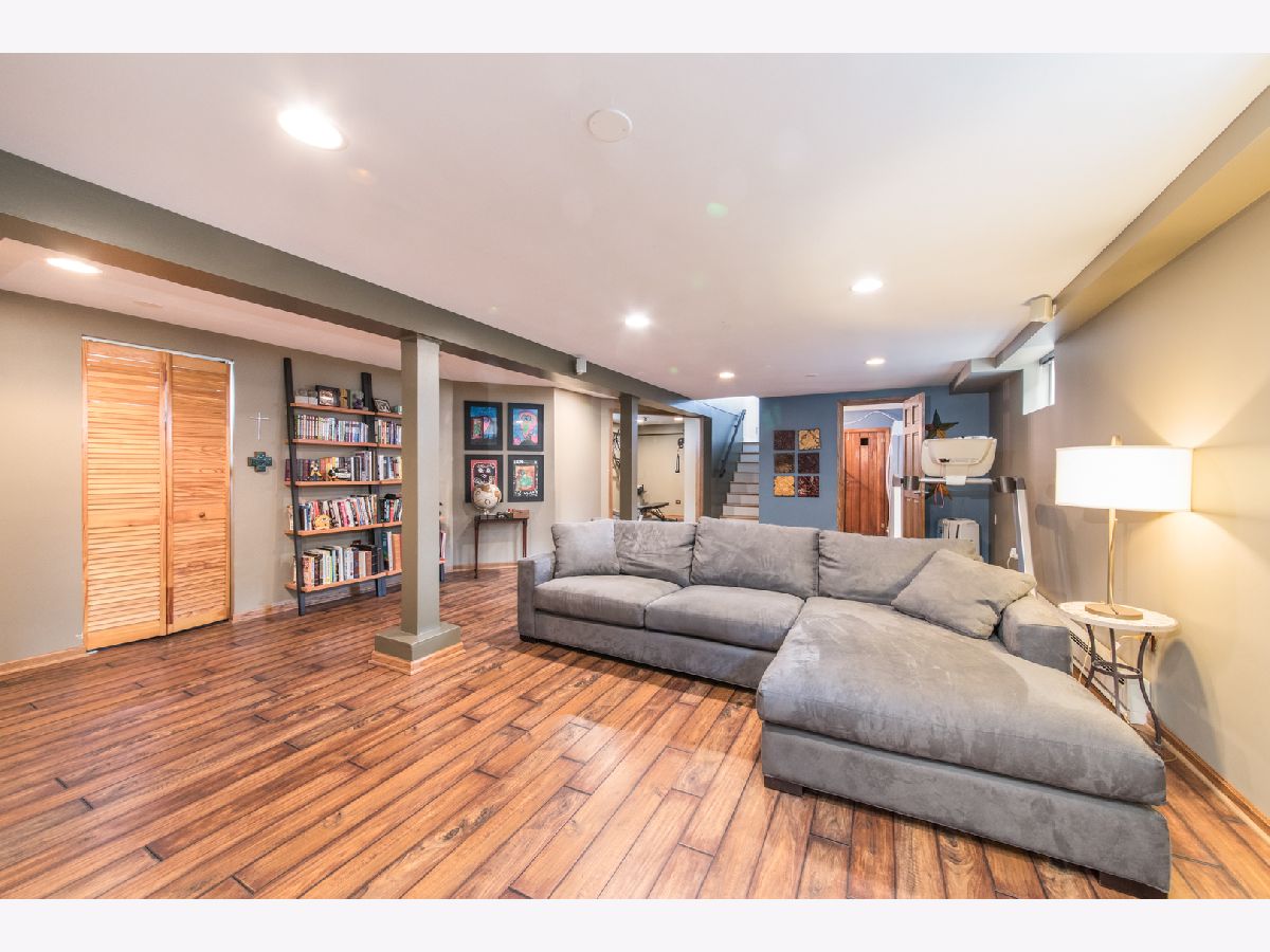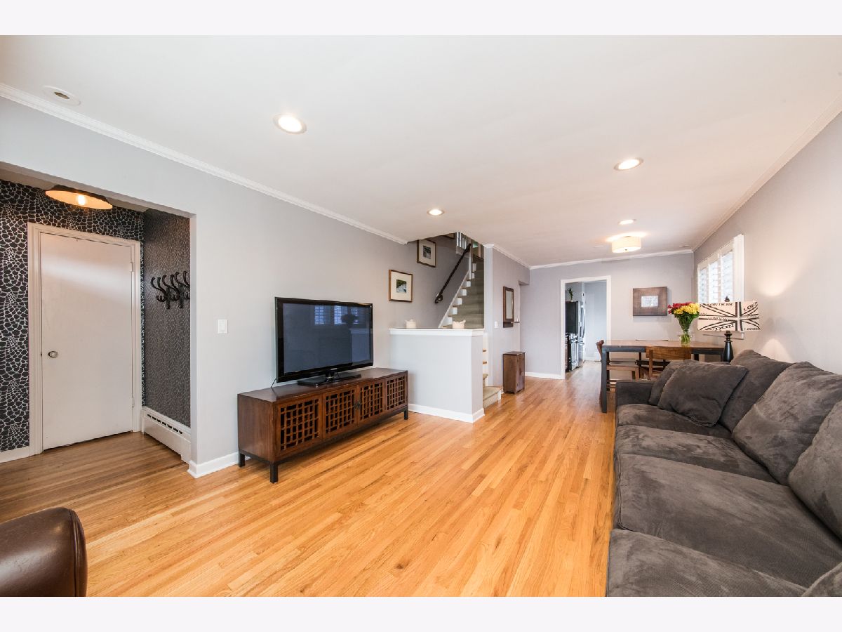 Welcome to this 4 bedroom, 2 1/2 bath home ready for you to move right in. Natural light flows throughout the first floor which features a living room with a bay window, plantation shutters, recessed lighting, a dining room off the eat in kitchen with all stainless-steel appliances, and an updated full bath. Hardwood floors throughout the first floor were recently refinished. Second floor bedrooms also have hardwood floors, and 3 bedrooms have professional closet organization systems. The full finished basement includes a large family/rec room, exercise room, laundry and half bath, still leaving plenty of room for storage. The fenced in backyard is ready to enjoy all summer with a nice patio and plenty of grass area. This home is close to parks, stores, CTA Blue Line and transportation.