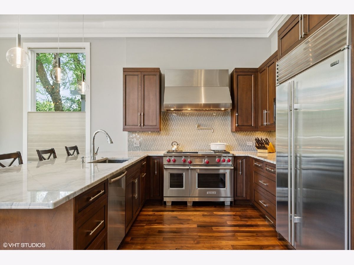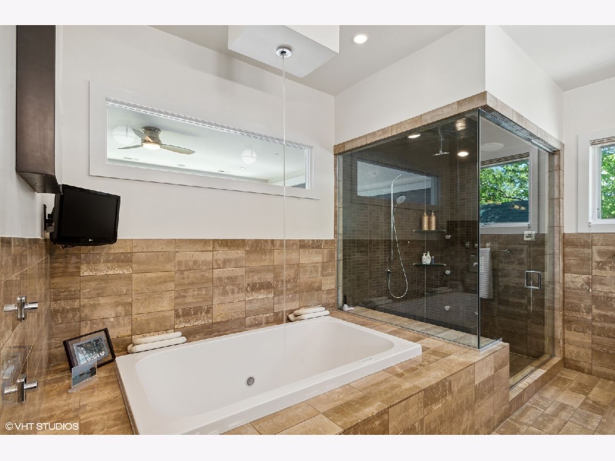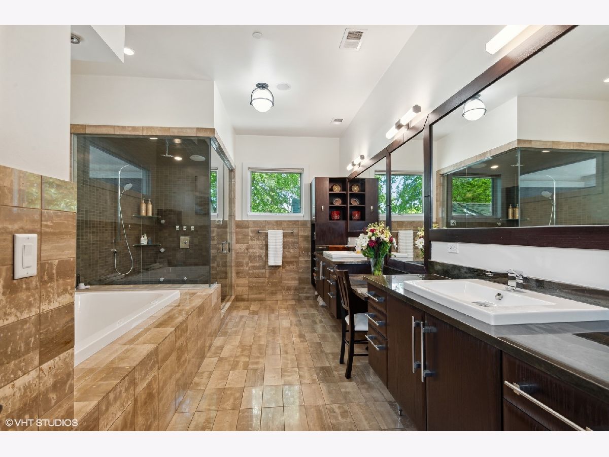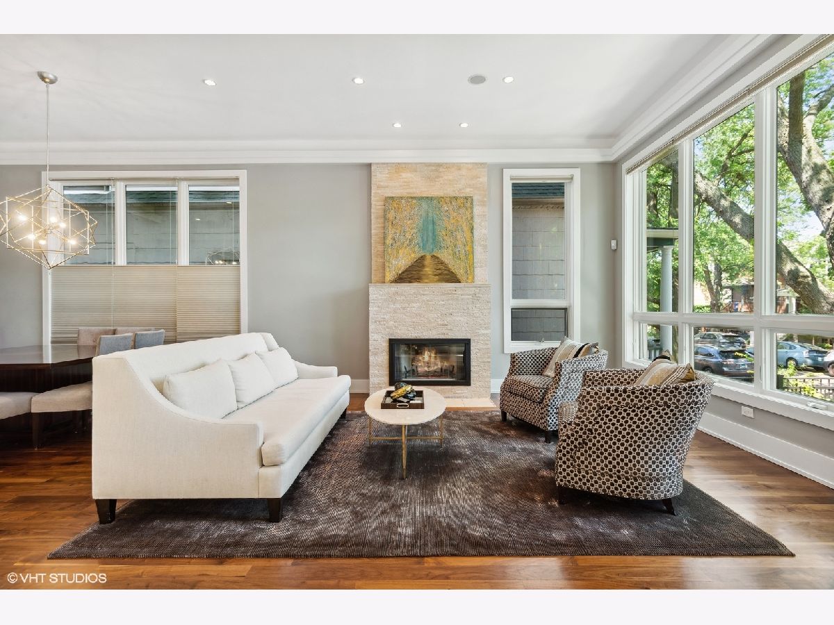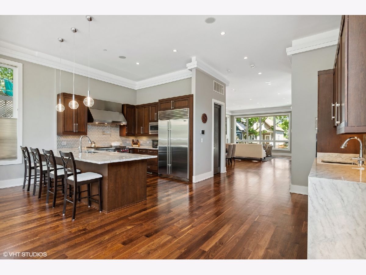 ROSCOE VILLAGE! Audobon School District. Full brick and limestone build on 30ft lot with a 3 car heated garage and elaborate landscaped outdoor spaces. Thoughtful floorplan blends 'open but distinct' extra wide layout. First thing your client will will take note of is how bright this home is with 11 foot ceilings & oversized windows everywhere! Two fireplaces, gas log in lower level and wood burning gas start in living area. Heated floors on every level, timeless millwork, walnut floors, and Control-4 automation with Lutron lighting. Classic chef's kitchen with Subzero, Wolf, quartzite counters. Family room/Kitchen also has a wet bar with built in Miele coffee maker, sink and dishwasher drawer. A wall of South facing rear windows create a sun filled family room and lower level rec room. Tricked out bar in the rec room to watch all the games! There are 4 bedrooms on the upper level with an enormous primary suite & an ensuite 2nd bedroom. Lower level has a large guest bedroom with a wall of windows. The home gym is well positioned next to the lower level bath with a steam shower to enjoy after workouts. Outdoor space is second to none, private and shaded garage roof deck with pergola and firetable, rear patio with built in grill and water fall feature completely redone and graded and drained. Walk to Roscoe Village, the Brown Line, Trader Joes, Marianos, Wrigley Field and Southport!
