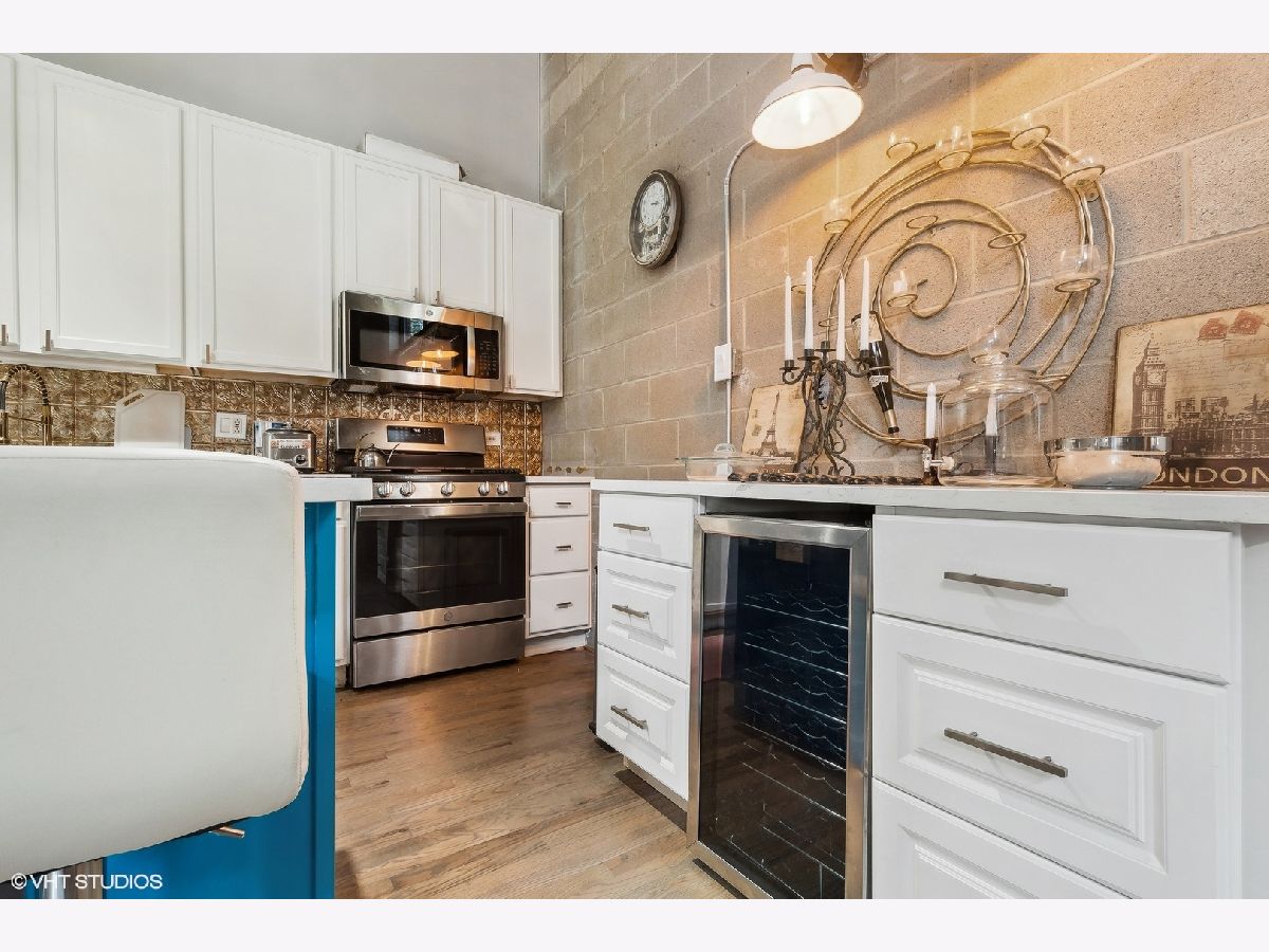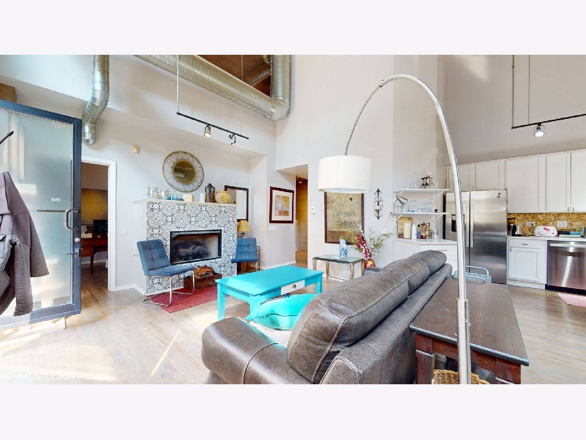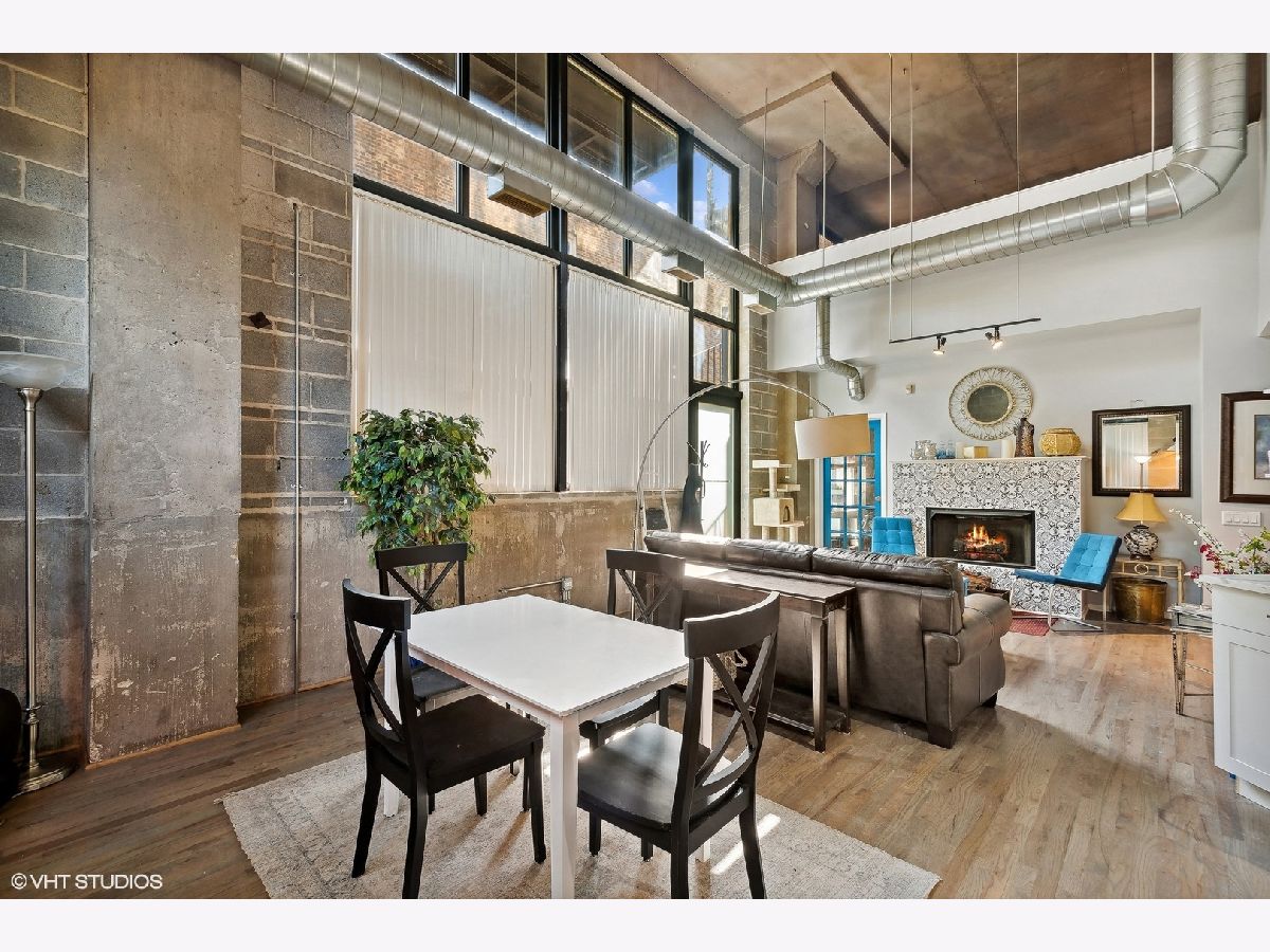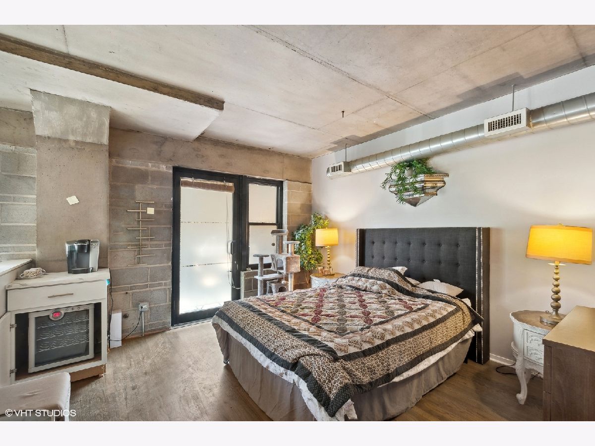 Time to move out of that one bedroom stuffy apartment to this two bedroom, two full bathroom New York styled concrete loft. Harwood floors throughout that have been newly refinished. All new ss appliances, refrigerator, space saver microwave, dishwasher and a five burner stove with an air fryer oven! In unit brand new stackable washer and dryer. Wine refrigerator in the expanded kitchen with new quartz marble sculpted counter tops and a dry bar cabinet that also includes its own mini-fridge. The lofted master suite has its own dry bar wine fridge that can serve as your in bedroom coffee station. Off the lofted bedroom is a cozy deck for private enjoyment overlooking a 12 by 39 outdoor plaza like outdoor space that includes a zen-like fountain. Both bathrooms have been updated with new sinks, with gold fixtures, new subway tile and new black and white patterned floor tile fixtures which can be found as a theme throughout the loft including surrounding the gas fireplace. The soaring 16+ feet concrete ceilings add to this open concept dimension. Modernized for your entertainment and work at home enjoyment. Move in to over 1,400 square feet of unique luxury. Includes indoor heated garage space. Hurry before this one of a kind loft condominium in a unique building is gone!