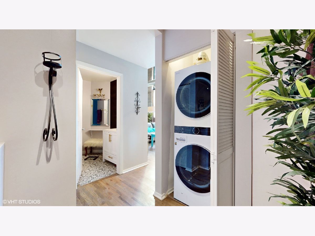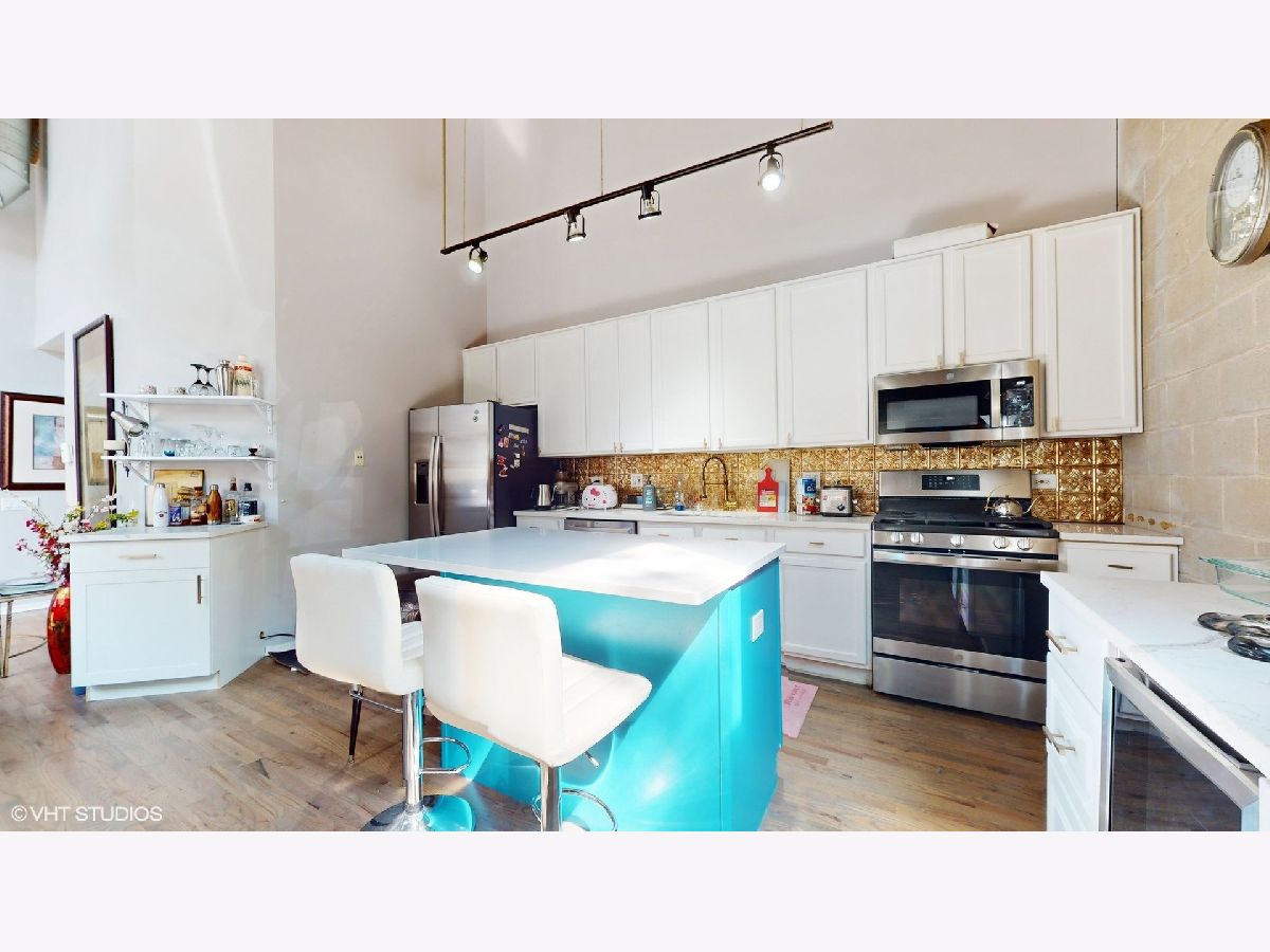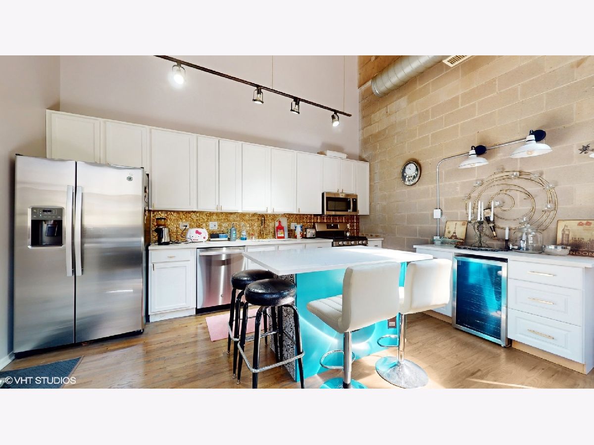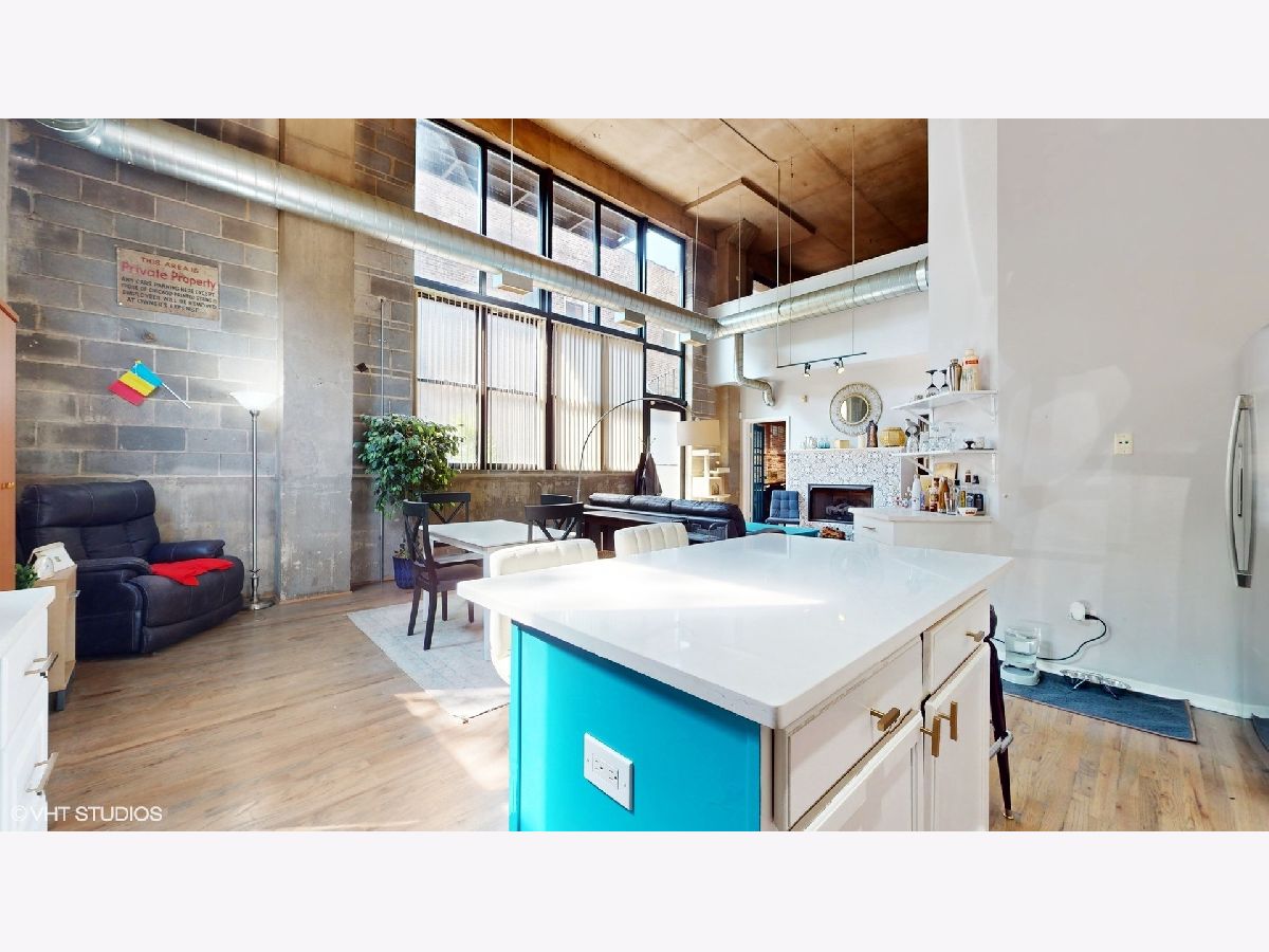 Time to move out of that one bedroom stuffy apartment to this two bedroom, two full bathroom New York styled concrete loft. Harwood floors throughout that have been newly refinished. All new ss appliances, refrigerator, space saver microwave, dishwasher and a five burner stove with an air fryer oven! In unit brand new stackable washer and dryer. Wine refrigerator in the expanded kitchen with new quartz marble sculpted counter tops and a dry bar cabinet that also includes its own mini-fridge. The lofted master suite has its own dry bar wine fridge that can serve as your in bedroom coffee station. Off the lofted bedroom is a cozy deck for private enjoyment overlooking a 12 by 39 outdoor plaza like outdoor space that includes a zen-like fountain. Both bathrooms have been updated with new sinks, with gold fixtures, new subway tile and new black and white patterned floor tile fixtures which can be found as a theme throughout the loft including surrounding the gas fireplace. The soaring 16+ feet concrete ceilings add to this open concept dimension. Modernized for your entertainment and work at home enjoyment. Move in to over 1,400 square feet of unique luxury. Includes indoor heated garage space. Hurry before this one of a kind loft condominium in a unique building is gone!