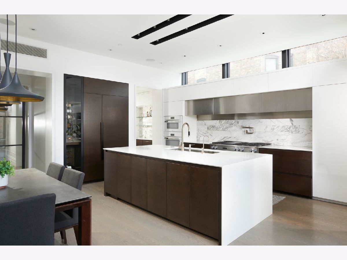 Contemporary architecture with timeless finishes across 6,000 square feet of continuous living space. Located in Wicker Park's coveted landmark district, a tree-dappled Chicago neighborhood marked by community and recreational pursuits, this stunning single-family home was originally constructed in 1885 and still boasts its painstakingly restored brick Italianate facade to this day. As part of a full gut renovation, design and build, award-winning architectural firm dSPACE tuck-pointed the entire building and added lined roof parapets before initiating a top-to-bottom interior plan to include 5 bedrooms, 4.5 baths, a streamlined kitchen with butler's pantry, a fully finished basement, a two-car garage, and a children's play space -among other flex spaces. From the foyer and salon to the formal dining room and handsome wet bar, the main level maintains an effortless flow that leads to an open, natural light-filled space at the back of the house. Here, a chef's kitchen with a massive island, Miele cooktop, a separate space for a breakfast table, and integrated wine tower extends into a game-changing, double-height, glass-encased addition featuring a great room with a double-sided fireplace and a proper mudroom. Upstairs, the second floor holds the master suite complete with fireplace and an ensuite bath with freestanding tub, a modest library and a loft office. On the third floor, three additional bedrooms, two baths, a second laundry and a playroom reside. And thanks to a higher zoning that was grandfathered in, and an empty easterly lot next-door (zoned as green space by the city), unobstructed views and plenty of privacy are part of the package. Out back, a generous deck overlooks the home's meticulously landscaped backyard. A second patio adjacent to the garage and a new outdoor lighting system round out the open-air entertaining amenities. With flawless finishes, fully integrated smart home status and sustainable design-all just a 10 minute commute from downtown-1935 West Schiller is an investment in the good life.