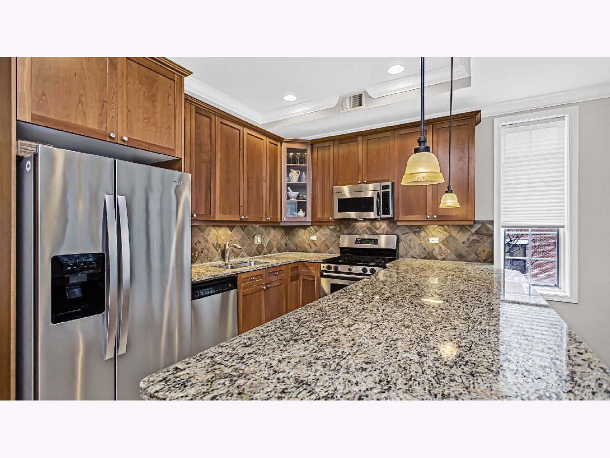 This Hot South Loop, Corner Unit Condo is the perfect combination of style and comfort that you've been looking for! Filled with Great Natural Light, this Two Bedroom / Two Bathroom Condo features Fresh Paint, Custom Stained Hardwood Floors and Crown Molding throughout. The Spacious Floor Plan offers Recessed LED Lighting throughout the Entire Unit, Tons of Windows Dressed in Custom Window Treatments, a Custom Gas Fireplace with Ornate Millwork and Mantle in the Living Room and an Open View to the Custom Kitchen. Create Culinary Delights in the Kitchen that features an Oversized Breakfast Bar with Seating for 6, Granite Counters with a Coordinating Tiled Backsplash, New Garbage Disposal (2024), Stainless Steel Appliances, including a New Refrigerator (2021), and an Abundance of 42" Cabinets with Undermount Lighting. Take pleasure in beginning and finishing your day in the Primary Suite that offers a Custom Walk-in Closet, and an EnSuite Bathroom with Double Sink Vanity, Jetted Soaking Tub and a Separate Tiled, Walk-in Shower. To Complete the Condo there is a Second Bedroom, with Access to the Private Balcony, Full Guest Bathroom and a Convenient In-Unit Washer and Dryer. The Condo is equipped with a New High Efficiency Water Heater (2022), New Hard-Wired Carbon Monoxide / Smoke Detector (2024), Central Heating and Air that is controlled by the Smart Nest Thermostat and the Entire Unit is Smart Home Enabled via the Apple Home app. This Prime Location is moments to CTA Bus Stops, Red and Green Lines, Soldier Field, Local Parks, Lakefront Trail, Jewel-Osco, Trader Joes, Dining and Nightlife! Deeded Parking is Included.