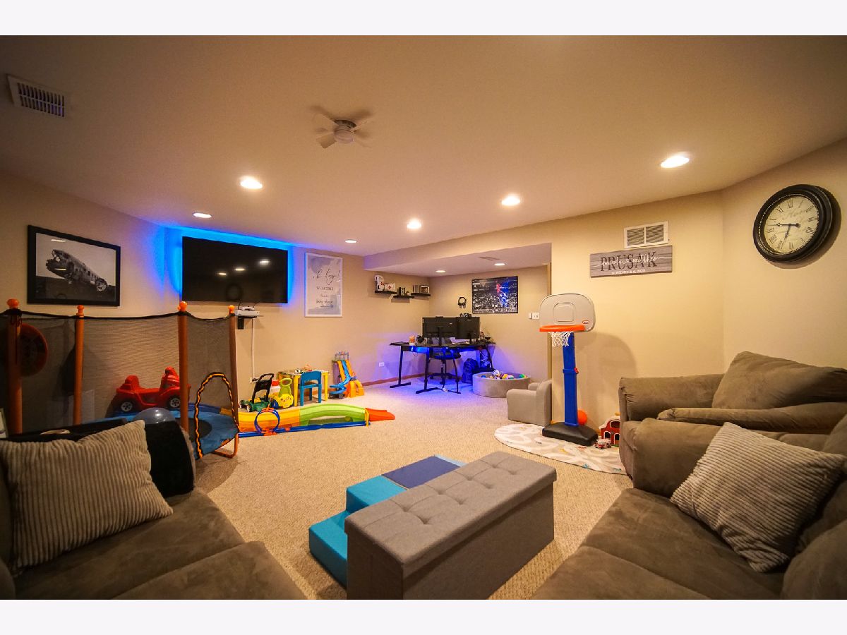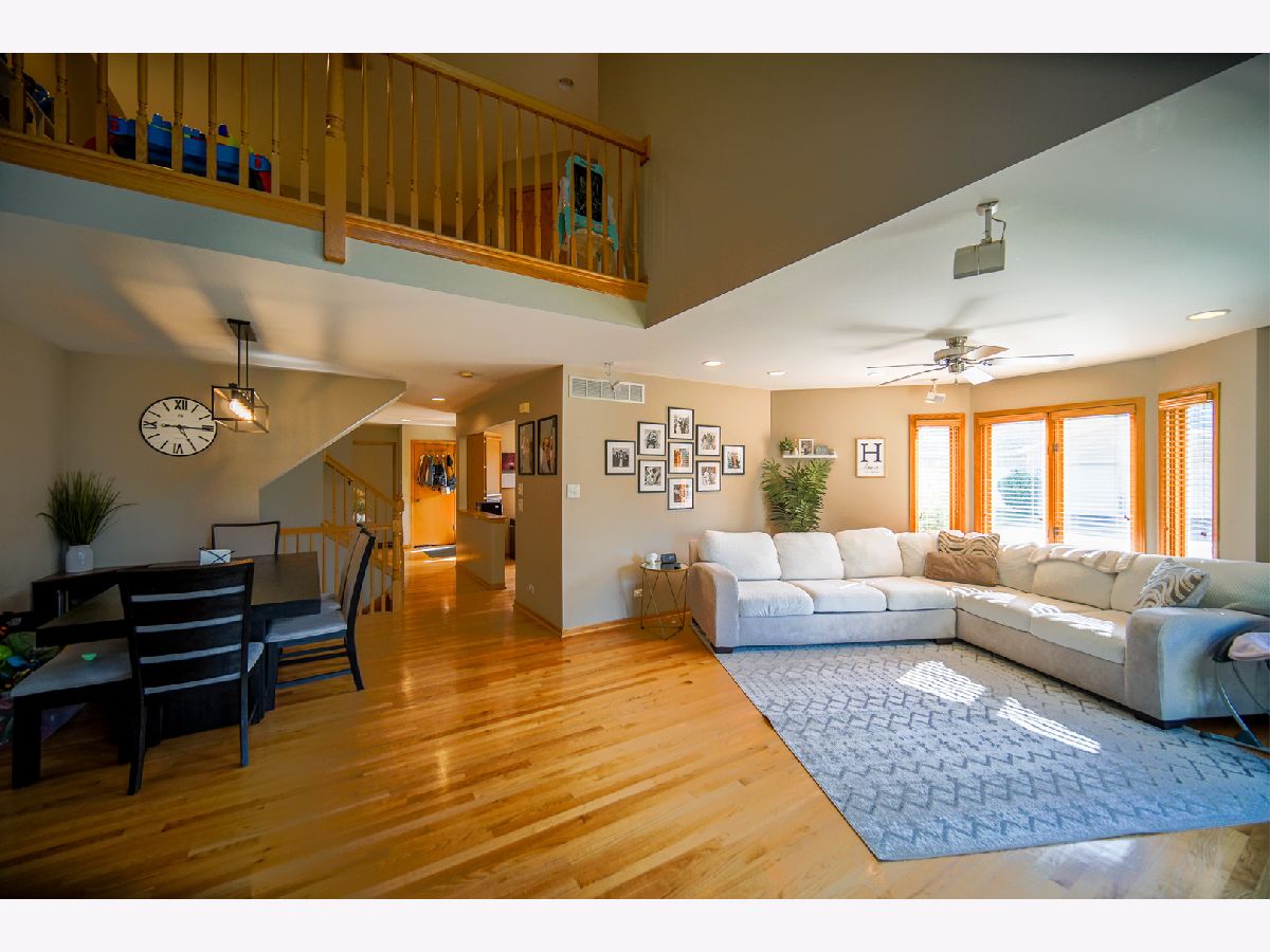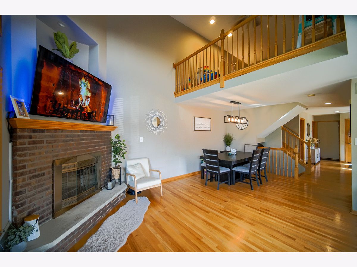 Immerse yourself in the light and airy ambiance of this stunning 3-bedroom end-unit townhouse in desirable Brookside Glen. Hardwood floors flow throughout the main level, which opens up to a dramatic 2-story living room, a separate dining room perfect for hosting gatherings, and a cozy wood-burning fireplace for creating a warm and inviting atmosphere. The generous sized kitchen boasts gleaming quartz countertops, a stylish tile backsplash, a well-equipped pantry, and ample storage to cater to all your culinary needs. Ascend the stairs to discover your private sanctuary - a master suite with vaulted ceilings, beautiful hardwood floors, and a large walk-in closet. Unwind in the luxurious master bathroom featuring a separate shower, a relaxing soaking tub, and double sinks for ultimate convenience. Upstairs offers an additional spacious bedroom, a full bathroom, and a cozy loft area that can be transformed into an office or media room, providing the perfect space for everyone's needs. The finished basement expands your living space, featuring a large family room, another bedroom, and a full bathroom, ideal for entertaining or creating a dedicated guest retreat. Step outside onto the expansive concrete patio and take in the professionally landscaped surroundings, perfect for outdoor relaxation and entertaining. This residence boasts a new roof (2019), a new central air conditioning system (2023), and a recently upgraded garage door motor with keypad for added convenience. Enjoy the perks of an excellent location close to shopping, Metra train stations, expressways, and award-winning schools. This stunning end-unit townhouse has it all - comfort, style, and functionality - making it a must-see opportunity!