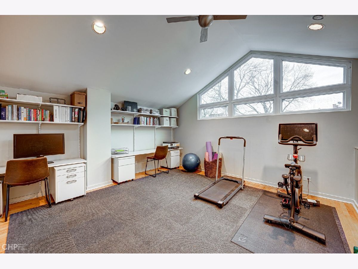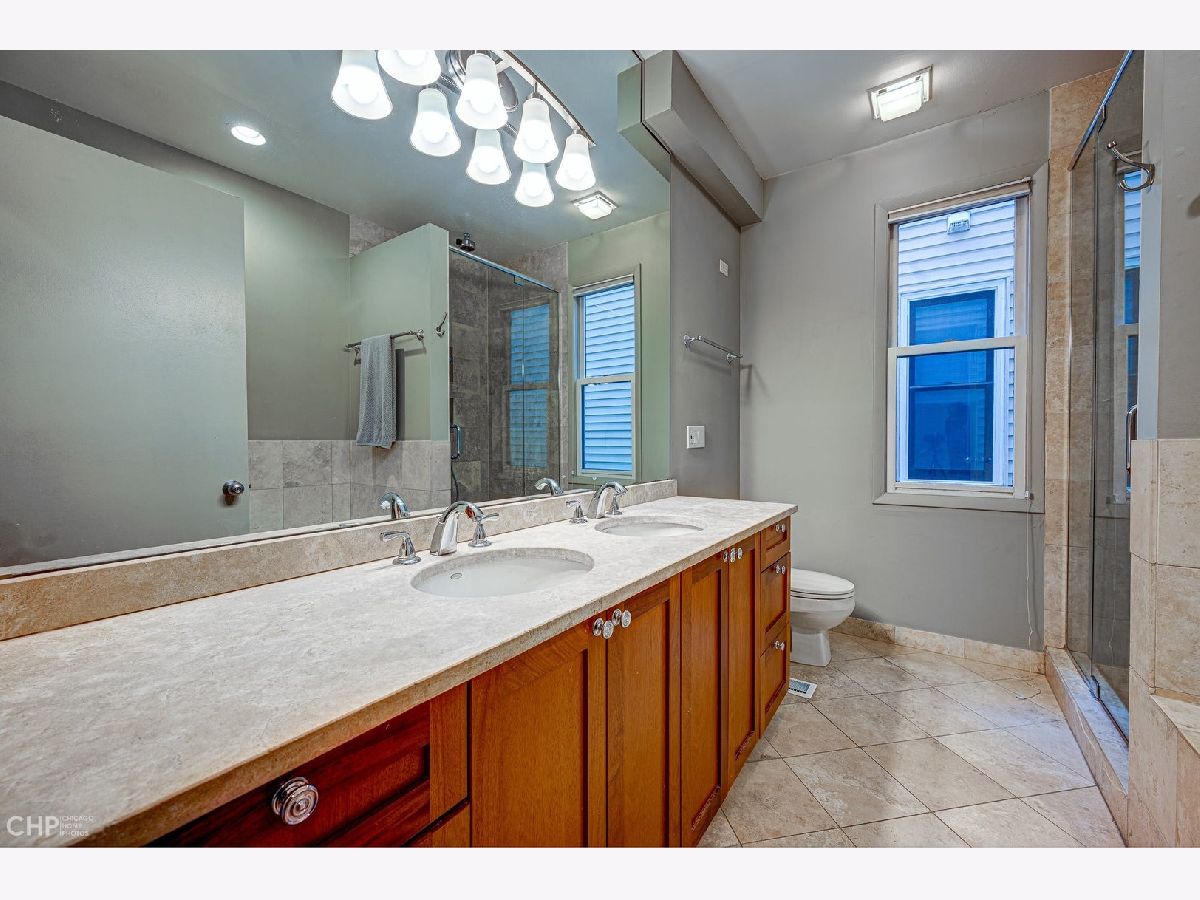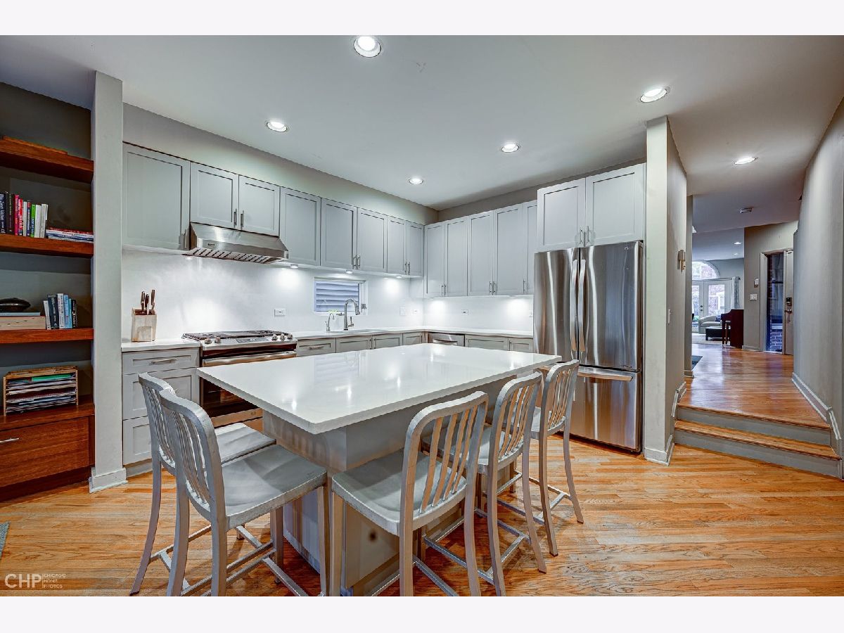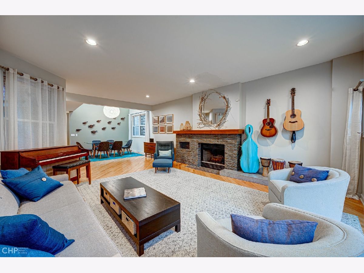 Exceptionally designed, thoughtfully updated and maintained home on one of Wicker Park's most beautiful tree-lined streets on an oversized Chicago lot! A spacious 4 bed/3.5 bath home, remodeled open kitchen, hardwood floors, new appliances, large family room, living room overlooking the stone patio and front yard, two fireplaces on the main level, large dining room area, upper-level guest suite and separate home gym/office, large decorative windows and skylights flooding the home with light, covered breezeway access to 2-car garage, and plentiful outdoor space for relaxing and entertaining. Spacious living room with wood burning fireplace opens up to a dramatic 2 story dining room with skylights. The recently installed front windows and patio doors allow natural southern light to shine through the entire living space. Gorgeous, newly remodeled chef's kitchen featuring light cabinetry, quartz countertops, large center island, large pantry, storage closet, Viking range and hood, on-demand filtered hot/cold separate water faucet, and stainless-steel appliances. Kitchen opens to large family room with a second fireplace that looks out onto the private, bluestone patio. The back door leads you through an enclosed breezeway/mudroom to your attached 2 car garage and also opens out to the rear patio. The 2nd floor offers tons of natural light and 3 bedrooms and 2 full baths. Generously sized primary bedroom with walk-in closet, another full wall of closet space, and laundry center. The primary bath has a dual vanity, ample counter and cabinet space, jacuzzi bathtub, and separate shower with rain and traditional showerheads. The two additional bedrooms on the 2nd floor have new carpeting, and a full bath around the corner. The front bedroom has large curved windows with wonderful southern exposure and a window seat stretching the width of the room, and an entire wall of floor to ceiling closet space. The middle bedroom has floor to ceiling closet space as well, and windows on two sides for natural light exposure. In 2016, an addition was added on the 3rd floor to transform this space into a 4th bedroom suite with en-suite bath, private balcony, spiral staircase leading to the rear enclosed patio, and office space with two built-in desks and home gym space. The 3rd floor can function as an additional bedroom, family room, home gym and/or home office with tree top views. The home is ideally located on a quiet residential street, but just steps away from all that Wicker Park has to offer in entertainment, greenspace, shopping, and dining! A quick walk to the Damen and Division blue line stops, easy access to 290 and 90/94, downtown, and just a short bike ride to the 606 trail!