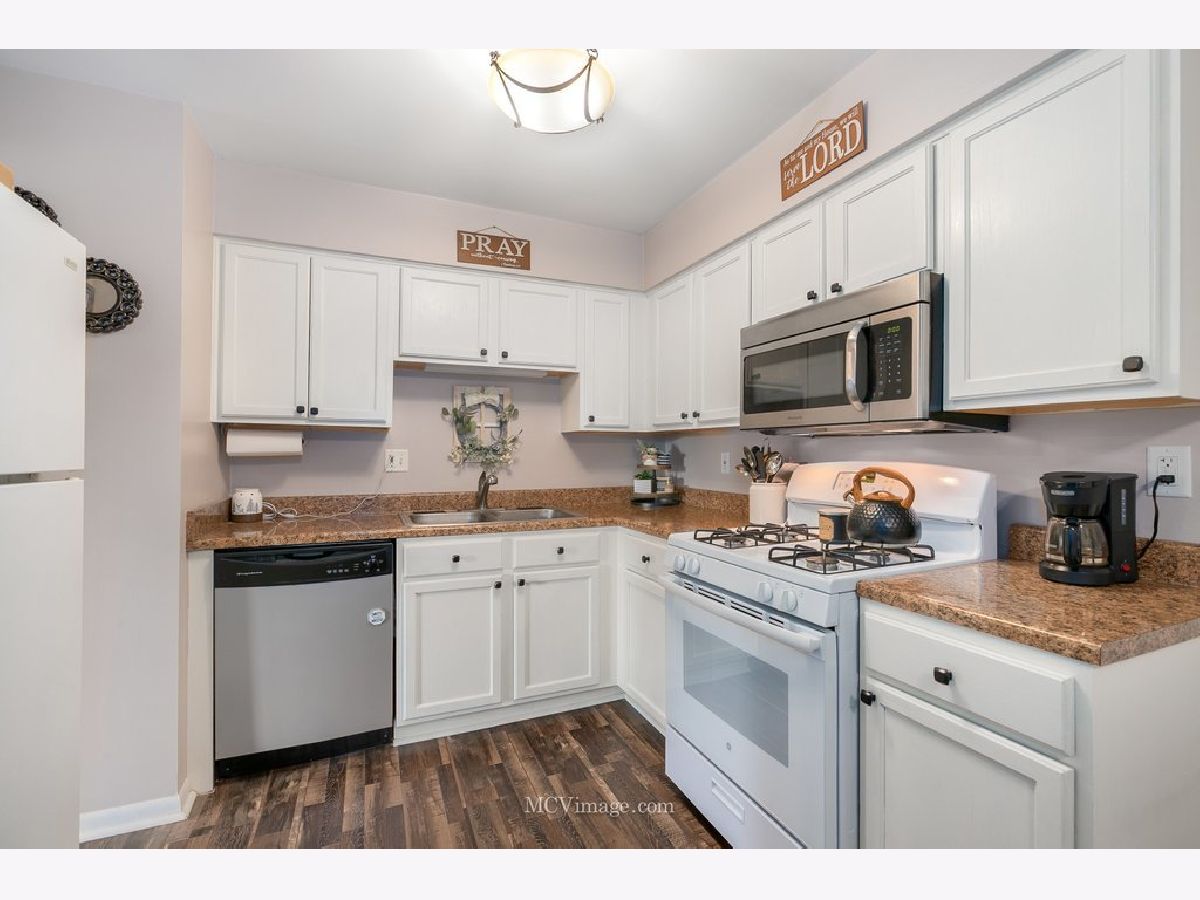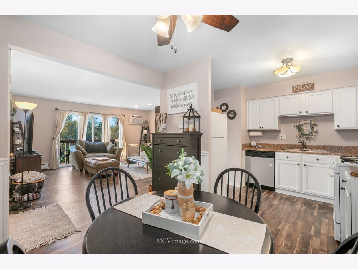 Adorable...Picture Perfect and Move in Ready condo in downtown Mokena! Loaded with tasteful upgrades! Filled with natural light and covered in beautiful wood laminate flooring thru-out the spacious living room and into the kitchen featuring solid painted cabinetry and a large eating area/dining space. Two bedrooms including the very spacious master bedroom have newer carpeting and ceiling fans. You'll enjoy the nicely updated bathroom complete with a wood accent wall and modern fixtures. Windows have been replaced throughout with a smooth sliding glass door leading to the brand new wood balcony. Clean and bright laundry facility on the main floor along with extra storage space. Also locked shed outside for bicycles plus ample parking for guests. Assessment pays for gas, water, garbage, snow removal, and landscaping. Low taxes. Convenient to everything - transportation, schools, library, shopping, banking, etc. Fantastic Condo...Come take a look today!