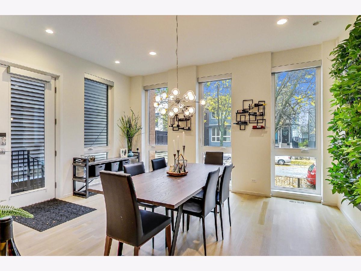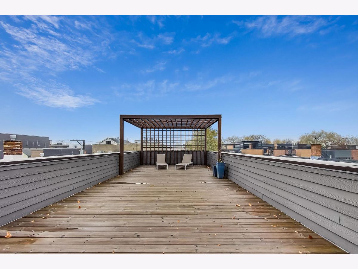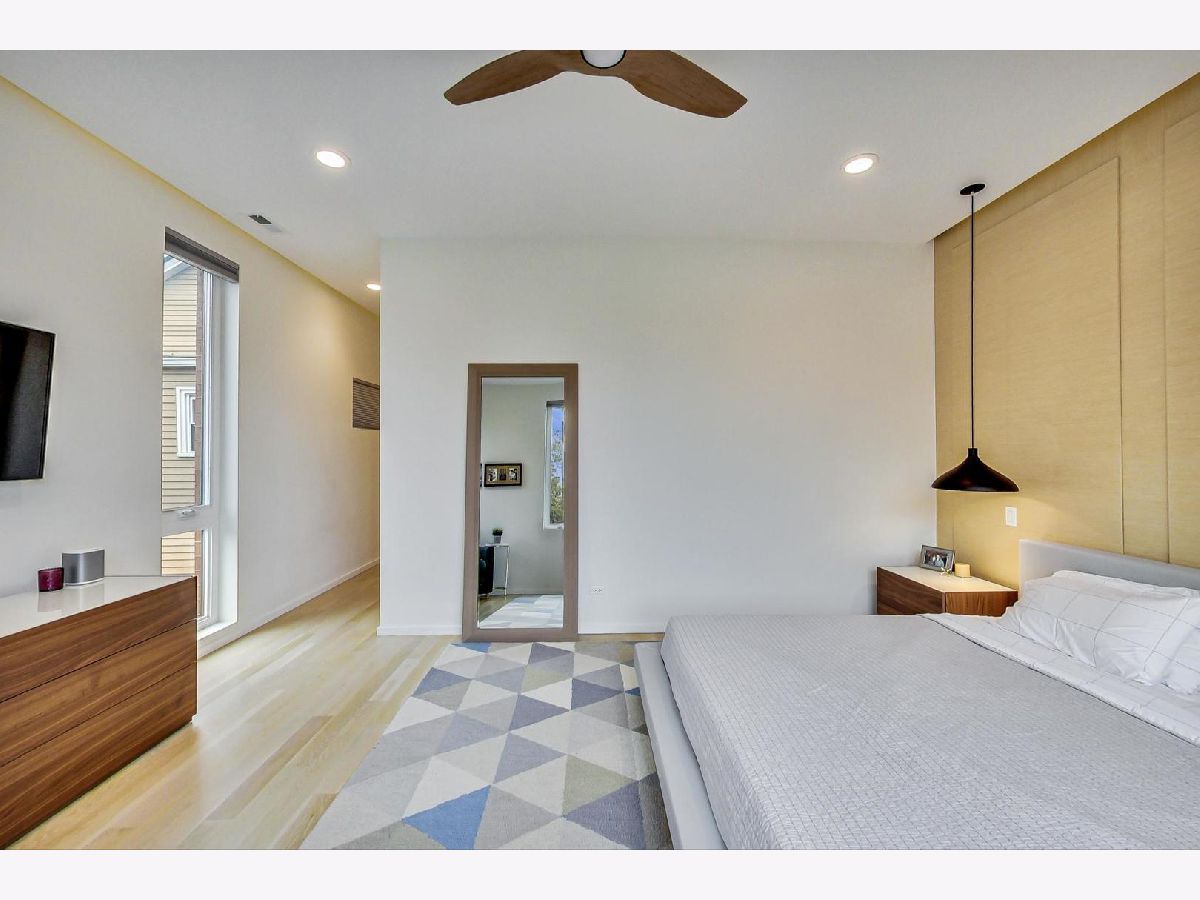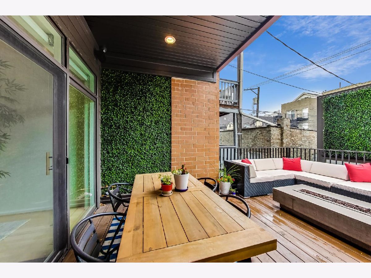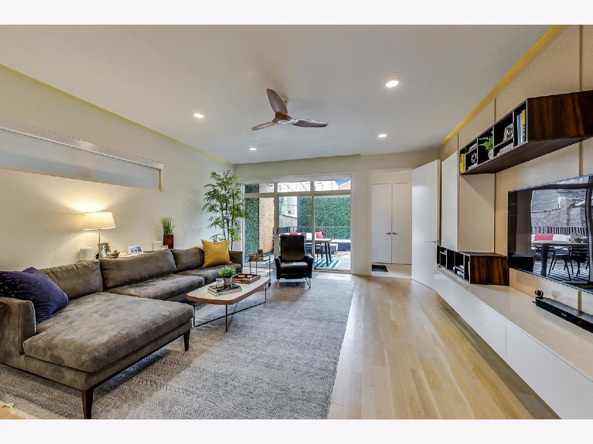 Exceptionally built and meticulously maintained 2016 construction home in West Town. This contemporary home was built by The Panoptic Group who specialize in environmentally friendly homes. This 5 bedroom plus office/3.5 bathroom south facing brick house has oversized windows on the first and second floors and amazing outdoor spaces. The chef's kitchen has 25 feet of white Italian lacquer cabinets and a 10 foot island. There is a huge terrace off the back family room; part of which is a covered dining area. Don't miss the very rare mudroom upon entering the back of the home from the garage! 3 bedrooms on the second floor including a primary bedroom with huge walk in closet and spa like bathroom with Calcutta porcelain, rain shower, soaking tub and Hans Grohe fixtures. From the second floor, step up to a front and back roof top deck with views of the skyline! The lower level features a family room, two additional bedrooms and a luxury bathroom with steam shower. This is a fully integrated Smart Home featuring automated locks, security, window treatments, temperature control and wired for speakers. Great West Town home! Please note that seller requires possession of the home until 8/26/2022