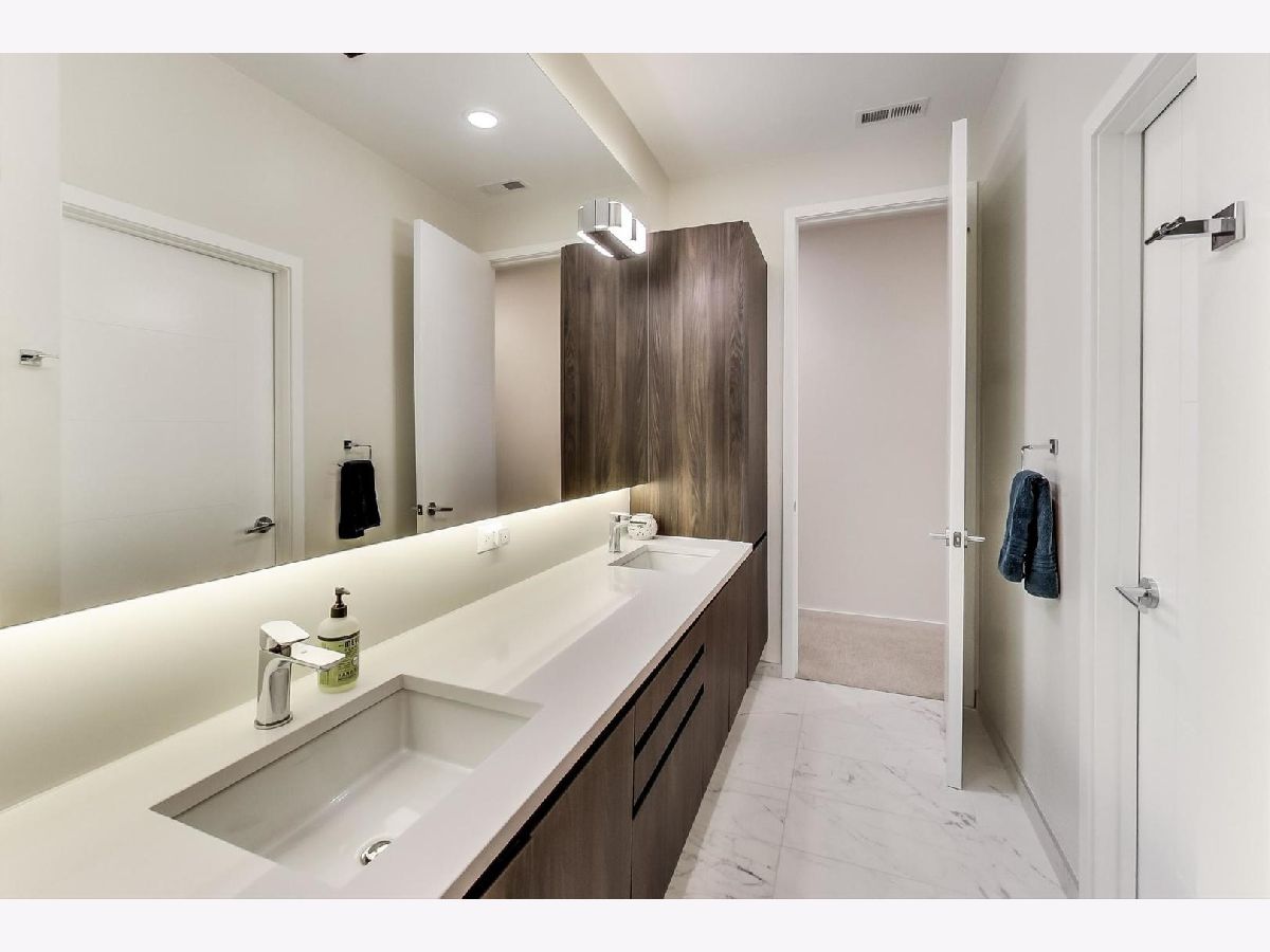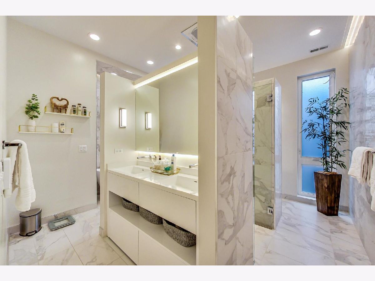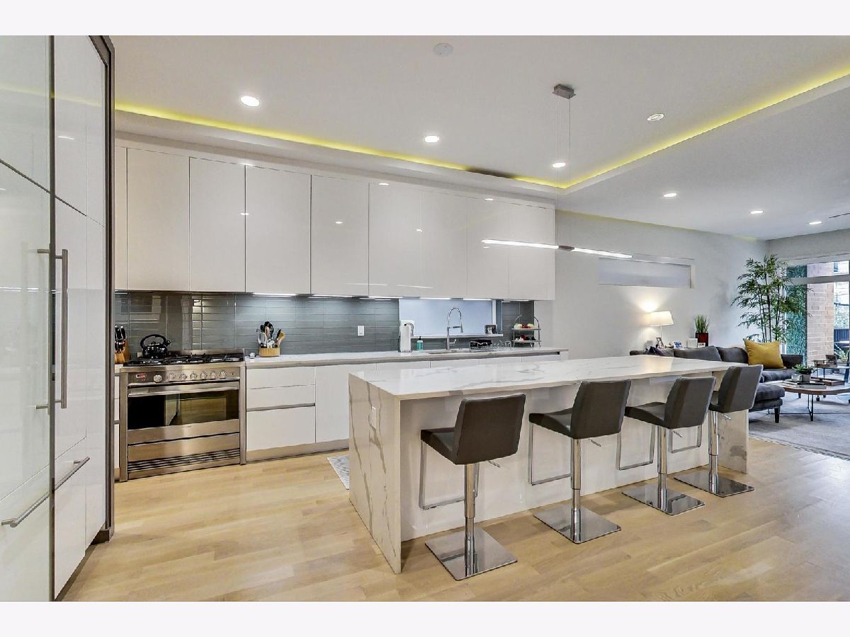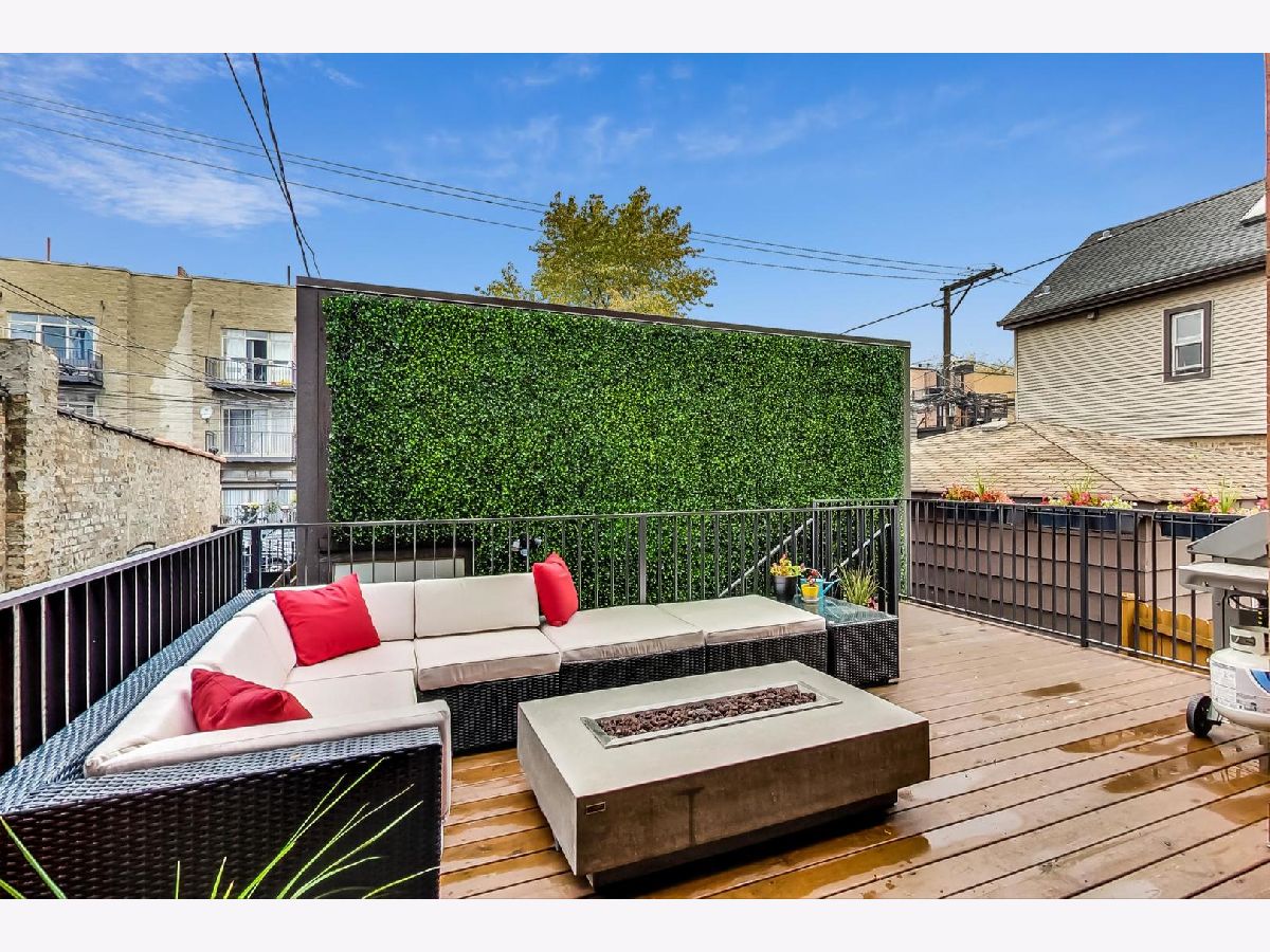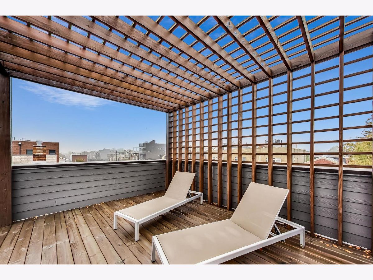 Exceptionally built and meticulously maintained 2016 construction home in West Town. This contemporary home was built by The Panoptic Group who specialize in environmentally friendly homes. This 5 bedroom plus office/3.5 bathroom south facing brick house has oversized windows on the first and second floors and amazing outdoor spaces. The chef's kitchen has 25 feet of white Italian lacquer cabinets and a 10 foot island. There is a huge terrace off the back family room; part of which is a covered dining area. Don't miss the very rare mudroom upon entering the back of the home from the garage! 3 bedrooms on the second floor including a primary bedroom with huge walk in closet and spa like bathroom with Calcutta porcelain, rain shower, soaking tub and Hans Grohe fixtures. From the second floor, step up to a front and back roof top deck with views of the skyline! The lower level features a family room, two additional bedrooms and a luxury bathroom with steam shower. This is a fully integrated Smart Home featuring automated locks, security, window treatments, temperature control and wired for speakers. Great West Town home! Please note that seller requires possession of the home until 8/26/2022