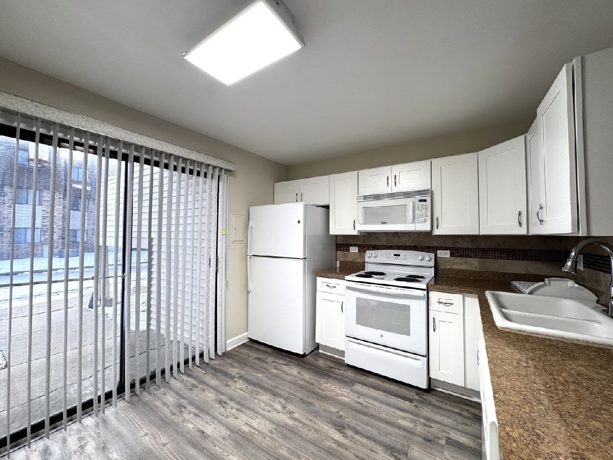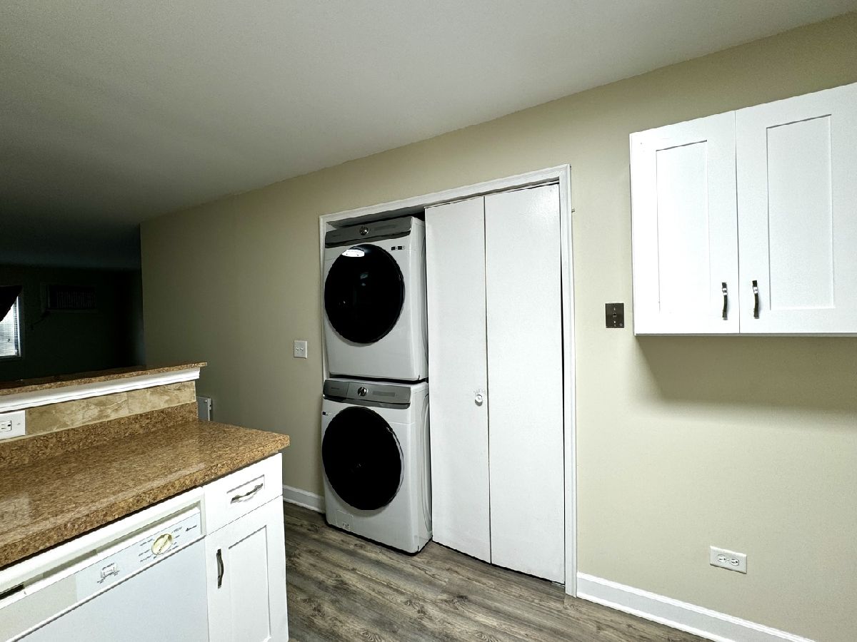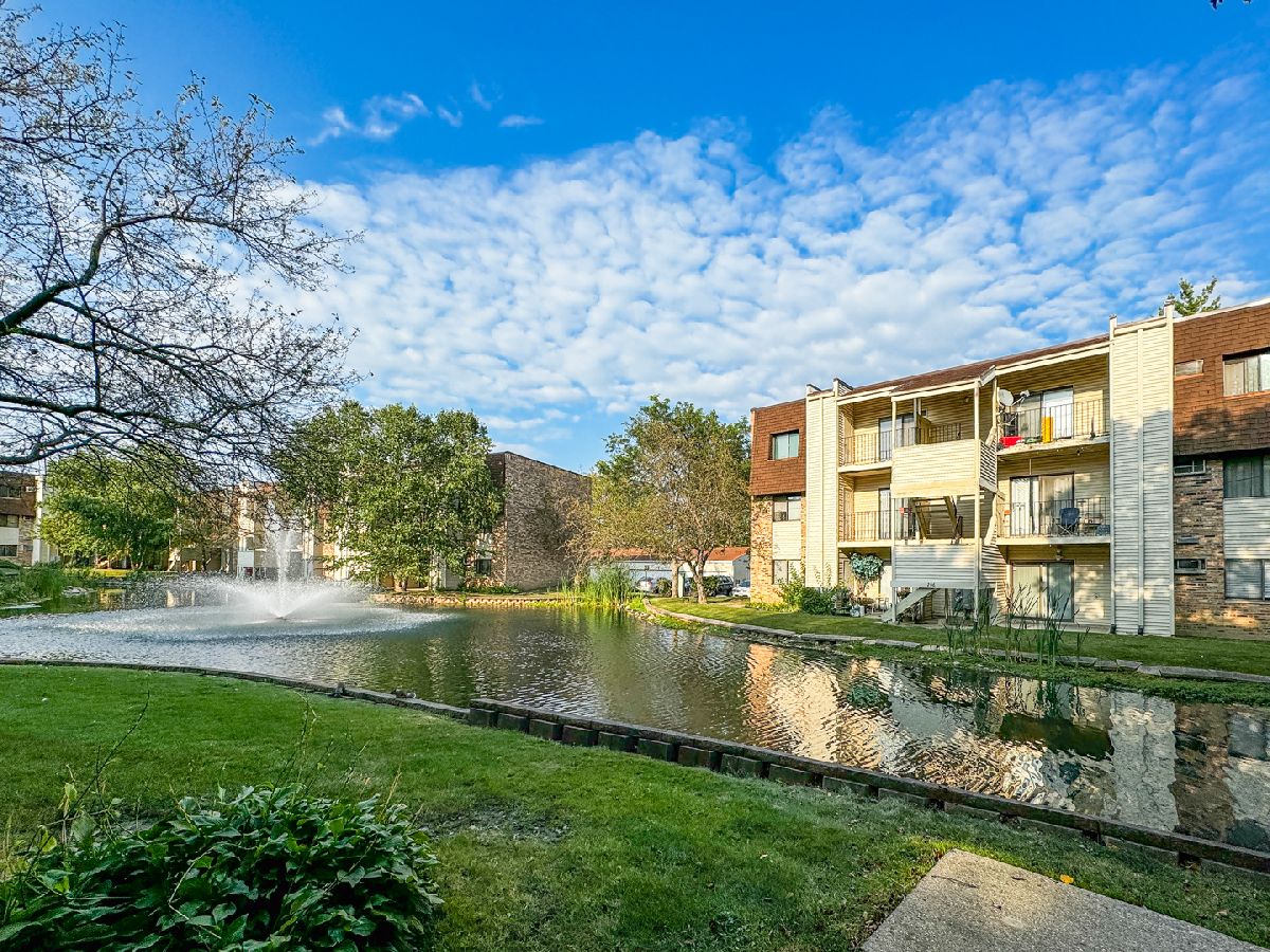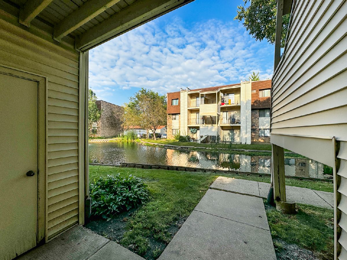 Welcome to this ready to move in condo in the highly sought after Waters Edge community! Boasting 2 spacious bedrooms and 2 full bathrooms, this well-maintained home is ideal for those seeking a low-maintenance lifestyle. As you first enter through the living room, you will see new laminate flooring throughout the condo. The kitchen features white shaker cabinets, updated fixtures and a backsplash. In-unit laundry features newer stackable washer and dryer (2021). Step through the sliding glass doors to find the patio overlooking the serene pond. One car shared garage is included, offering secure parking and additional storage space-a valuable feature for both residents and potential tenants. Although being sold AS-IS, this move-in ready condo requires minimal updates, making it a hassle-free choice for first-time buyers, downsizing, or investors looking for a property with great rental potential. Conveniently located near shopping centers, dining, and access to major highways. Don't miss out on this fantastic opportunity-schedule your showing today!