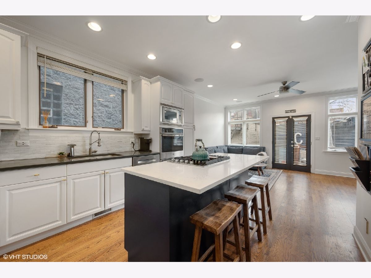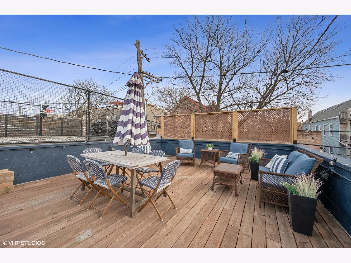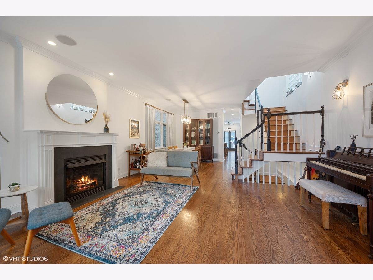Beautifully updated 4 Bedroom/ 3.1 Bathroom single family home in prime Roscoe Village location! This turnkey home has been renovated with every attention to detail and offers an open floorplan with a 3-story atrium staircase. Warm and inviting front living room features a gas fireplace, wood mantel and stone surround. The entry of this home offers a coat closet and mudroom style custom wood built-in. Spacious and separate dining room space features brass drapery rod and custom chandelier. Home features include hardwood flooring throughout upper levels, surround sound and speakers, crown molding, and too many recent updates to list! The cook's kitchen showcases stainless steel appliances (new double oven, dishwasher, cooktop), marble backsplash, quartz counters, island with breakfast bar seating and a walk-in pantry closet. Adjacent light & airy feeling great room with exposed brick wall and a wood-burning fireplace with gas logs. Great room off of kitchen leads to incredible outdoor space including walk-out deck that bridges up to the large garage rooftop deck. Nice rear yard with grass and 2.5 car garage. Three bedrooms and two baths on the upper level. Fabulous & bright primary bedroom suite with Juliet balcony, skylights and custom organized walk-in closet. Attached and new spa-like master bathroom boasts dual vanity sinks, walk-in marble shower with bench and separate soaking tub. Lower Level features a large recreation room, fourth bedroom, newly renovated bath and built-in bar with wet bar with wine refrigerator. Laundry room with side-by-side washer & dryer with wood folding counter. Huge extra storage room in lower level with walk-out door to rear yard. Must see this spectacular and well cared for SFH on an incredible block in the heat of Roscoe Village! Located in Top Rated Jahn School District. Just a short walk to the heart of Roscoe Village, Hamlin Park, public transit, Southport Corridor shopping and more!