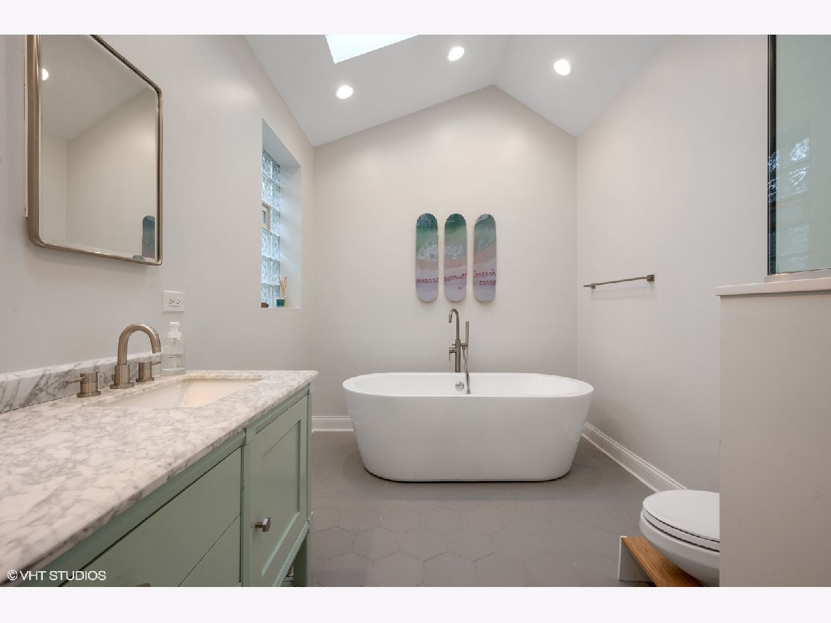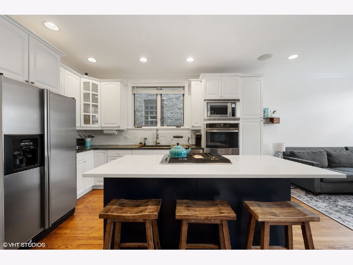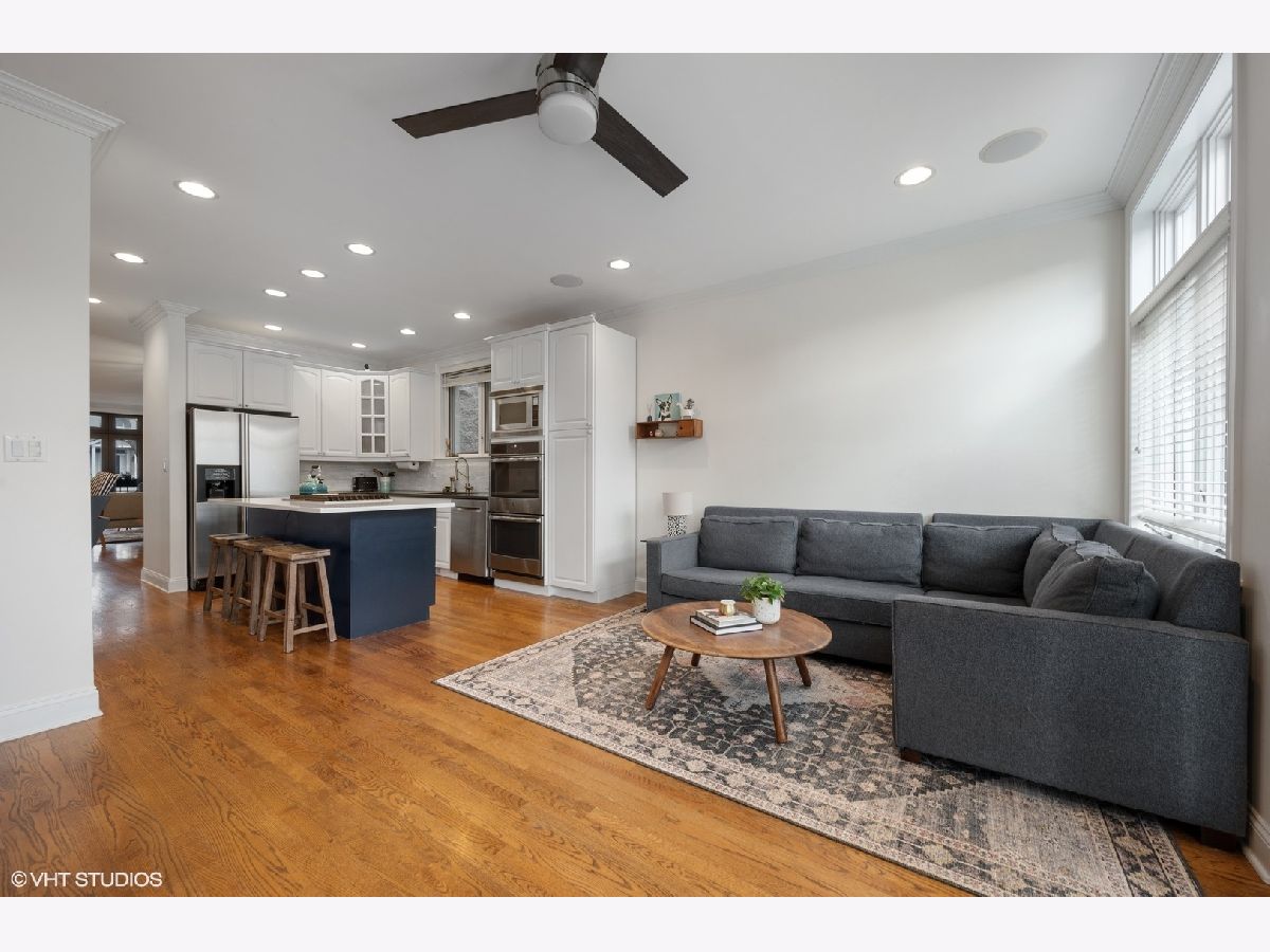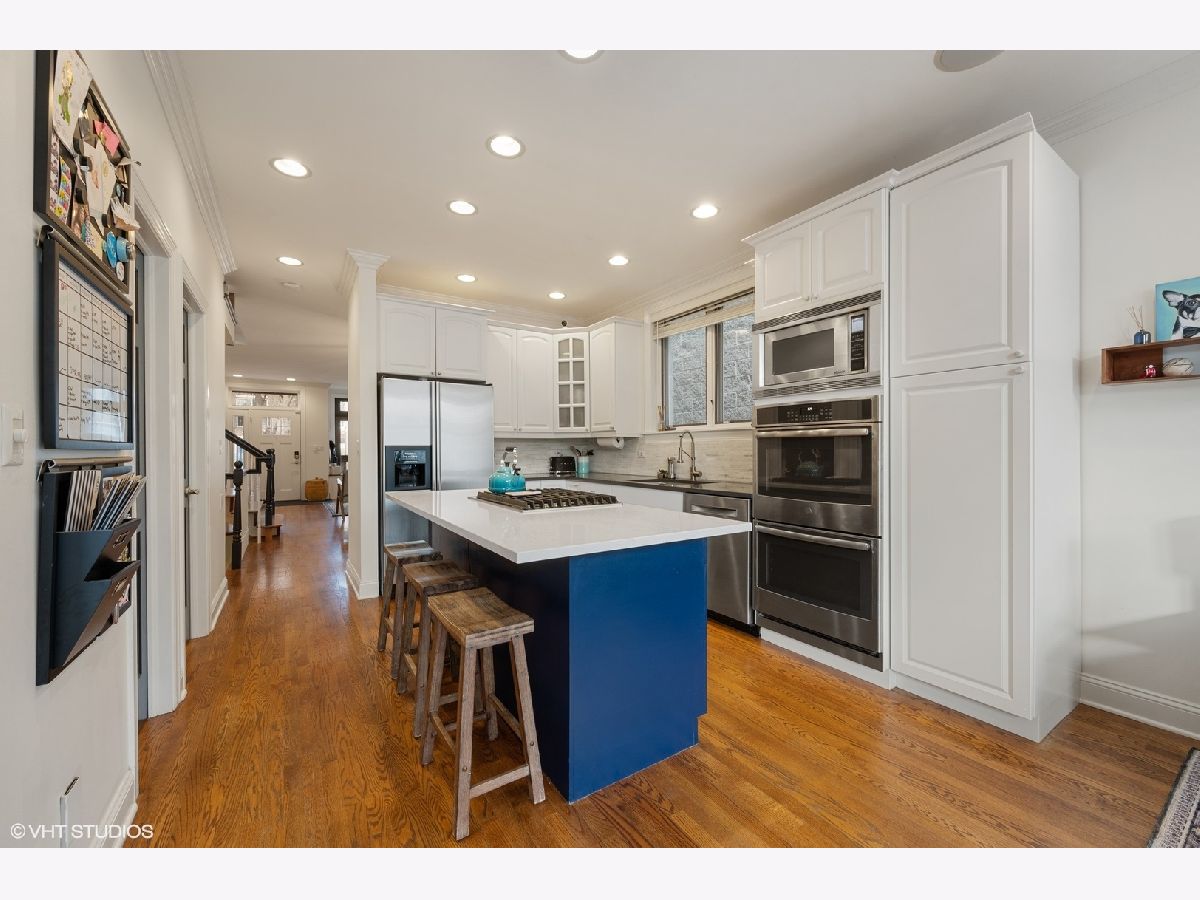 Beautifully updated 4 Bedroom/ 3.1 Bathroom single family home in prime Roscoe Village location! This turnkey home has been renovated with every attention to detail and offers an open floorplan with a 3-story atrium staircase. Warm and inviting front living room features a gas fireplace, wood mantel and stone surround. The entry of this home offers a coat closet and mudroom style custom wood built-in. Spacious and separate dining room space features brass drapery rod and custom chandelier. Home features include hardwood flooring throughout upper levels, surround sound and speakers, crown molding, and too many recent updates to list! The cook's kitchen showcases stainless steel appliances (new double oven, dishwasher, cooktop), marble backsplash, quartz counters, island with breakfast bar seating and a walk-in pantry closet. Adjacent light & airy feeling great room with exposed brick wall and a wood-burning fireplace with gas logs. Great room off of kitchen leads to incredible outdoor space including walk-out deck that bridges up to the large garage rooftop deck. Nice rear yard with grass and 2.5 car garage. Three bedrooms and two baths on the upper level. Fabulous & bright primary bedroom suite with Juliet balcony, skylights and custom organized walk-in closet. Attached and new spa-like master bathroom boasts dual vanity sinks, walk-in marble shower with bench and separate soaking tub. Lower Level features a large recreation room, fourth bedroom, newly renovated bath and built-in bar with wet bar with wine refrigerator. Laundry room with side-by-side washer & dryer with wood folding counter. Huge extra storage room in lower level with walk-out door to rear yard. Must see this spectacular and well cared for SFH on an incredible block in the heat of Roscoe Village! Located in Top Rated Jahn School District. Just a short walk to the heart of Roscoe Village, Hamlin Park, public transit, Southport Corridor shopping and more!