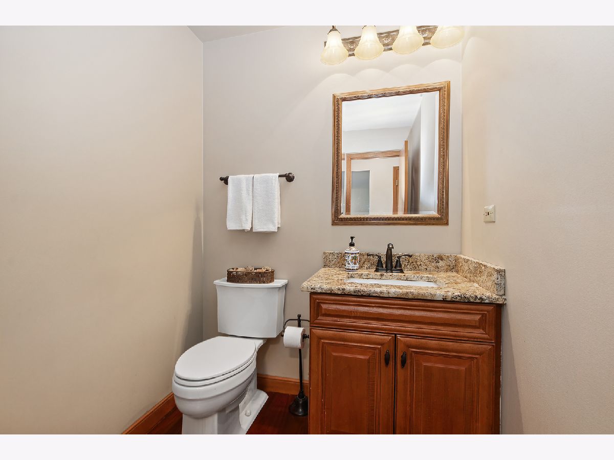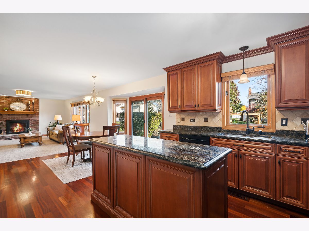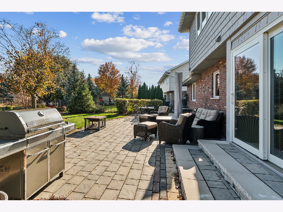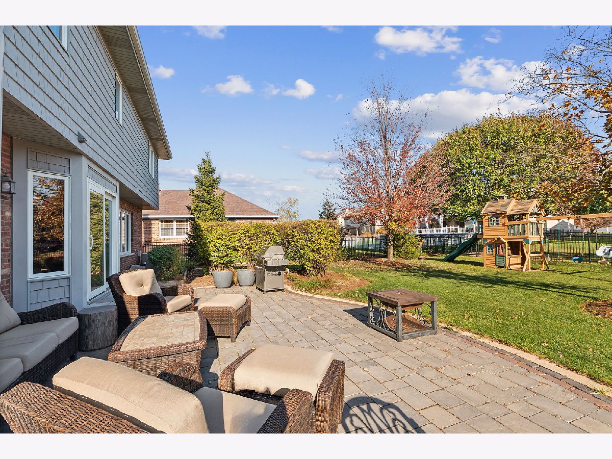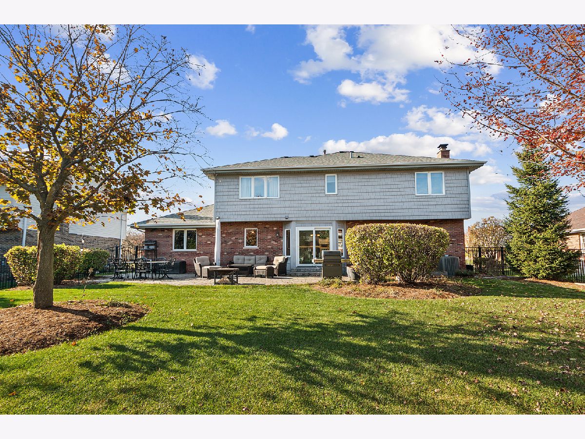 Welcome to this beautifully updated and meticulously maintained 5-bedroom, 2.5-bath home, nestled on a peaceful street in the sought-after Brookside Glen neighborhood of Tinley Park. From the moment you arrive, you'll be captivated by the exceptional curb appeal, featuring a blend of classic brick and modernized shake siding, a newer garage door, an updated roof, and a charming front porch with a fresh front door that invites you in. As you step inside, you're greeted by a grand two-story foyer and gorgeous Brazilian cherry hardwood flooring that extends through the foyer, dining room, powder room, and kitchen. The thoughtful floor plan offers both formal living and dining spaces, as well as an open-concept layout ideal for modern living. The updated eat-in kitchen flows seamlessly into the large family room, creating the perfect space for everyday living and entertaining. The family room features a striking masonry fireplace and a wall of windows that overlook the serene backyard. The kitchen is a chef's dream, complete with custom Polart cabinetry, rich granite countertops, updated appliances, and a new microwave. A convenient laundry room and updated powder room round out the main level, along with a versatile 5th bedroom that could serve as a guest room or private home office. Upstairs, you'll find 4 generously-sized bedrooms, including a spacious primary suite with a walk-in closet and an en-suite bath featuring dual sinks and a vanity area. A second full bath with dual sinks serves the other 3 large bedrooms. The gorgeous backyard is a true highlight, professionally landscaped and fully fenced for privacy. An expansive stone patio (installed in 2017) provides the perfect setting for outdoor entertaining or simply relaxing in your own personal retreat. Additional features include an expanded garage with ample storage space, a newly installed AC unit in 2023, an updated Pella sliding door, a stone patio (2017), updated shake siding (2013), a roof (2018) and more! Located in an ideal neighborhood, this home offers easy access to top-rated schools, parks, shopping, restaurants, and commuter routes, including the train and major expressways. Don't miss the opportunity to make this stunning home yours!