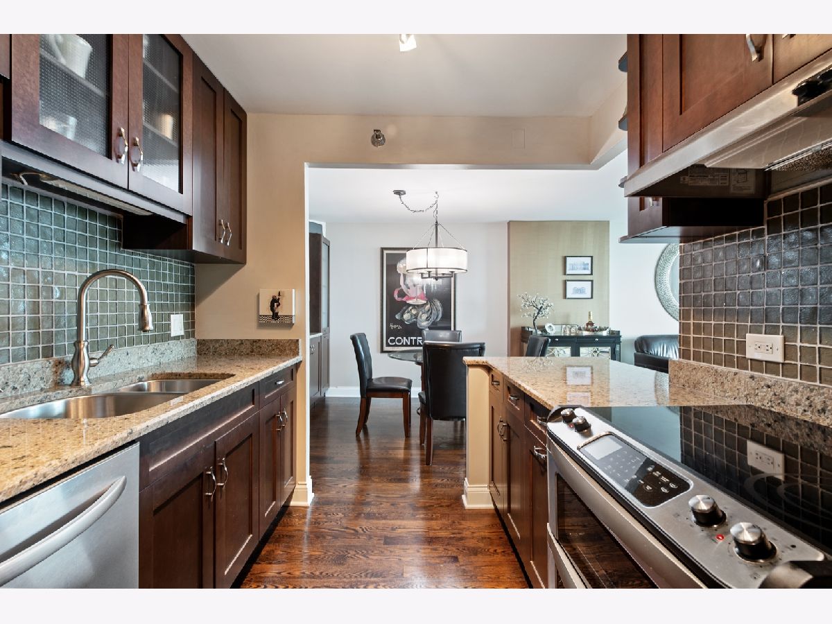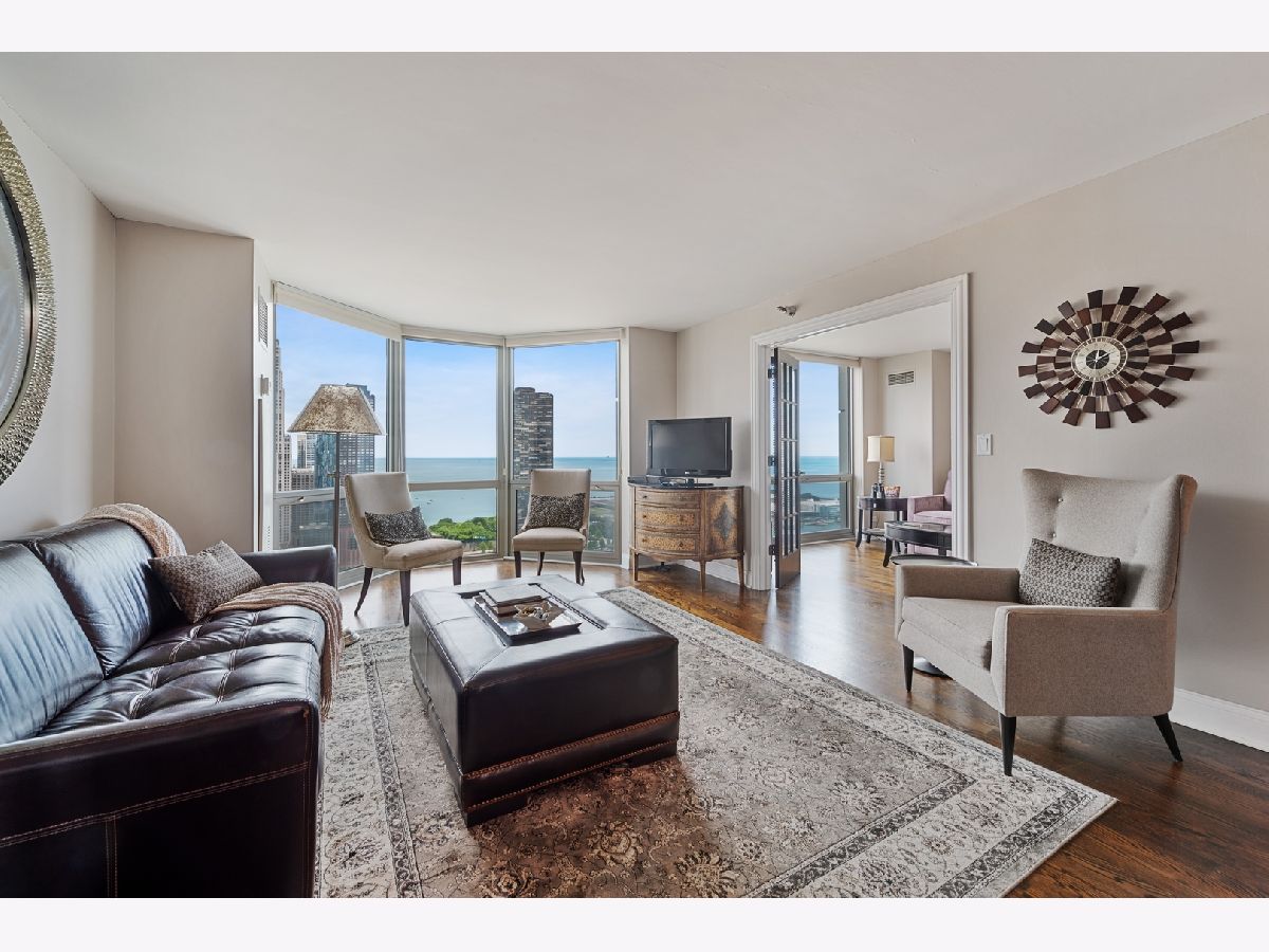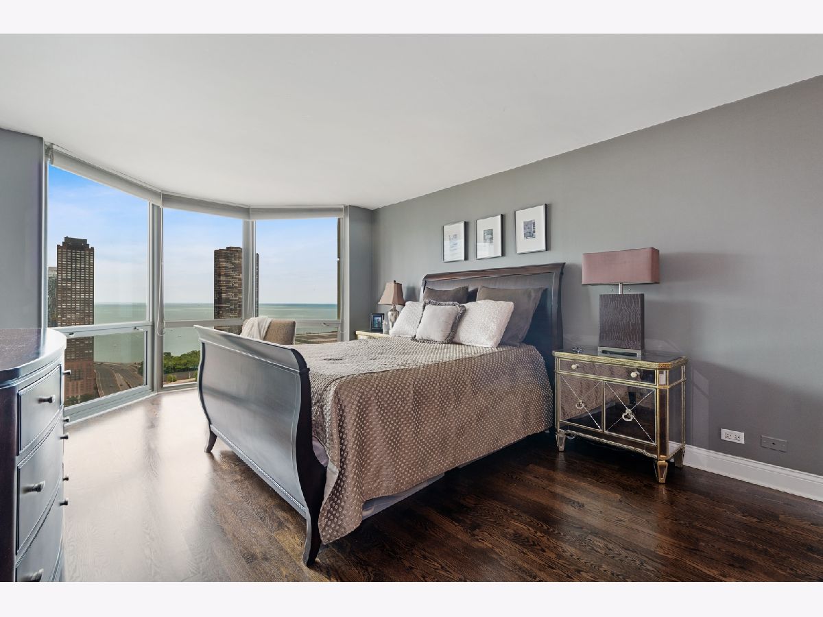 Enjoy spectacular sunrises, lake, and city views from floor-to-ceiling windows in this two-bedroom, 2-bath condo. There are beautiful hardwood floors throughout. The custom kitchen has high-end appliances and finishes. The second bedroom has French doors that open to the living room. The bathrooms are tastefully updated. There is an in-unit washer and dryer. Self-park space #116 is included in the price. The ParkShore is pet friendly and has 24-hour doormen and maintenance staff. The amenities include: rooftop pool and sundeck, whirlpool hot tub, health club, two party rooms, a tennis court, and outdoor grills. There is a spa and dry cleaners on-site. It is a short pedway walk to Bockwinkel's grocery. Mariano's grocery, Millennium Park, Near East Side Park, the Riverwalk, and the lake are just steps away, as is the #60 bus.