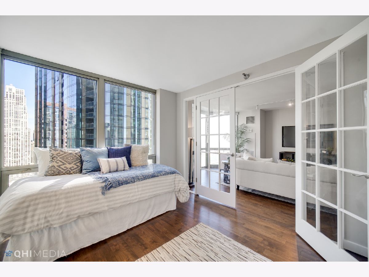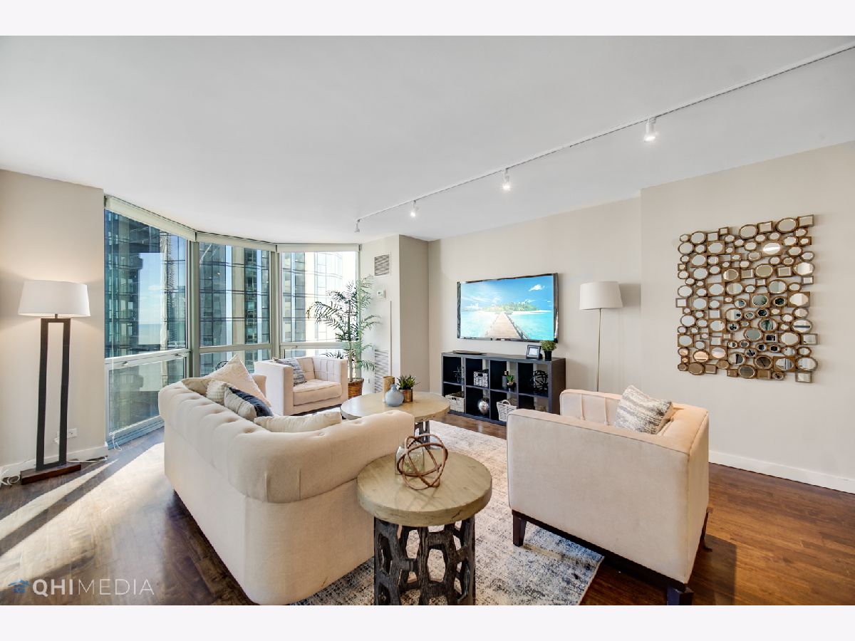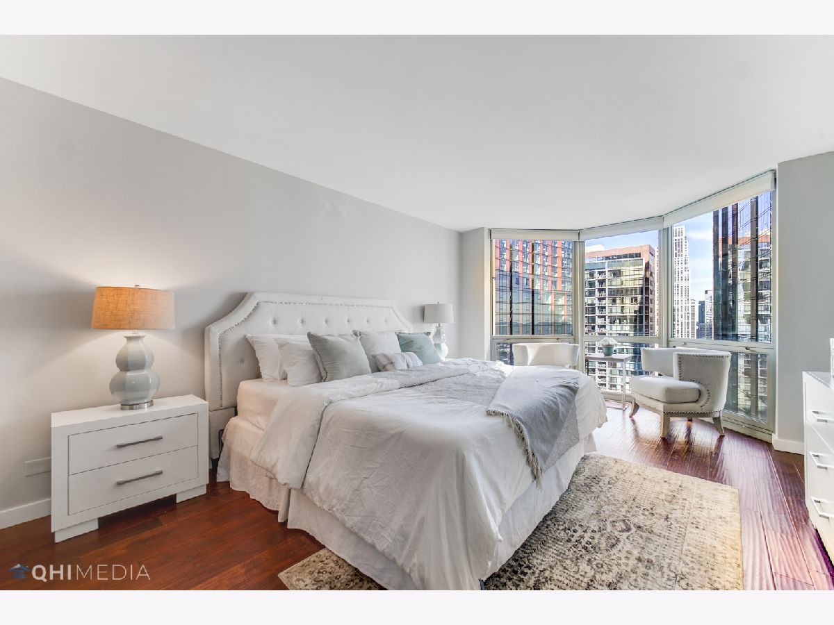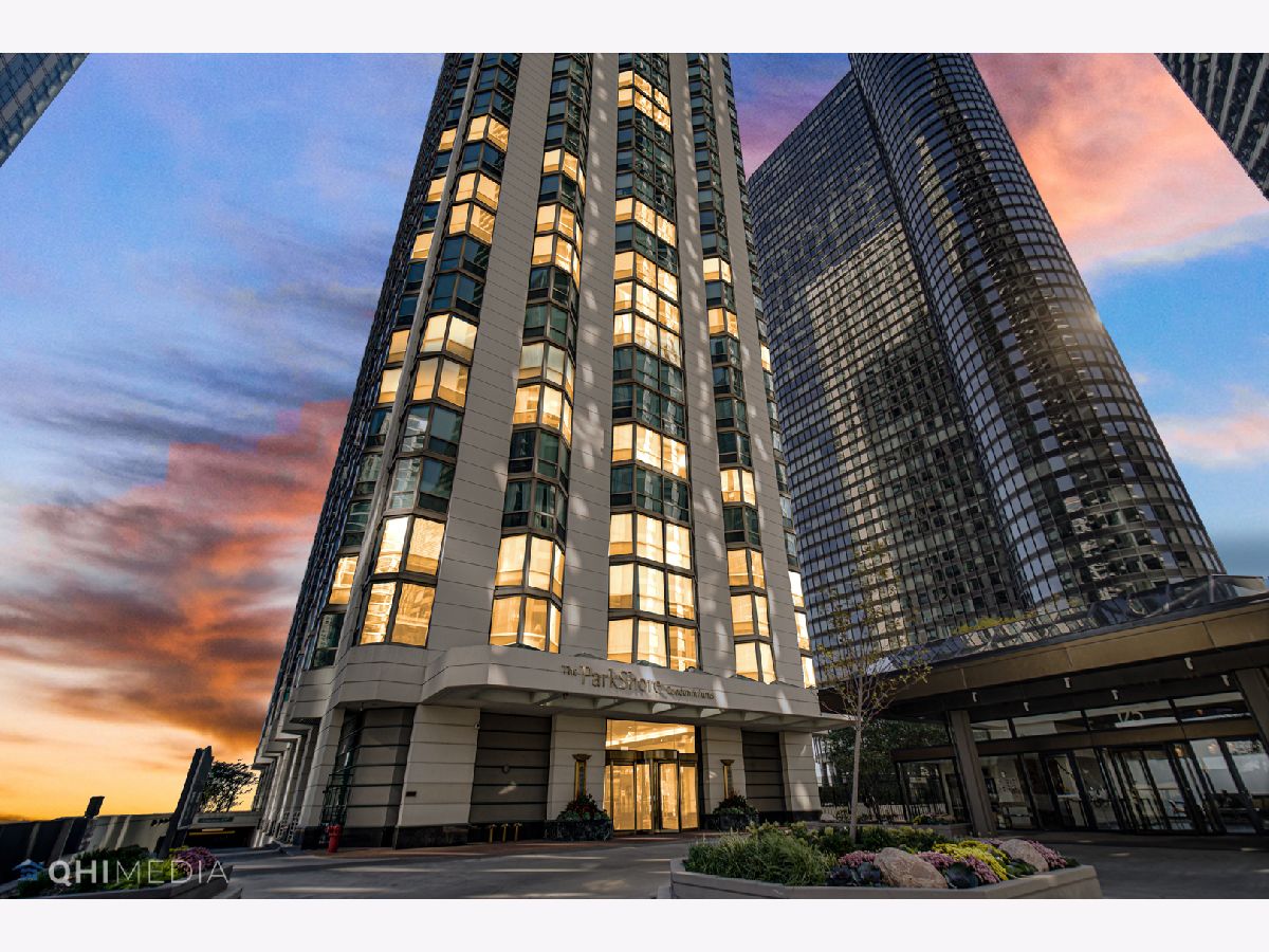 Spectacular 2bedroom/2bathroom in the Parkshore with unbeatable views of Navy Pier, Lake Michigan, Chicago River, City, and both Lakeshore East & Cascade Parks. This move-in ready condo features hardwood flooring throughout, floor to ceiling bay windows, open floor plan with the dining room adjacent to the updated kitchen offering an island with extra seating, granite countertops, stainless steel appliances, & in-unit laundry. The primary suite is very spacious offering a HUGE professionally organized walk-in closet & updated bathroom. The second bedroom features french doors that open up the space. The Parkshore is a full amenity building featuring a state of the art fitness center on the top floor, indoor jacuzzi with sweeping views, outdoor rooftop pool, 360 degree observation deck, two party rooms, private tennis courts, common grills, a dog run & access to a Bockwinkel's Grocery Store in the buildings concourse. Valet parking & extra storage is included in the price. Located within Chicago's premiere New Eastside/Lakeshore East area with easy access to the lakefront, riverwalk, Mariano's, restaurants, Lakeshore East Park, NEW Cascade Park, Maggie Daley, Millennium park & more!