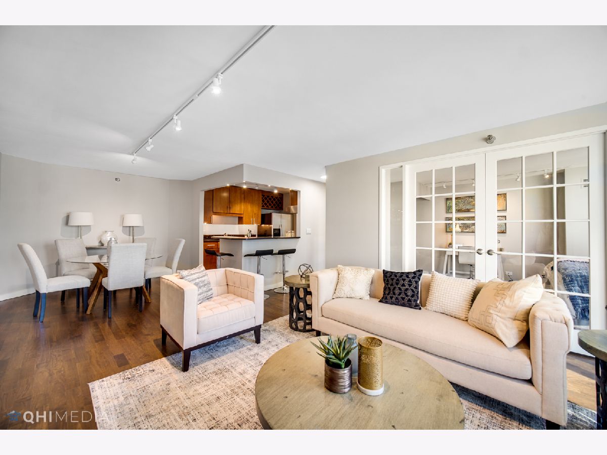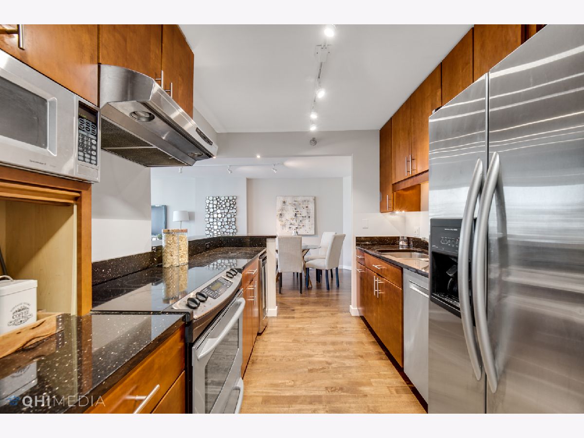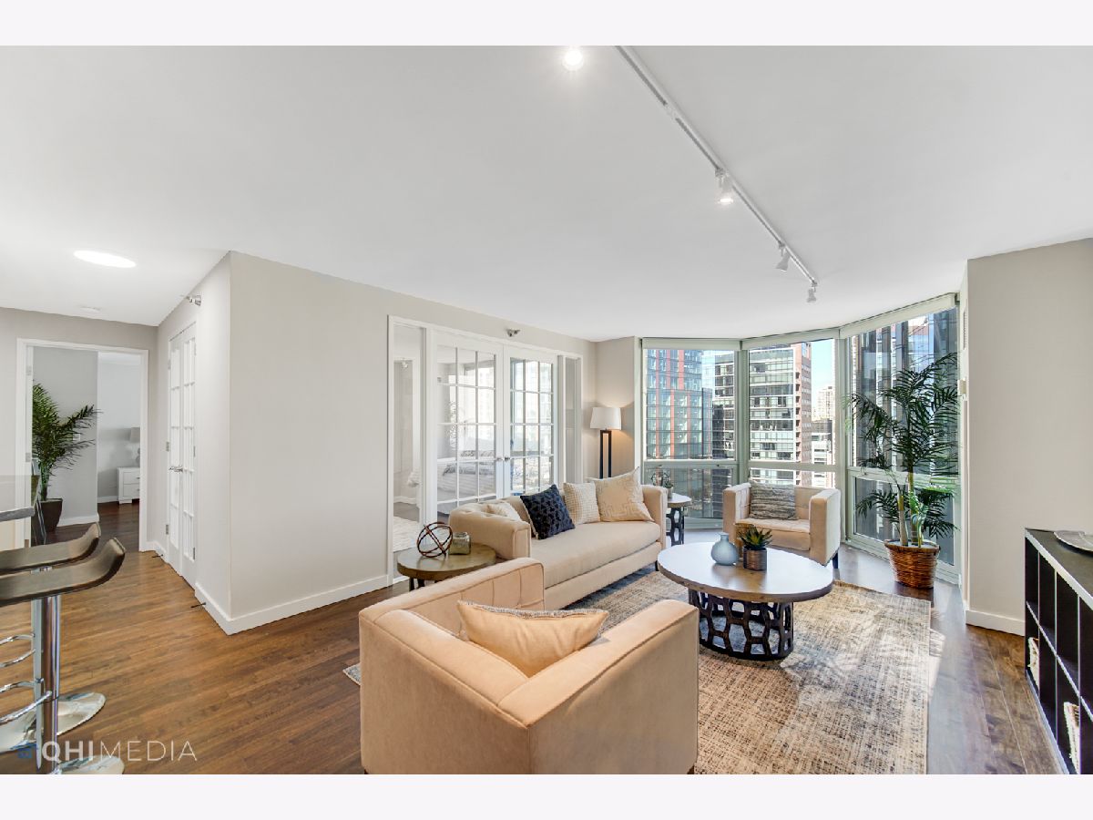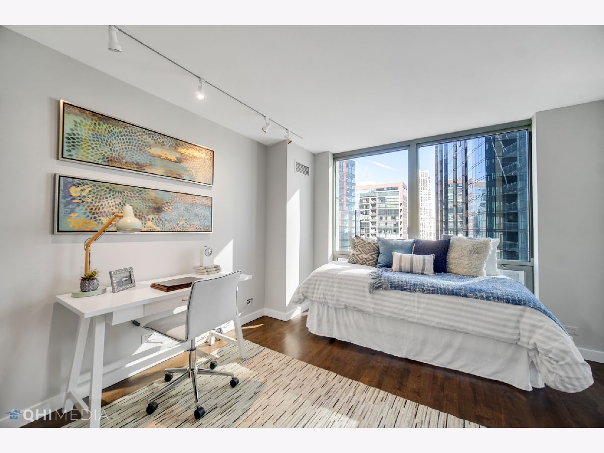 Spectacular 2bedroom/2bathroom in the Parkshore with unbeatable views of Navy Pier, Lake Michigan, Chicago River, City, and both Lakeshore East & Cascade Parks. This move-in ready condo features hardwood flooring throughout, floor to ceiling bay windows, open floor plan with the dining room adjacent to the updated kitchen offering an island with extra seating, granite countertops, stainless steel appliances, & in-unit laundry. The primary suite is very spacious offering a HUGE professionally organized walk-in closet & updated bathroom. The second bedroom features french doors that open up the space. The Parkshore is a full amenity building featuring a state of the art fitness center on the top floor, indoor jacuzzi with sweeping views, outdoor rooftop pool, 360 degree observation deck, two party rooms, private tennis courts, common grills, a dog run & access to a Bockwinkel's Grocery Store in the buildings concourse. Valet parking & extra storage is included in the price. Located within Chicago's premiere New Eastside/Lakeshore East area with easy access to the lakefront, riverwalk, Mariano's, restaurants, Lakeshore East Park, NEW Cascade Park, Maggie Daley, Millennium park & more!