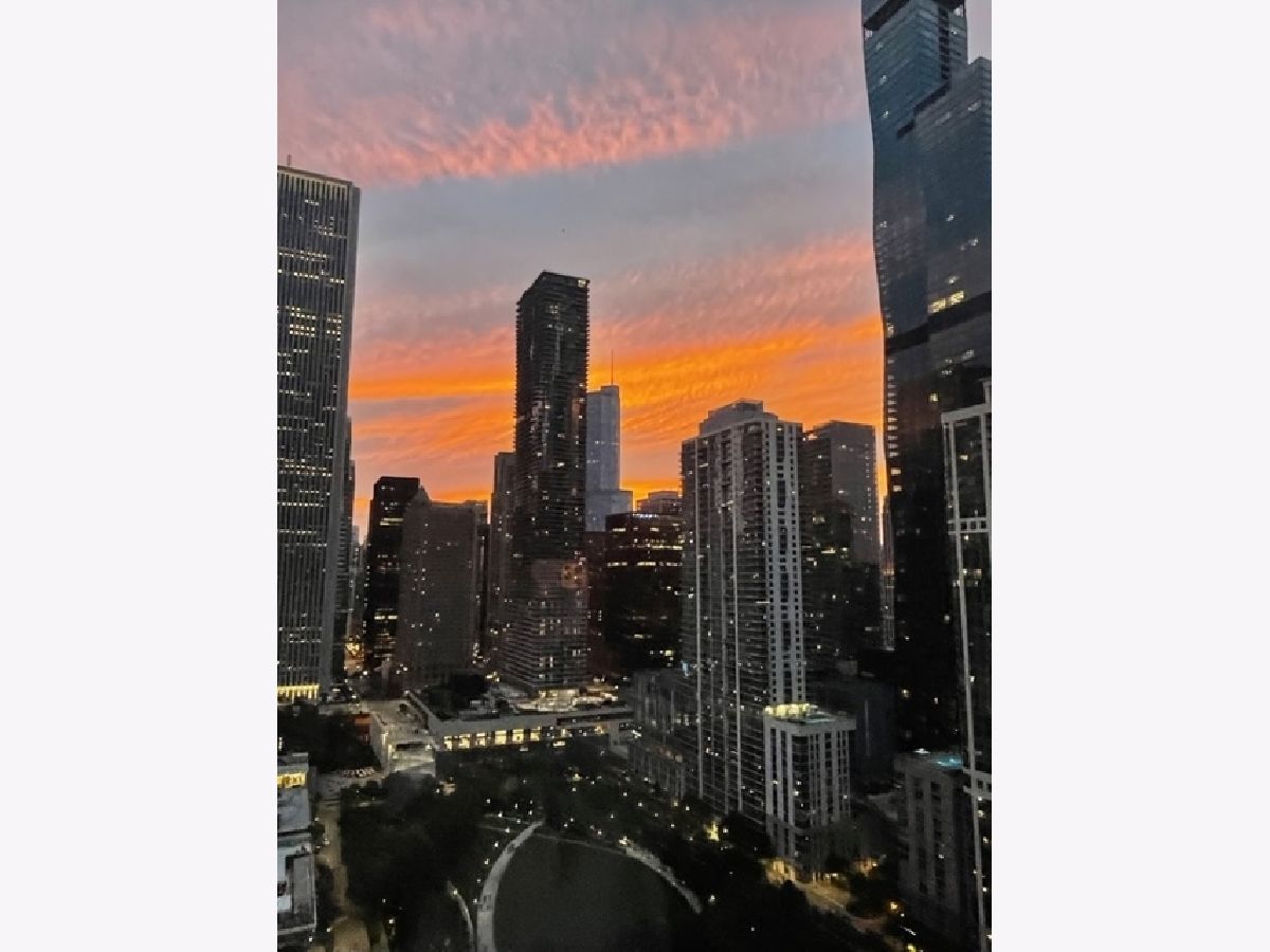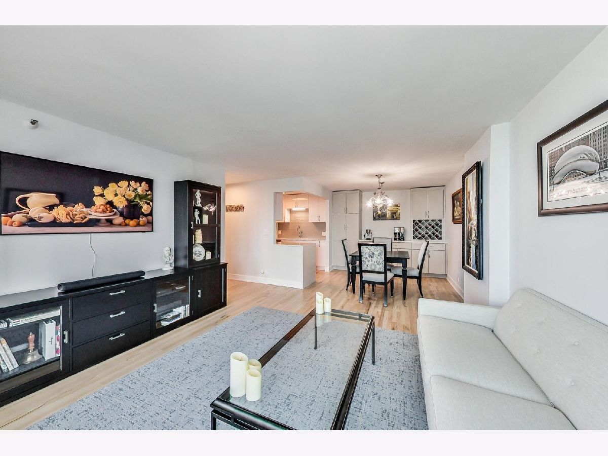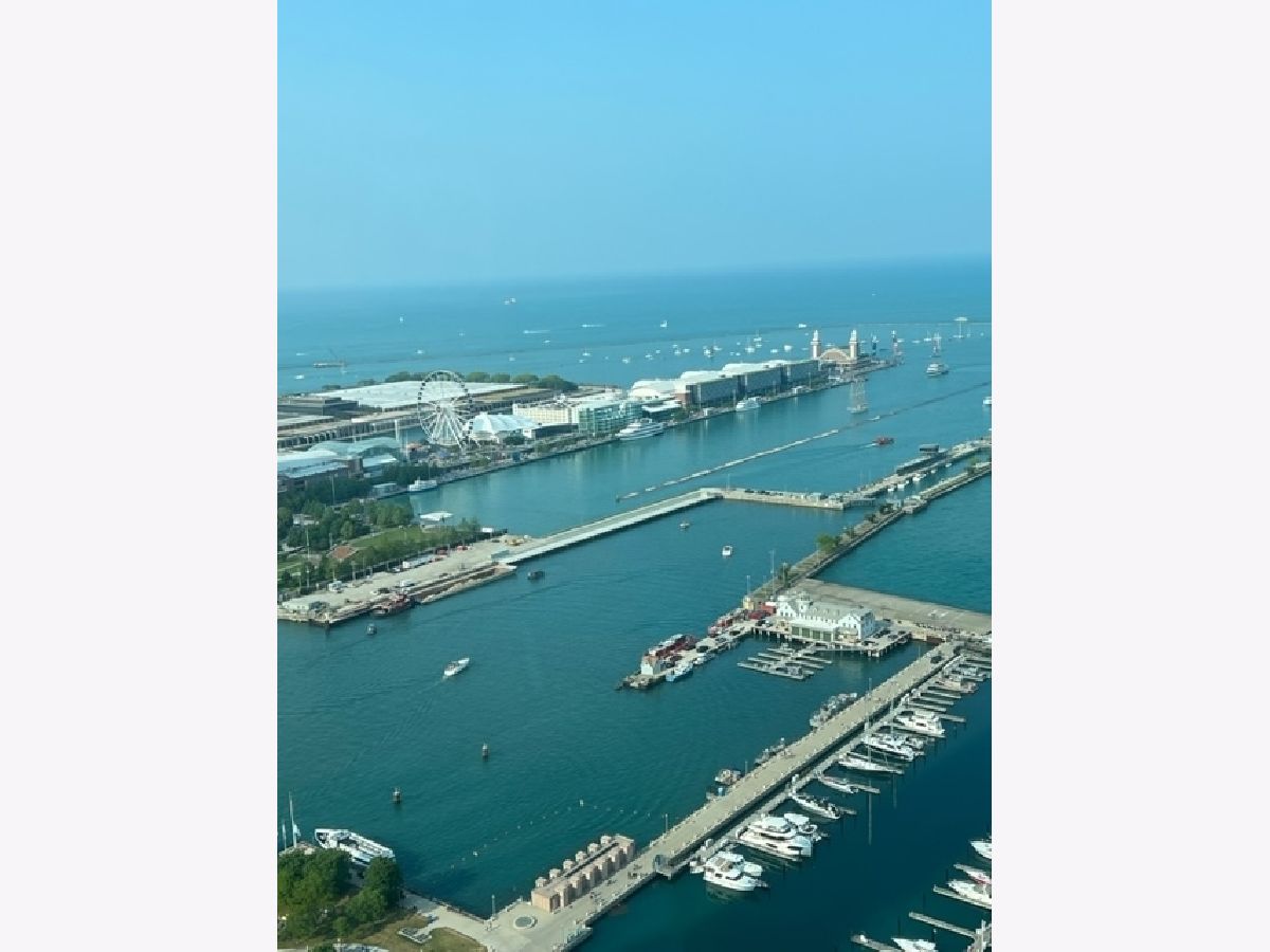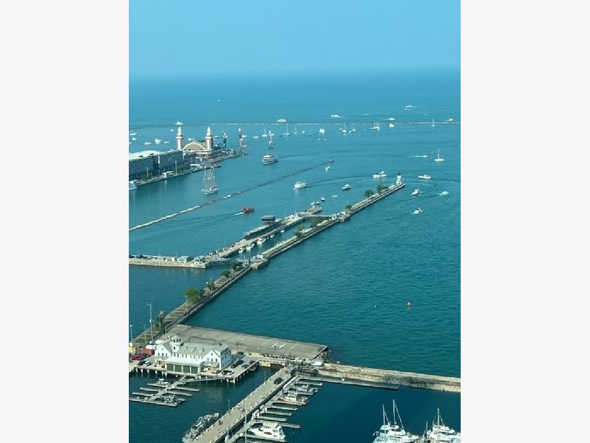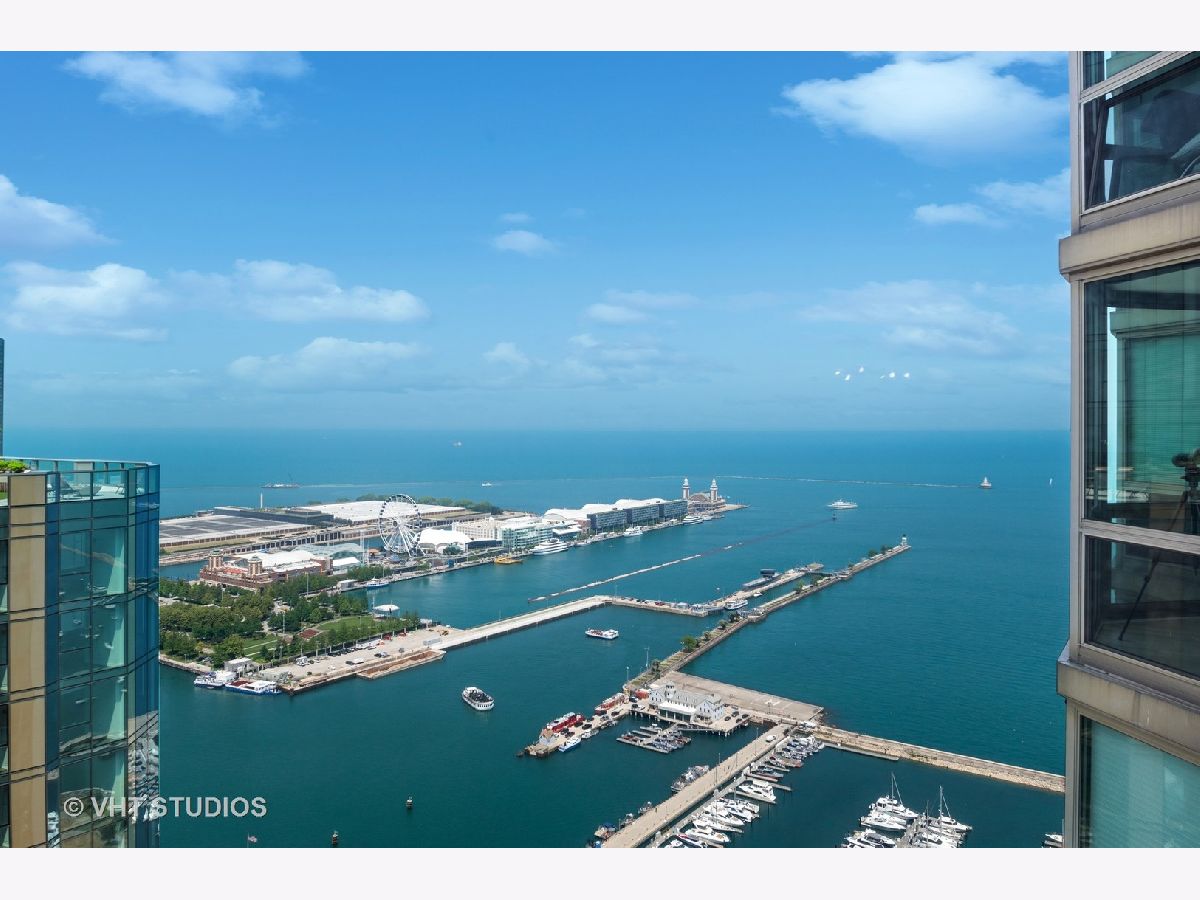 Exceptional renovation of this high floor 2 bedroom 2 bath. From the floor to ceiling windows with stunning unobstructed east views of Navy Pier and the lakefront you can see the fireworks every Wed, Sun, Memorial-Labor Days and on New Year's Eve! This home has been meticulously updated with extreme attention to detail from natural oak hardwood floors throughout, removal of popcorn ceilings, new electrical and lighting throughout, renovated kitchen with quartz countertops, waterfall edge, GE appliances, Bosch washer/dryer and soft close cabinets and drawers. Additionally, built-in storage was added in the dining room with quartz countertop, wine rack, soft close drawers and doors. Murano glass chandelier included. Both bathrooms renovated with quartz countertops, porcelain tile, new toilets, new plumbing and built-in shower bench in primary bath. California Closets throughout. And finally, **1 valet parking spot included in the price**! The building itself boasts a Roof-top Pool and sundeck, hot tub, sauna, gym, outdoor grills, tennis/pickle ball court, dog run, bicycle storage, 24-hour doorman, day spa, dry cleaner, package room, laundry room with commercial-size machines, on-site management, concourse pedway that connects to Bockwinkel's at Harbor Point. Two party rooms (Club Room and The Library(180-degree view of Lake Michigan and City). Short walk to Millenium, Grant and Lake Shore East Parks. HOA as of 1/1/24 will be $1343.50 (tv/internet - 61.42; parking - 178.25; assessment - 1103.83).