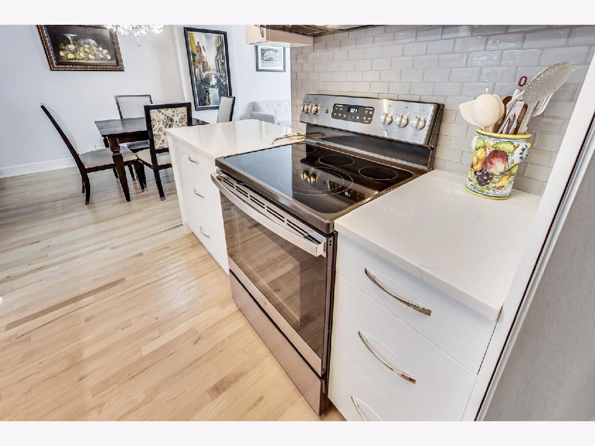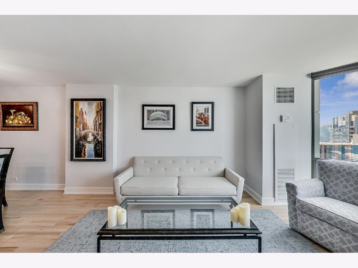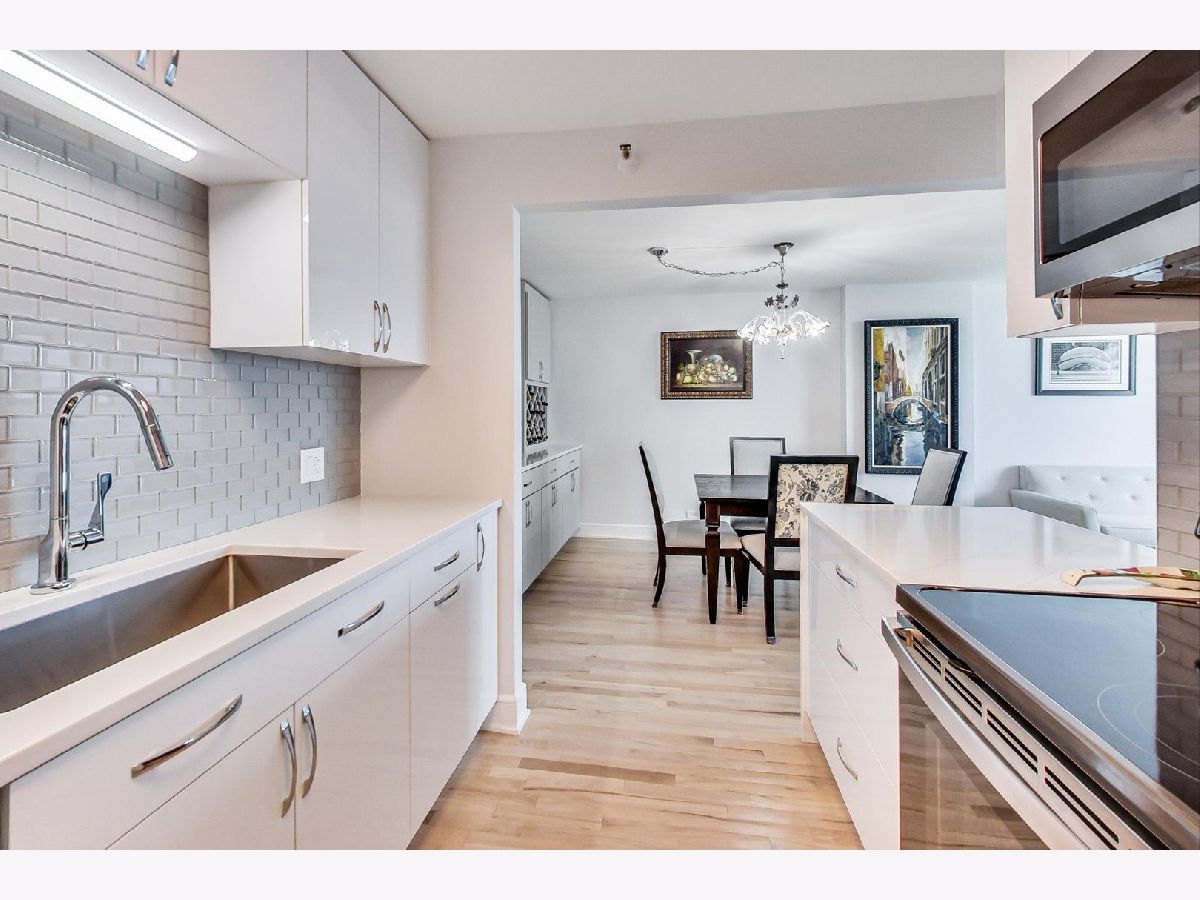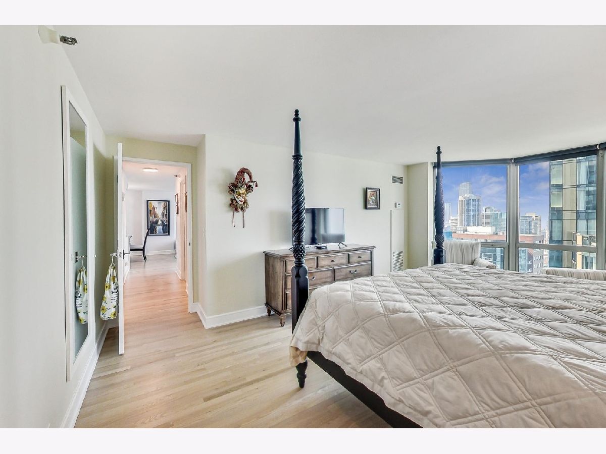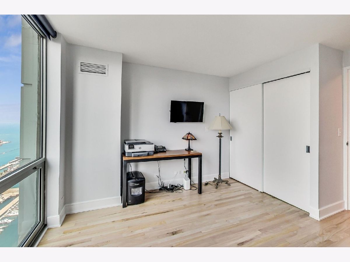 Exceptional renovation of this high floor 2 bedroom 2 bath. From the floor to ceiling windows with stunning unobstructed east views of Navy Pier and the lakefront you can see the fireworks every Wed, Sun, Memorial-Labor Days and on New Year's Eve! This home has been meticulously updated with extreme attention to detail from natural oak hardwood floors throughout, removal of popcorn ceilings, new electrical and lighting throughout, renovated kitchen with quartz countertops, waterfall edge, GE appliances, Bosch washer/dryer and soft close cabinets and drawers. Additionally, built-in storage was added in the dining room with quartz countertop, wine rack, soft close drawers and doors. Murano glass chandelier included. Both bathrooms renovated with quartz countertops, porcelain tile, new toilets, new plumbing and built-in shower bench in primary bath. California Closets throughout. And finally, **1 valet parking spot included in the price**! The building itself boasts a Roof-top Pool and sundeck, hot tub, sauna, gym, outdoor grills, tennis/pickle ball court, dog run, bicycle storage, 24-hour doorman, day spa, dry cleaner, package room, laundry room with commercial-size machines, on-site management, concourse pedway that connects to Bockwinkel's at Harbor Point. Two party rooms (Club Room and The Library(180-degree view of Lake Michigan and City). Short walk to Millenium, Grant and Lake Shore East Parks. HOA as of 1/1/24 will be $1343.50 (tv/internet - 61.42; parking - 178.25; assessment - 1103.83).