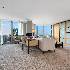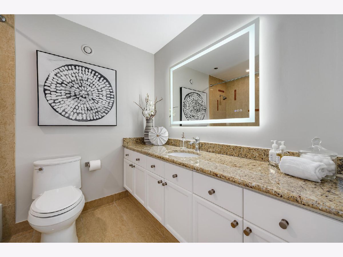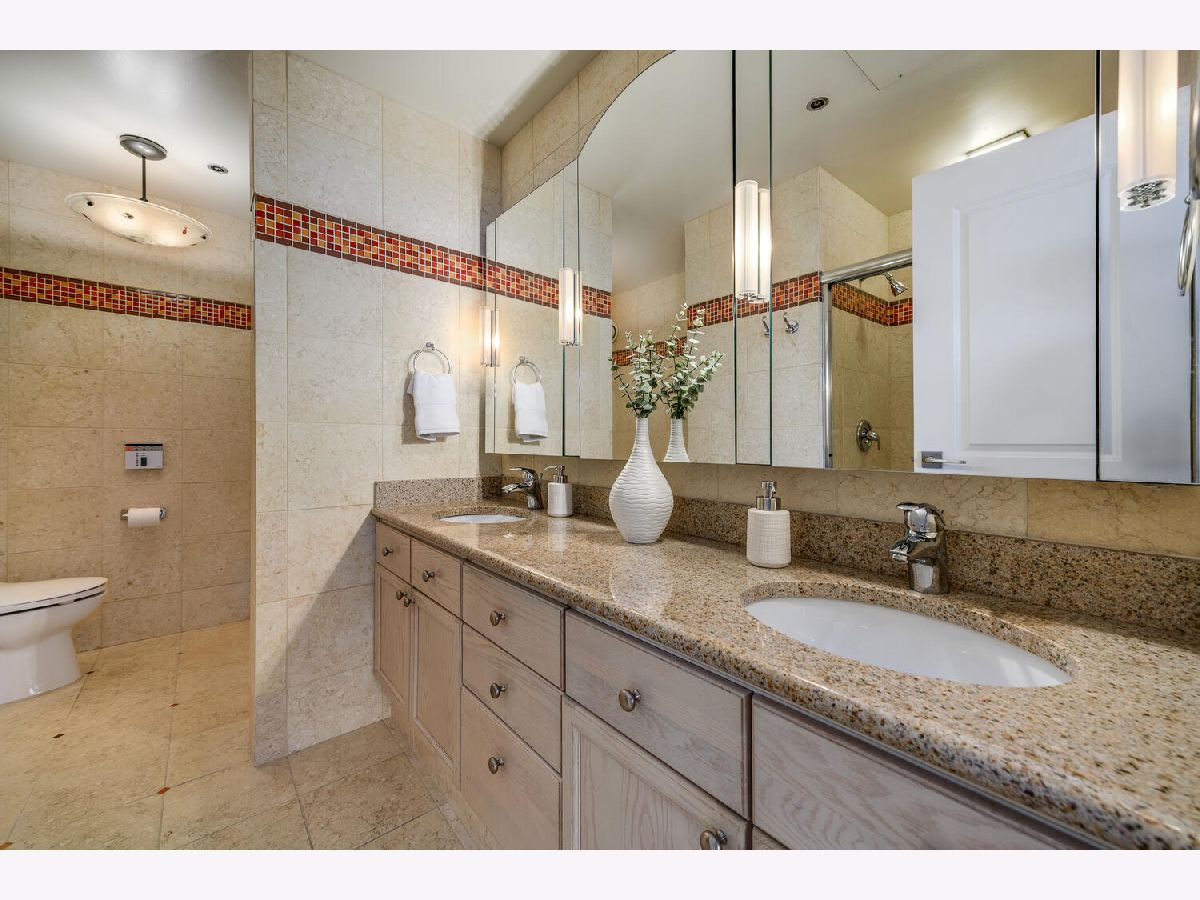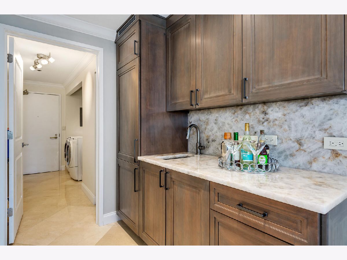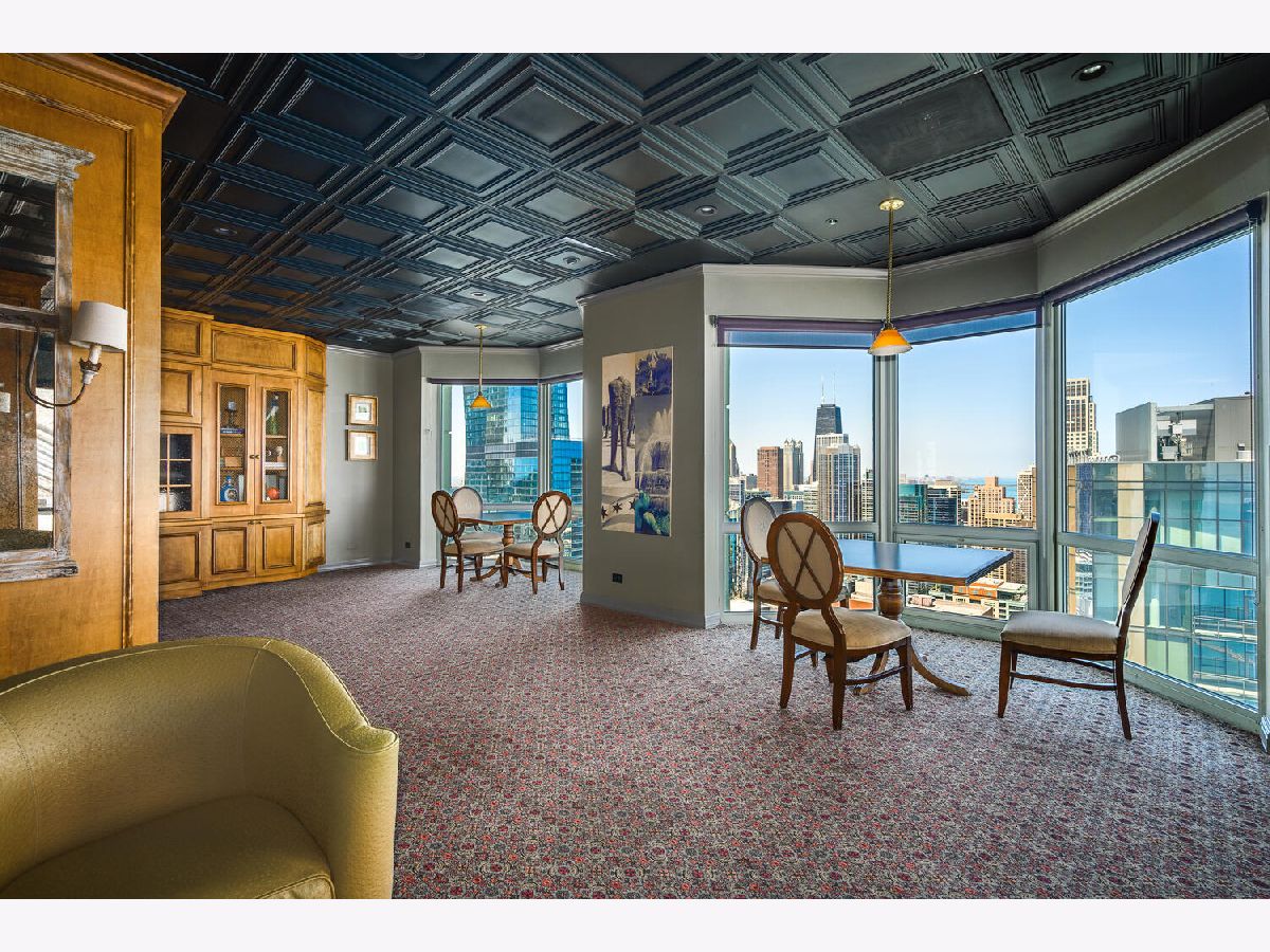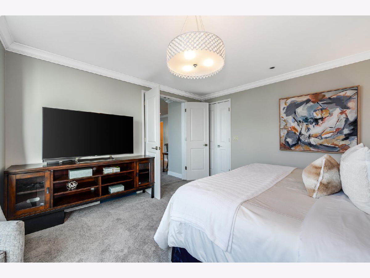 Welcome to the pinnacle of luxury living in Lakeshore East's premier 55th-floor penthouse at the Park Shore, a newly renovated masterpiece offering 2,650 square feet of exquisite living space. This stunning 3-bedroom, 2.5-bathroom corner unit is a rare find, featuring a private balcony and two heated garage parking spaces. From every room, you'll be captivated by unobstructed 180-degree views of Navy Pier, Lake Michigan, and the Chicago skyline, framed by expansive windows that flood the home with natural light. The gourmet kitchen, designed for both casual dining and grand entertaining, boasts quartzite countertops and backsplash, custom Omega cabinetry with walnut drawers, and professional-grade Wolf, Subzero, and Bosch appliances. The oversized peninsula with a breakfast bar, along with a built-in wet bar featuring a wine fridge and filtered water tap, make this kitchen a true chef's delight. Adjacent to the kitchen is a spacious dining area and a separate living room with custom built-ins, offering direct access to the balcony, perfect for morning coffee or sunset cocktails. The luxurious primary suite, expanded by an additional 450 square feet acquired from another unit, is a serene retreat with French doors leading from the bedroom to an oversized family room and office space, which can be converted into a fourth bedroom if desired. The spa-like en-suite bathroom features a dual vanity, soaking tub, and walk-in shower, while the suite also includes a kitchenette, full laundry room with sink, and a second private entrance, offering flexibility for guests or in-law quarters. Two additional bedrooms, including one with its own en-suite bath, a half bath, and Sonos ceiling speakers complete this magnificent residence. As part of a full-amenity building, you'll enjoy 24 hour door staff, an outdoor pool, sundeck, grills, indoor spa, fitness center with Pilates studio, tennis, bocce ball and pickleball courts, a dog park, cleaners, and valet parking for guests. With convenient access to the lakefront, Millennium Park, and the vibrant dining and shopping scene of Lakeshore East, this penthouse is a truly unparalleled offering.