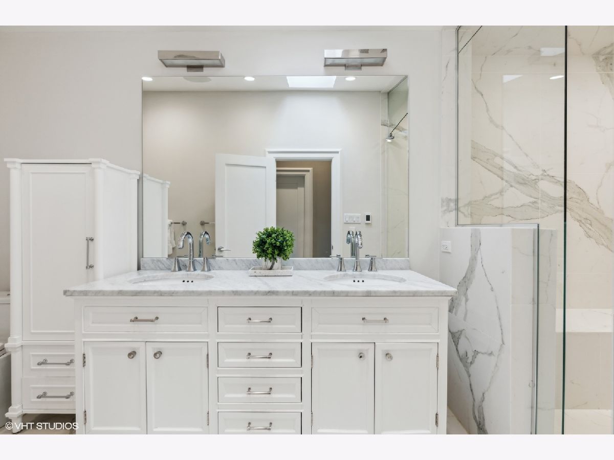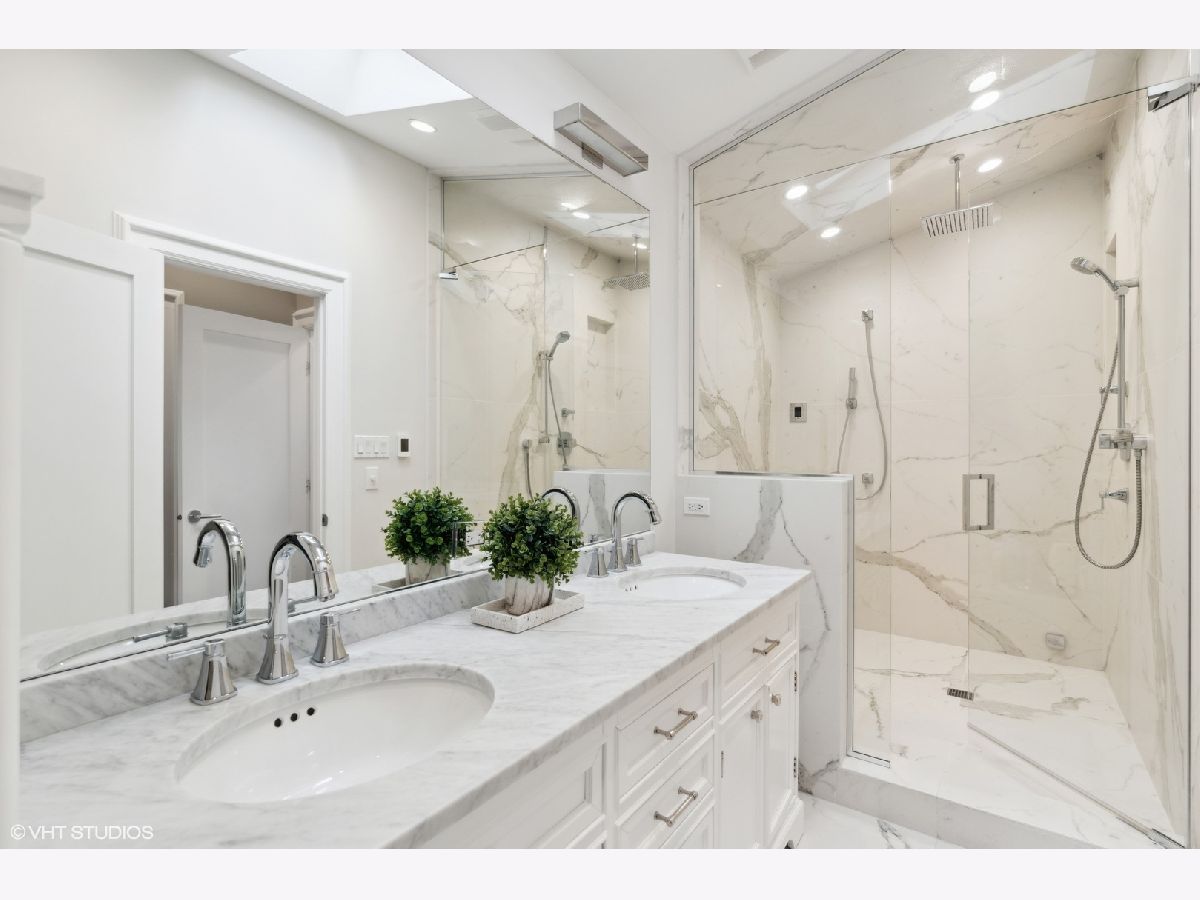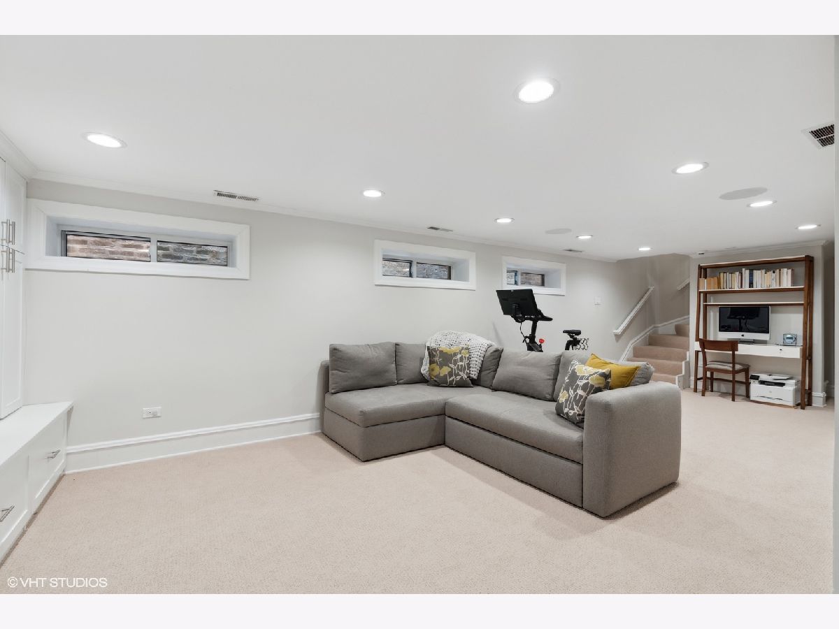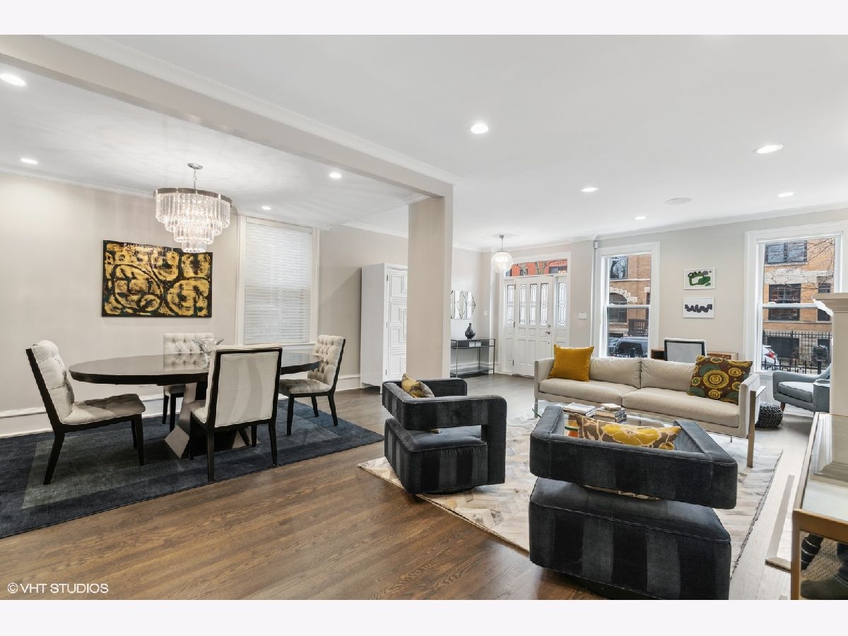 Literally in the heart of it all, this stunning Lincoln Park brick 3 bedroom, 3.5 bath single family home is situated across from Adams Park and steps to Armitage! This beautiful property was completely renovated in 2016 and boasts an open floor plan, refined finishes, quality workmanship and an ideal neighborhood location. Restoration hardware lighting, Grohe faucets and Klipsch built in speakers polish off the space. Enter the main floor into the spacious combination living room/dining room, finished with a warm fireplace, rich dark hardwood floors, crown molding and a built-in sound system. Continue on to the spectacular kitchen featuring an oversized island, Wolf, SubZero and Asko appliances. Enjoy the wine cooler, custom cabinetry, Quartz counters and Anne Sacks tile backsplash. Entertain with ease from your sprawling back deck with access through the kitchen sliding door. A convenient and lovely powder bath completes this floor. Retreat upstairs where you'll find three spacious bedrooms and two bathrooms, soaring vaulted ceilings, skylights, hardwood flooring and crown molding. The lavish, king-size primary suite hosts a dreamy walk-in closet with custom built-ins and private deck. Relax in the decadent ensuite bathroom complete with heated floors, double Restoration Hardware vanity, and an enormous steam shower! Enjoy the convenience and versatility of the lower level recreation room and office area (where sellers have their 4th bed). This level offers a full bathroom, so guests can enjoy the entire space. Expect a dry basement with drainage tile, sump pump and ejector pit with check valve. This gorgeous home checks all the boxes, including laundry room, tons of storage, an unfinished wine closet and 2-car garage! Venture out to experience all that Lincoln Park has to offer--with a 99 walk score, the city is at your doorstep! Just two blocks to the Brown/Purple Line Armitage El Station and a short jaunt to the Armitage shops and restaurants.