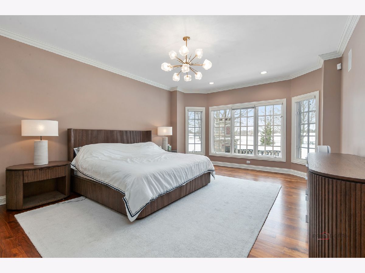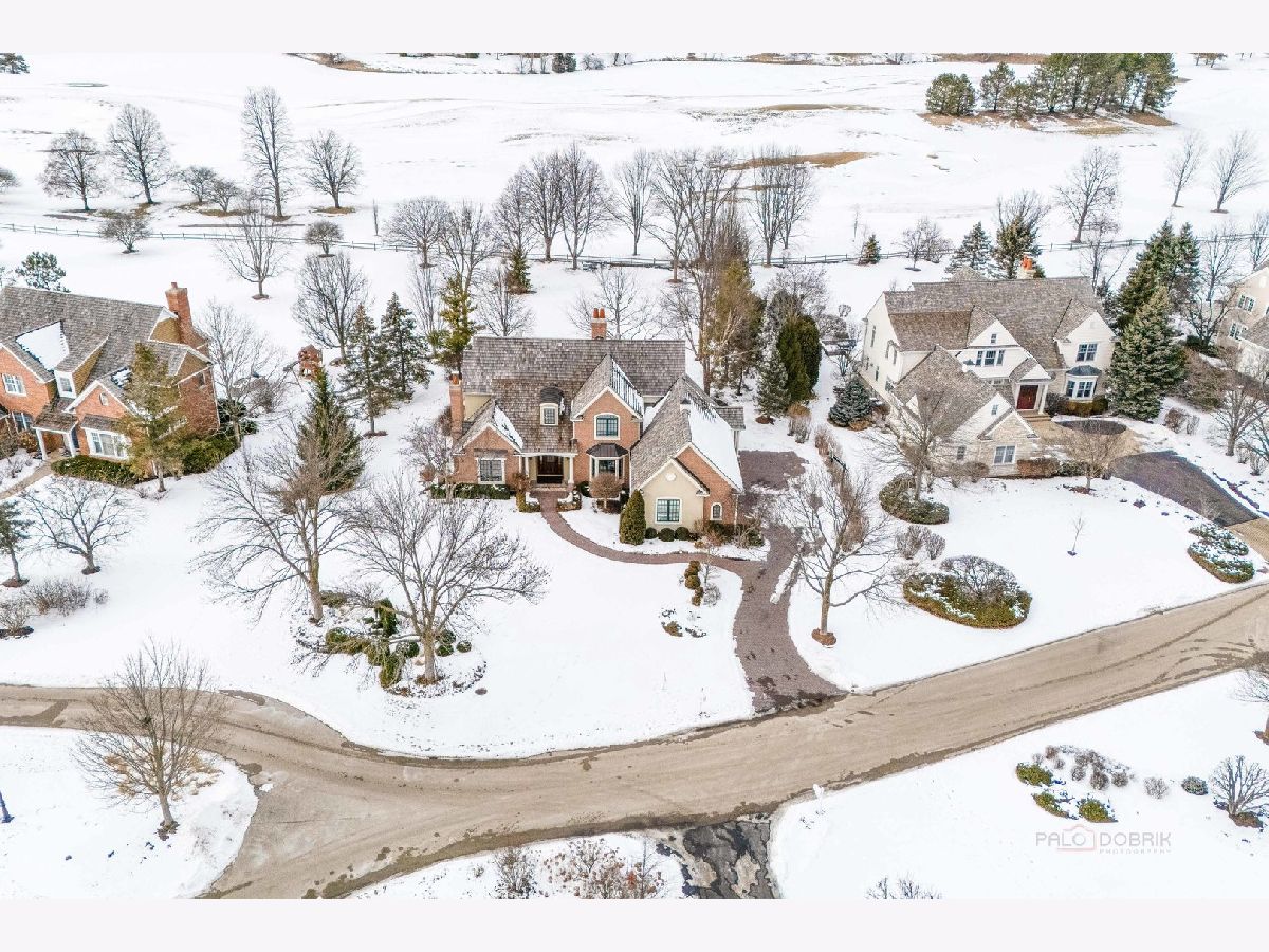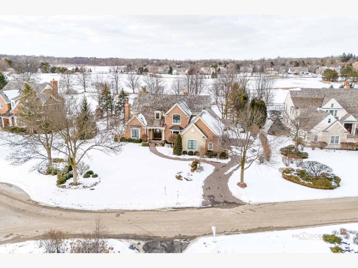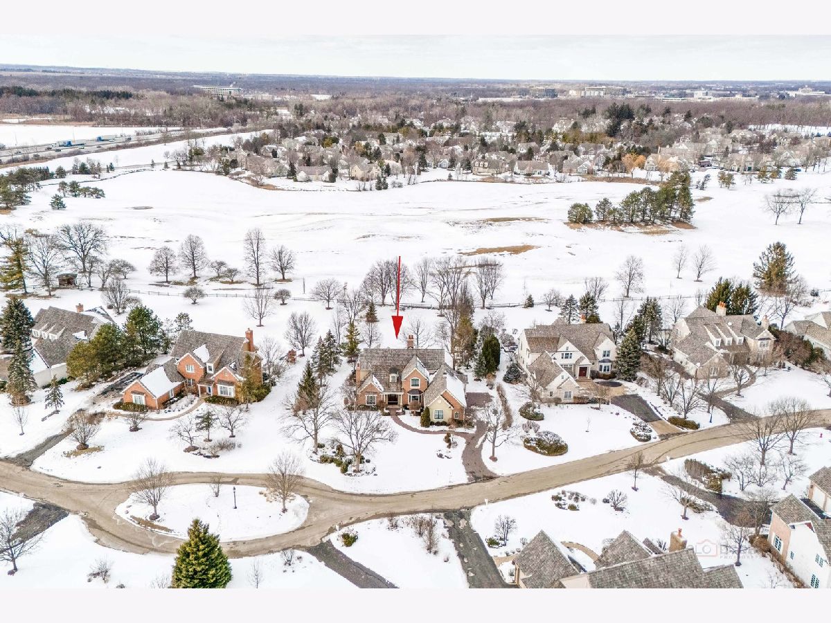 Stunning brick residence offering 5 bedrooms and 4.1 baths, perfectly positioned on a coveted golf course lot in Conway Farms. A dramatic two-story foyer welcomes you with an elegant curved staircase, setting the tone for this exceptional home. The inviting living room features vaulted ceilings and a cozy fireplace, while the formal dining room is ideal for entertaining and connects seamlessly to the kitchen through a Butler's pantry. The breathtaking family room boasts soaring ceilings, an impressive fireplace, and a wet bar-perfect for gatherings. The gourmet kitchen is a chef's dream, showcasing a large island with breakfast bar and prep sink, granite countertops, walk-in pantry, abundant cabinetry, and premium appliances including a Sub-Zero refrigerator and Wolf 6-burner range with griddle. The sun-filled eating area offers direct access to the expansive brick paver patio. The thoughtfully designed main level includes a serene primary suite with picturesque backyard views, dual walk-in closets, and a luxurious ensuite featuring double vanities, a whirlpool tub, and separate shower. A handsome office with walnut-paneled walls and built-in shelving doubles as a potential library. A convenient laundry room and powder room complete the main floor. The second level offers a bedroom with private ensuite and walk-in closet, plus two additional bedrooms connected by a Jack-and-Jill bath. The fully finished basement adds remarkable living space, including a spacious recreation room with bar, dedicated theater room, exercise room, wine room, fifth bedroom with full bath, and an oversized walk-in cedar closet. Additional highlights include a three-car garage, expansive lot with an outdoor fireplace built into the patio, and breathtaking golf course views. Ideally located with easy access to the train and highway. An exceptional opportunity not to be missed!