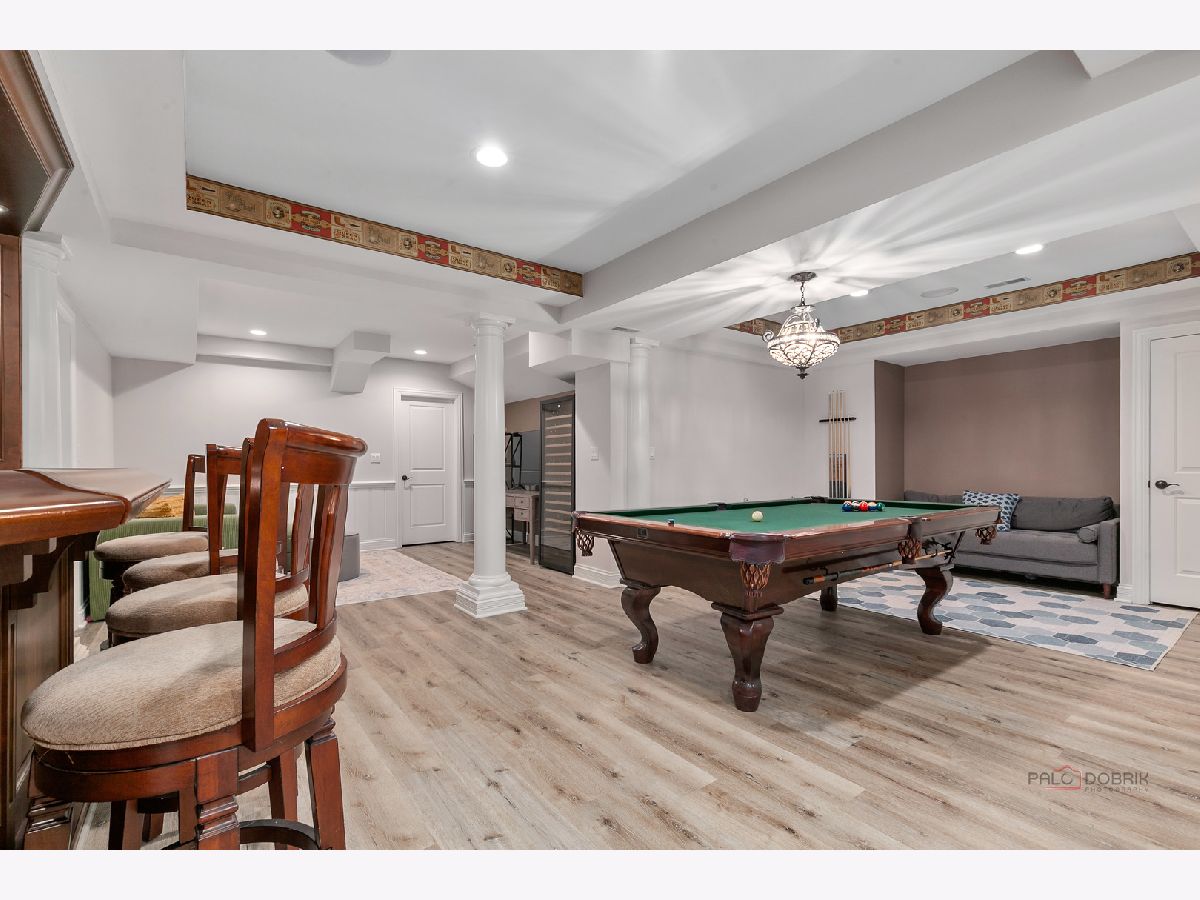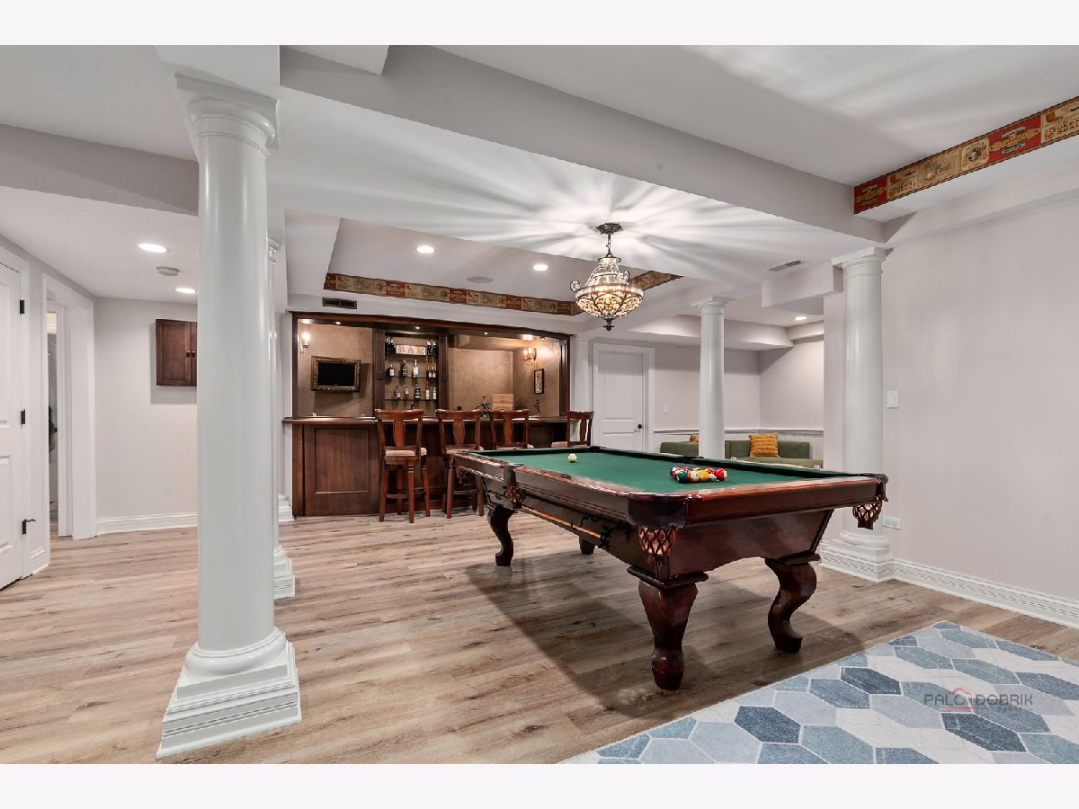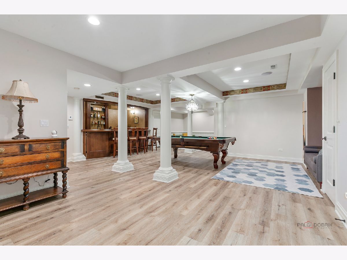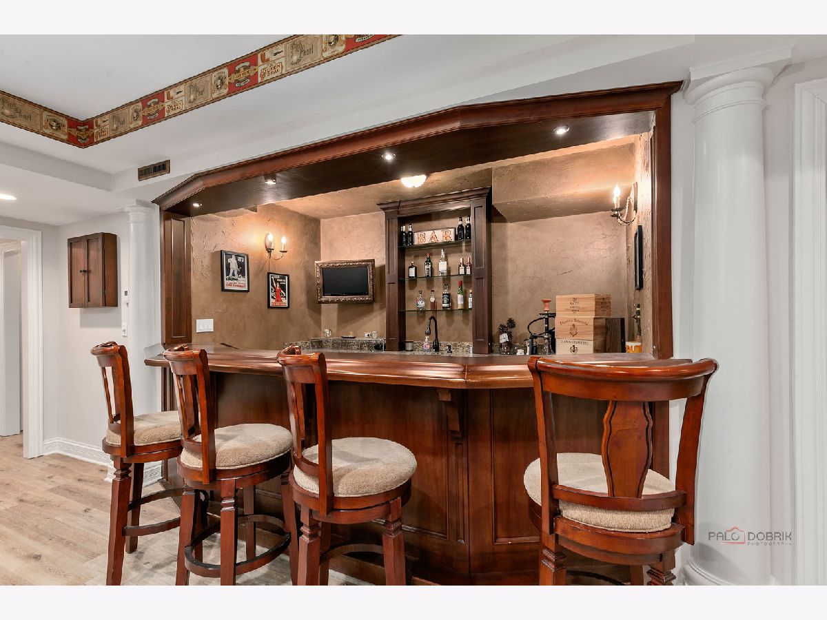 Stunning brick residence offering 5 bedrooms and 4.1 baths, perfectly positioned on a coveted golf course lot in Conway Farms. A dramatic two-story foyer welcomes you with an elegant curved staircase, setting the tone for this exceptional home. The inviting living room features vaulted ceilings and a cozy fireplace, while the formal dining room is ideal for entertaining and connects seamlessly to the kitchen through a Butler's pantry. The breathtaking family room boasts soaring ceilings, an impressive fireplace, and a wet bar-perfect for gatherings. The gourmet kitchen is a chef's dream, showcasing a large island with breakfast bar and prep sink, granite countertops, walk-in pantry, abundant cabinetry, and premium appliances including a Sub-Zero refrigerator and Wolf 6-burner range with griddle. The sun-filled eating area offers direct access to the expansive brick paver patio. The thoughtfully designed main level includes a serene primary suite with picturesque backyard views, dual walk-in closets, and a luxurious ensuite featuring double vanities, a whirlpool tub, and separate shower. A handsome office with walnut-paneled walls and built-in shelving doubles as a potential library. A convenient laundry room and powder room complete the main floor. The second level offers a bedroom with private ensuite and walk-in closet, plus two additional bedrooms connected by a Jack-and-Jill bath. The fully finished basement adds remarkable living space, including a spacious recreation room with bar, dedicated theater room, exercise room, wine room, fifth bedroom with full bath, and an oversized walk-in cedar closet. Additional highlights include a three-car garage, expansive lot with an outdoor fireplace built into the patio, and breathtaking golf course views. Ideally located with easy access to the train and highway. An exceptional opportunity not to be missed!