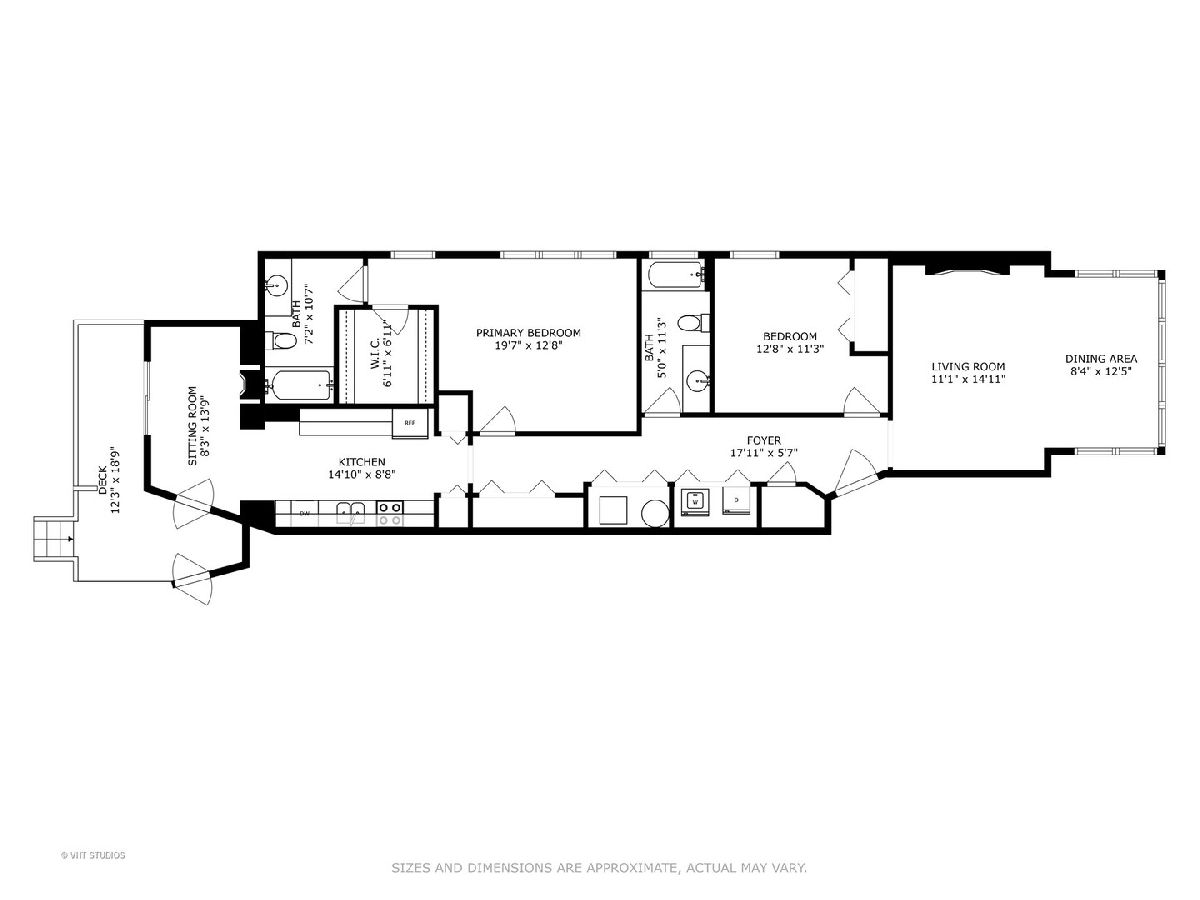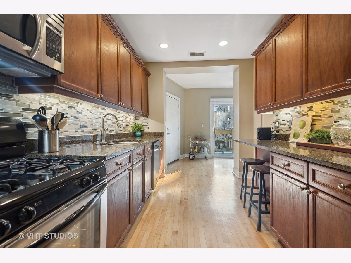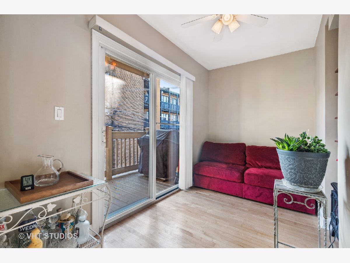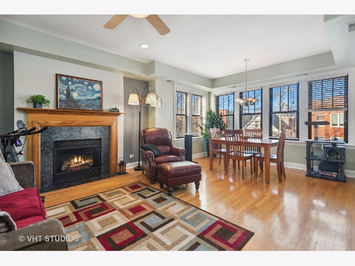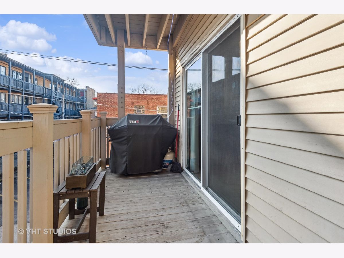 Oversized, light and bright Rogers Park 2 bed, 2 bath with a generous floorplan. Large living room with a cozy gas fireplace and an abundance of windows providing great sunlight throughout. Extra Large primary bedroom with walk in closet and a nice sized 2nd bedroom. An abundance of closets throughout the unit. Roomy kitchen has granite counters with a smart backsplash, stainless steel appliances and more! Bonus room off the kitchen is perfect as a dining room or library. Enjoy your morning coffee or afternoon drink on your spacious deck. Full size, in-unit washer/dryer, central a/c, plus additional storage in basement. Great location. Short walk to busses, trains, parks, fabulous restaurants and shopping. Easy street parking.