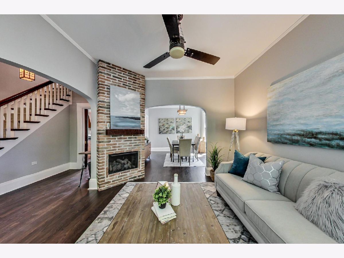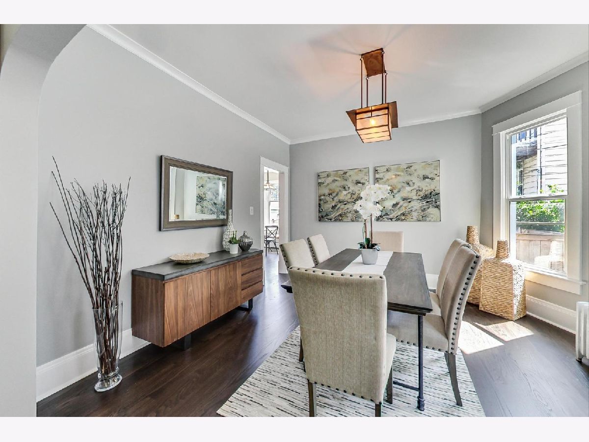 You will not want to miss this beautifully done single family in the heart of Roscoe Village! Walk to it all! One block to the corner of Roscoe and Damen. The first floor will impress from the foyer to the formal living room, dining room, eat in kitchen and half bath. The second floor includes a large bathroom and three bedrooms. Freshly painted, brand new wood floors on the 1st floor. Lovely low maintenance back yard. Great for entertaining. The basement is the perfect den, playroom or office. Plenty of storage, laundry area and plumbing to add an additional bathroom if you like. 2 Blocks to Audubon! A+ block! A++ location! Single family home for the price of a condo! Easy street or rental parking in the area. No designated parking with he home.