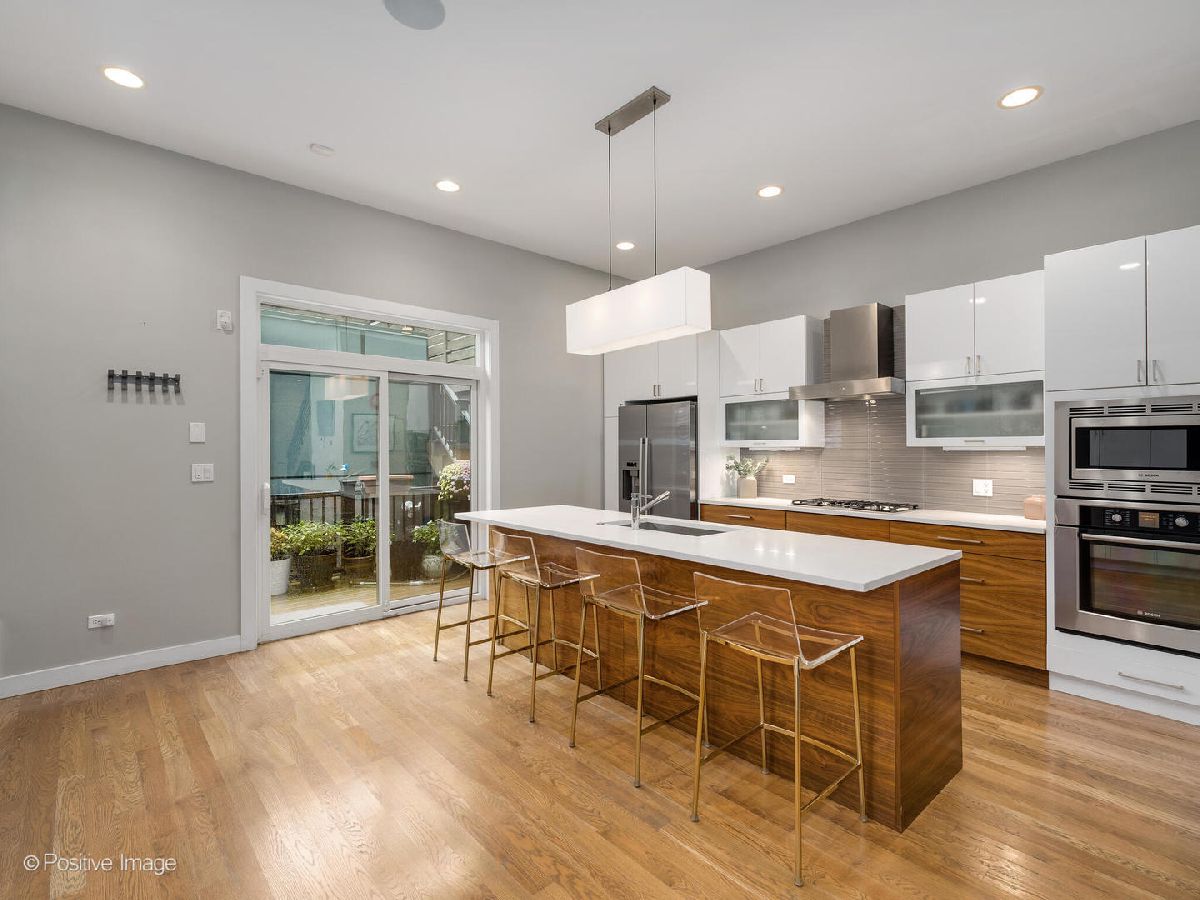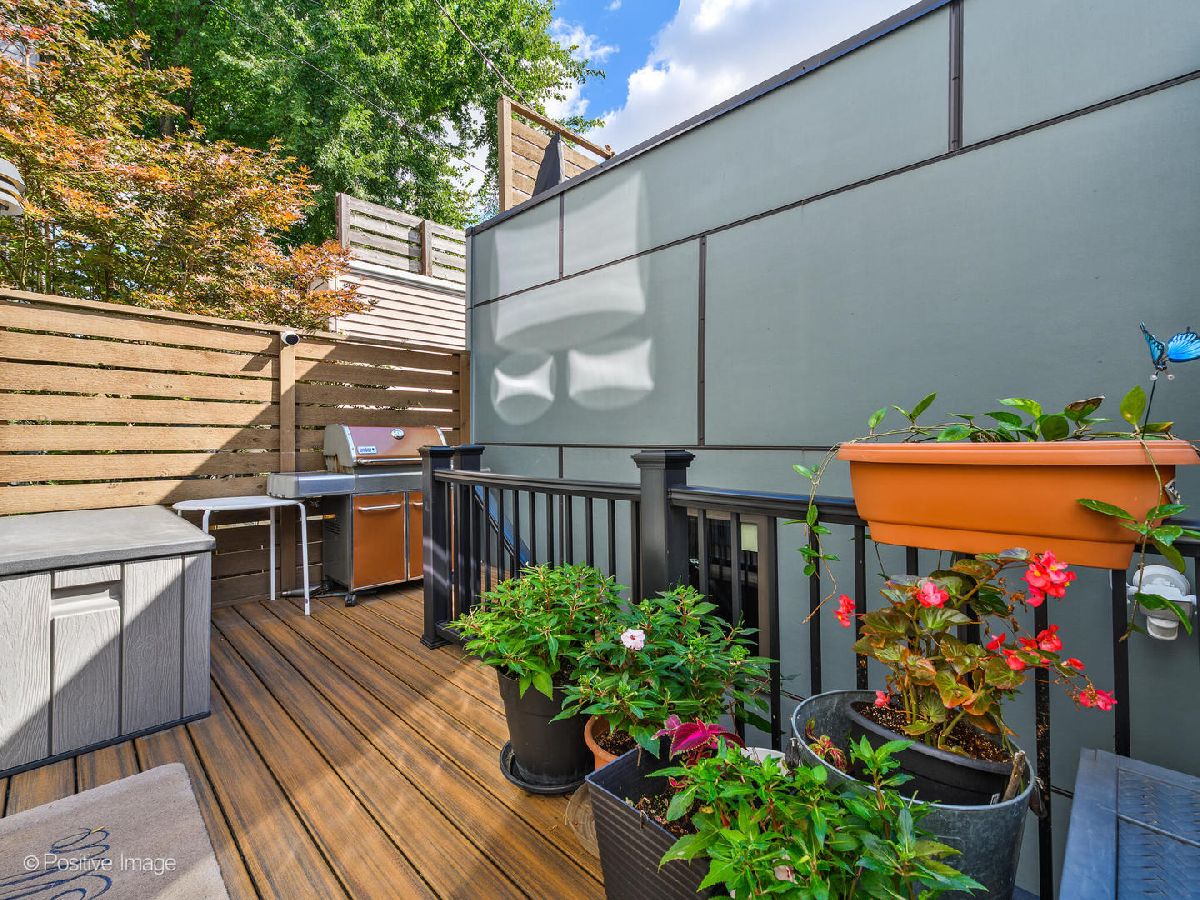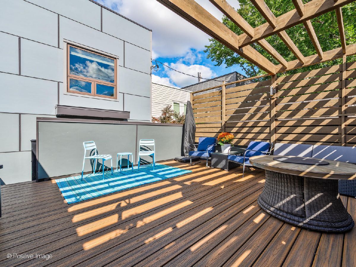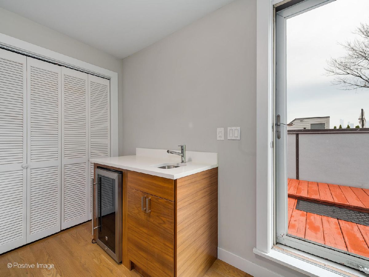 Located in West Town, this contemporary 2014 construction home has 4 bedrooms, 3.5 bathrooms, clean lines, timeless finishes, and a functional layout. The first floor has soaring 10.5' ceilings, hardwood floors, and an open floor plan perfect for entertaining. The modern, sleek kitchen with a full Bosch appliance package includes a brand new refrigerator, quartz countertops, and plenty of storage space thanks to the new pantry cabinets added in 2020. The second floor boasts a primary suite with a gorgeous ensuite bathroom complete with a deep soaker tub and sleek separate shower. Down the hall you'll find two additional generously sized bedrooms, an additional bathroom with shower/tub combo and dual vanity, as well as a spacious linen closet, complete with hookup for an additional washer & dryer. The lower level feels like anything but a basement thanks to the 9.5' ceilings, large 4th bedroom (which could double as an office or home gym), full bathroom, and separate laundry room. The lower level family room with a wet bar and wine fridge is expansive with endless possibilities for use. This home has incredible outdoor space - off the kitchen you'll find a deck that leads up to a full garage roof deck oasis with Trex decking, and a built-in pergola - providing the ultimate privacy and shade. But that's not all, the entire roof of the home is decked and waiting for your Chicago summer barbeques where you'll enjoy breathtaking skyline views, with an additional wet bar and wine fridge right inside the landing. The two car garage has built-in storage shelves, and is wired for a 50amp EV charger. This home has ample closet space and storage throughout. Incredible move-in ready house in a fantastic neighborhood - you don't want to miss this one!