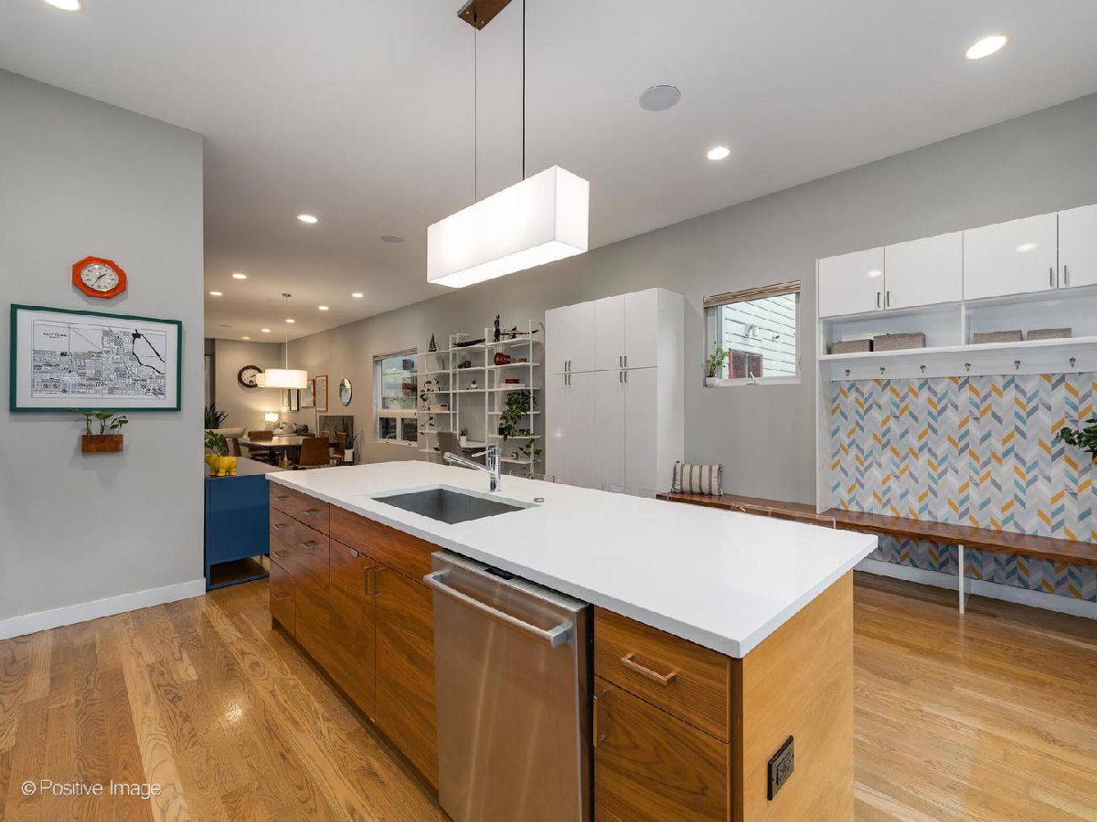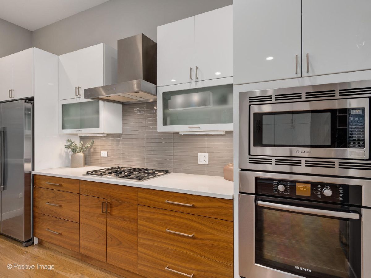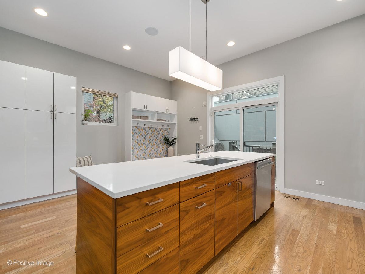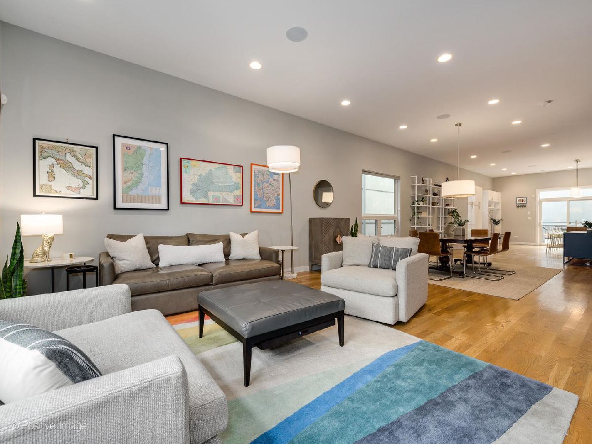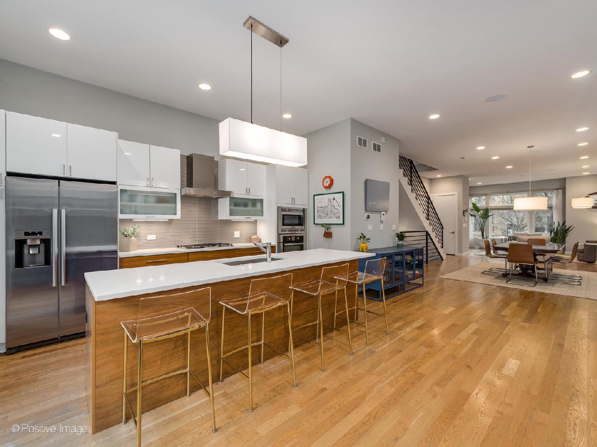 Located in West Town, this contemporary 2014 construction home has 4 bedrooms, 3.5 bathrooms, clean lines, timeless finishes, and a functional layout. The first floor has soaring 10.5' ceilings, hardwood floors, and an open floor plan perfect for entertaining. The modern, sleek kitchen with a full Bosch appliance package includes a brand new refrigerator, quartz countertops, and plenty of storage space thanks to the new pantry cabinets added in 2020. The second floor boasts a primary suite with a gorgeous ensuite bathroom complete with a deep soaker tub and sleek separate shower. Down the hall you'll find two additional generously sized bedrooms, an additional bathroom with shower/tub combo and dual vanity, as well as a spacious linen closet, complete with hookup for an additional washer & dryer. The lower level feels like anything but a basement thanks to the 9.5' ceilings, large 4th bedroom (which could double as an office or home gym), full bathroom, and separate laundry room. The lower level family room with a wet bar and wine fridge is expansive with endless possibilities for use. This home has incredible outdoor space - off the kitchen you'll find a deck that leads up to a full garage roof deck oasis with Trex decking, and a built-in pergola - providing the ultimate privacy and shade. But that's not all, the entire roof of the home is decked and waiting for your Chicago summer barbeques where you'll enjoy breathtaking skyline views, with an additional wet bar and wine fridge right inside the landing. The two car garage has built-in storage shelves, and is wired for a 50amp EV charger. This home has ample closet space and storage throughout. Incredible move-in ready house in a fantastic neighborhood - you don't want to miss this one!