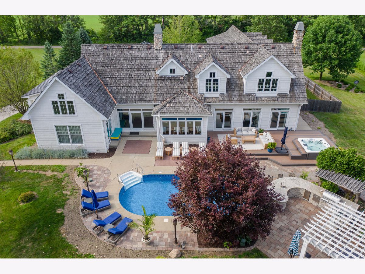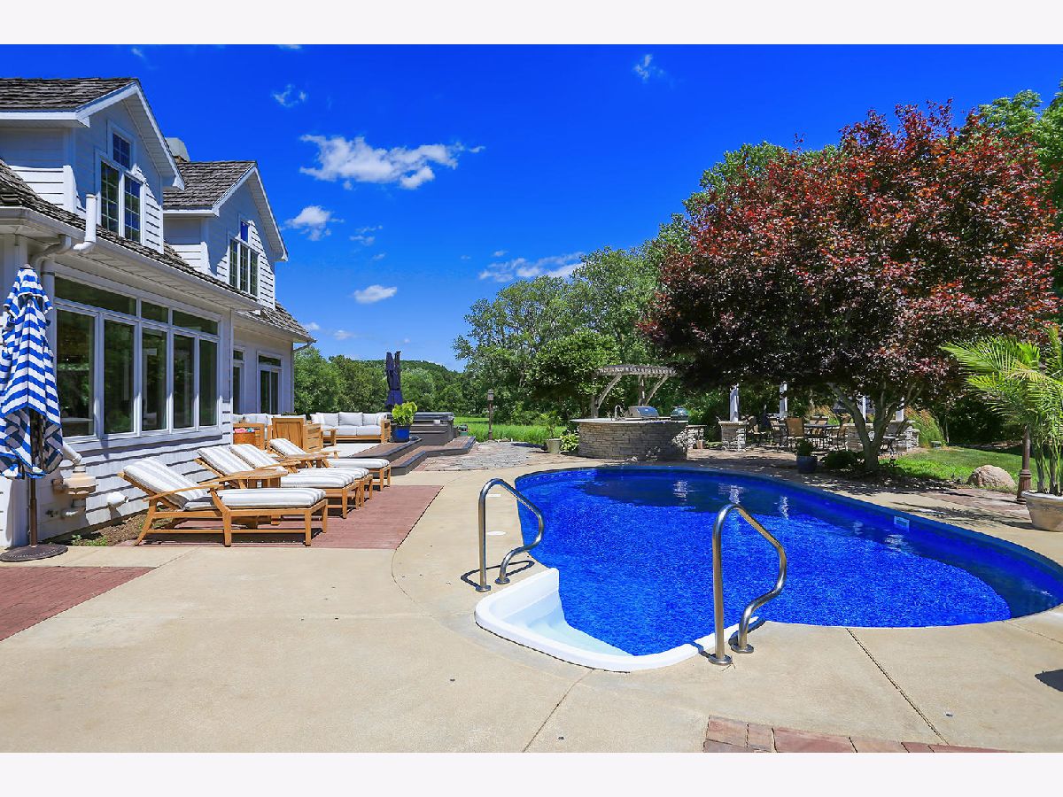 Amazing opportunity to own this 43 acre estate, just minutes from Champaign-Urbana. This impeccable property borders the Sangamon River, is mostly wooded, and will be your very own retreat with the 15X27 in-ground heated pool, 8-person hot tub, outdoor kitchen area, expansive patio/deck and pergola. As you enter the home from the wrap-around porch you will be wowed from the "rustic-modern" design with beautiful planked oak floors, vaulted ceilings and stone fireplaces. The kitchen is a chef's dream and features Viking appliances, two large islands-both with sinks, and tons of natural light. Also on the main level is the Master Suite with French doors taking you out to your stunning yard and a staircase leading you upstairs to your office. The master bathroom features a soaker tub, fireplace and walk-in shower. Upstairs you will find 3 additional bedrooms along with a guest suite with its very own sitting and dinette area. There is still more space in the partial basement, offering a recreation room with home theater system and 1/2 bath. The home has a 3 car attached garage as well as a 2 car detached garage. There is also a new cedar fence to the east end of the house and an invisible fence to the grass perimeter of the yard. Schedule your private showing today!