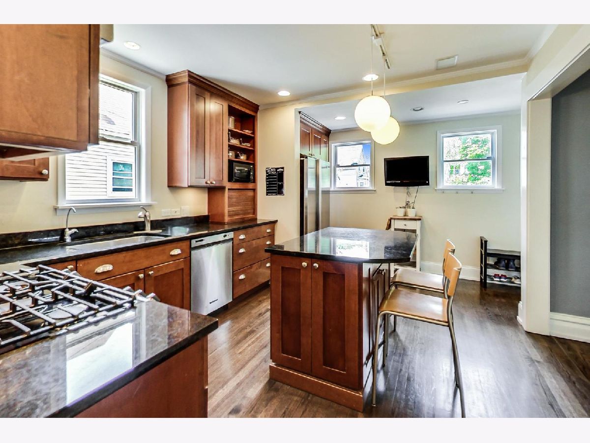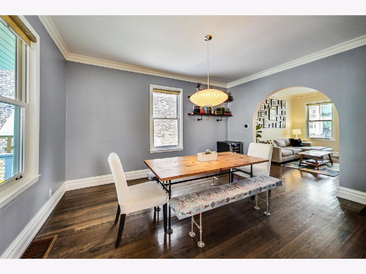 This unique home is situated on a quiet, tree lined street in Bowmanville on an extra wide 37 foot lot with a side driveway. This charming and updated home is larger than it looks. Thoughtfully maintained architectural detail - arched doorways, built-in dining room hutch, hardwood floors and crown molding - but the home is updated to accommodate a modern lifestyle. The large kitchen leads to an awesome outdoor space - covered deck, huge yard, 2 patios, a kids play space, and an outdoor bar! Recent improvements include 2 gorgeous new bathroom gut renovations, finished basement, newer Andersen windows, tear off roof in 2011, New HVAC system in 2018, re-built front porch, and newly landscaped front and back yards. This home is great for entertaining both inside and out. 2 car garage plus driveway parking. Steps to the heart of Lincoln Square and Andersonville.