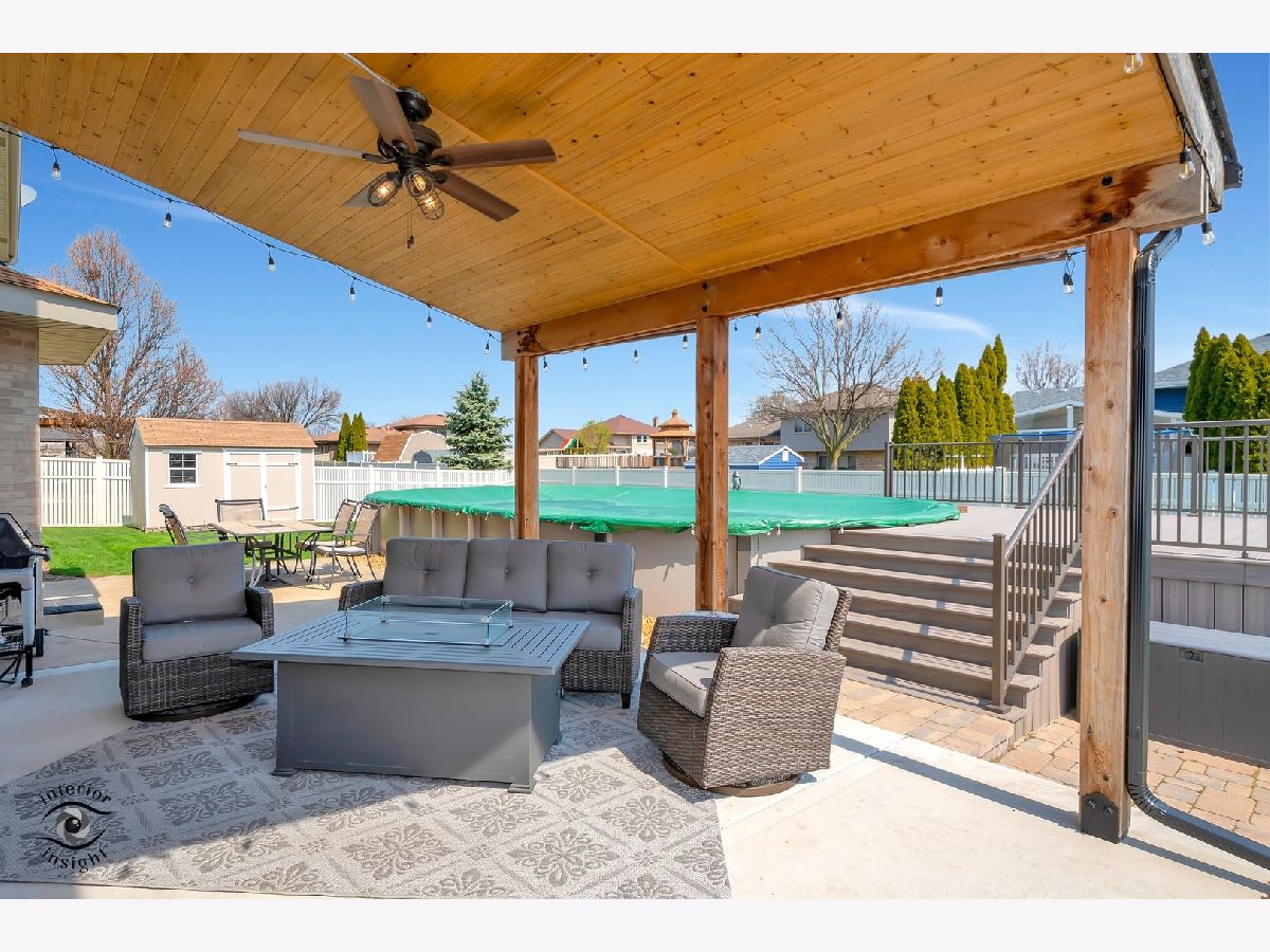 Exquisite Living in Tinley Park! A Modern Marvel with Comfort and Elegance. Discover this gem, where luxury meets functionality in a sprawling 3,242 sq. ft. home, complemented by a spectacular finished basement. Every corner of this residence echoes quality updates and tasteful aesthetics. Step inside to an open floor plan, where the kitchen seamlessly transitions into the great room. Adorned with quartz countertops, pantry, sleek cabinetry, stainless-steel appliances and a breakfast bar, this kitchen is a culinary enthusiast's dream. The luxury laminate vinyl flooring adds to the elegance. This home boasts five bedrooms and 3.5 baths, ensuring ample space for family and guests. The convenience of a main-level bedroom and laundry adds to the allure. Park with ease in the spacious three-car garage. Step into the family room, a welcoming gathering space complete with a cozy fireplace, where warmth and comfort invite you to relax and enjoy memorable moments. The kitchen opens up to a backyard paradise. Here, an 18 x 33 heated pool awaits, surrounded by PVC fencing, a large patio with a covered pavilion - perfect for hosting or unwinding. The front porch, covered and welcoming, invites serene moments. Storage and outdoor care are made easy with a practical shed and an efficient sprinkler system. The master suite is a retreat in itself, with a wood beam accentuating the cathedral ceiling, adding character and warmth. The basement, a showstopper, features a recreation room, a bar, abundant storage space and a full bathroom, setting the stage for memorable entertainment. Set in the coveted Lincoln-Way High School district, this home is conveniently close to shopping, highways, and is just a 30-minute drive from Chicago. A/C units new 2022 & 2023. Main level Anderson windows 2023. Upstairs Pella windows 2018. Shed 2019. Sump pump 2023. Backup sump pump 2020. Close to Metra and Interstate. In this house, every detail is an ode to luxury and comfort. Welcome to your new home, where every day feels like a stay at a luxury retreat. Call today!