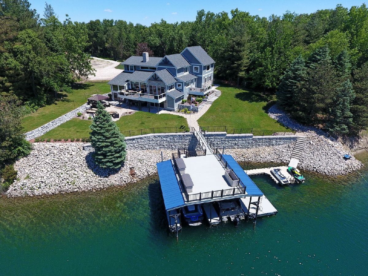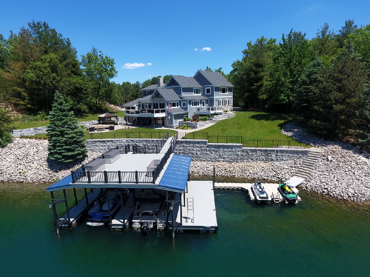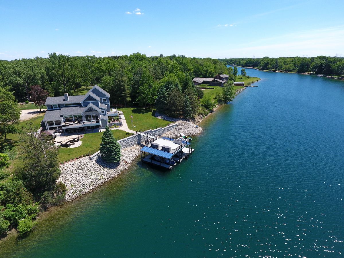 The captivating views of this waterfront home will surely catch your attention! Once your done looking at the pristine lake, you will see this home has been updated with high quality material, timeless touches and modern technology inside and out. Large kitchen with granite counters, island/bar combo, plus a coffee bar overlooking the lake. Sliding doors open to one of the two beautiful decks. Plenty of bedrooms and bonus rooms for family and friends to enjoy. The walkout basement holds, a wet bar, pool table area, movie/gaming area, storage and a full bathroom. New tankless water heater, boiler and in-floor heat. Private lot has new sod, circle driveway and has been cleared and graded to make room to build a pole building if you like. Great back yard with stamped concrete patio, fire pit, hot tub and covered porch. All leading to an amazing double decker dock with two boat slips, swim platform and party deck on top. Two wave runner docks. Access to three lakes, beach, campground & clubhouse. Year round activities include: water skiing, fishing, kayaking, paddle boarding, swimming, pontooning, ice fishing, atv/snowmobiles and more! Call today to set up your showing!