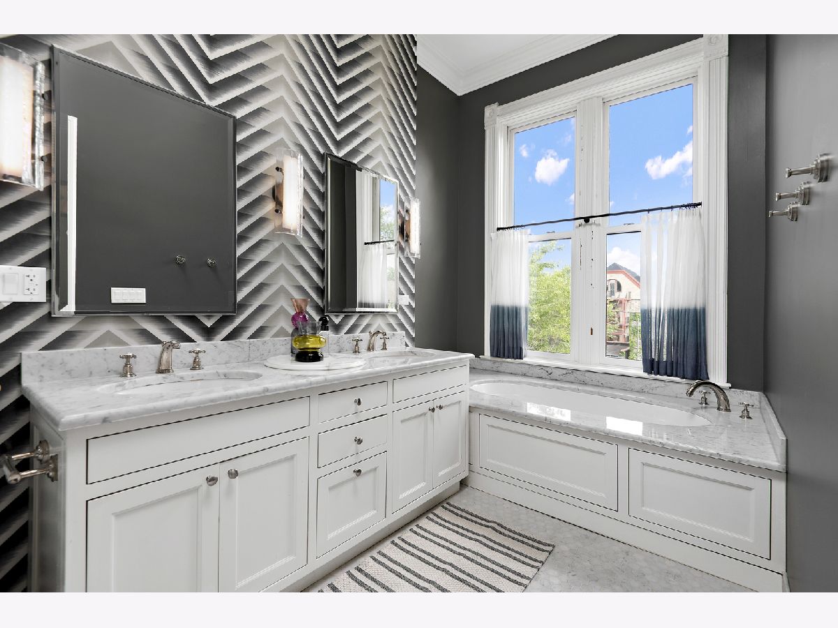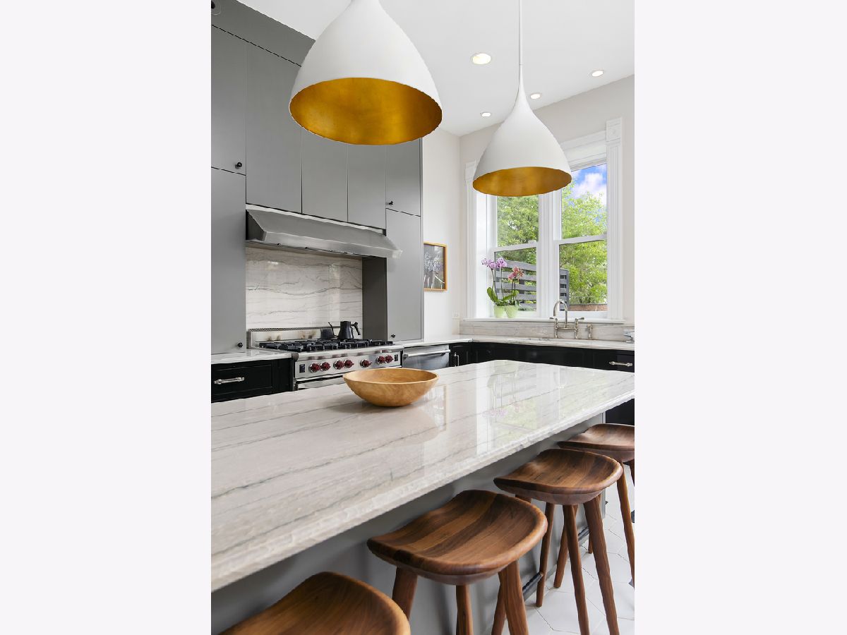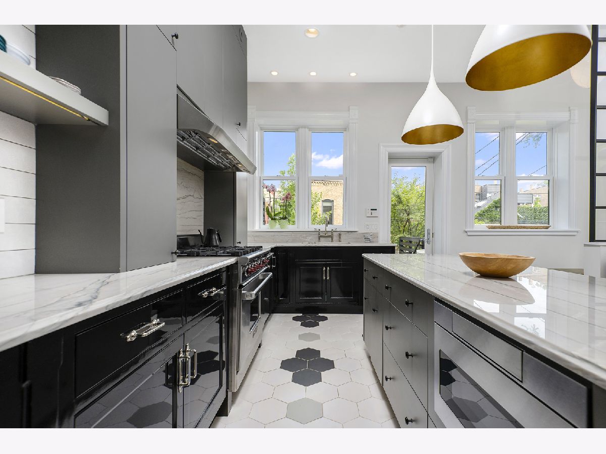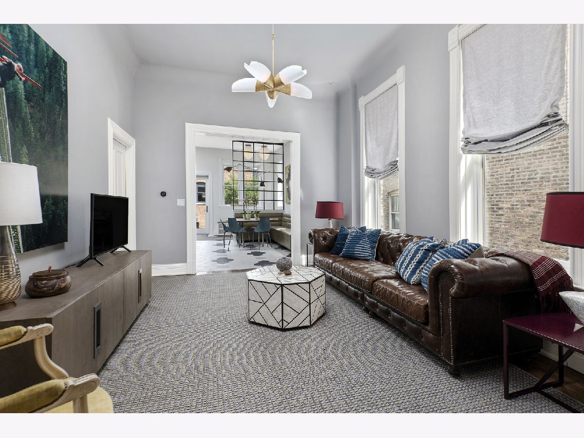 Sold before print. Unparalleled renovation of this stunning brick Victorian on an oversized 25 x 171' lot in Historic Wicker Park with a sizeable backyard plus a versatile studio apartment coach house. Featured in Luxe magazine for elevated and joyful interior design masterfully juxtaposing modern elements with vintage attributes. This meticulously maintained home boasts original woodwork, ceiling medallions, pocket doors, and extensive millwork paired with designer lighting, painted moldings, and modern wallpaper. Soaring ceiling heights and incredible natural light complement this highly functional floor plan with the main level featuring a classic foyer, formal living room with dramatic bay windows, separate dining room with bold built-ins, spacious family room off the bright eat-in kitchen with quartzite countertops, commercial-grade appliances, large built-in banquet, bar area, and cleverly partitioned mudroom entry with Crittal windows. Large stone pavered deck off of kitchen leads to substantial tree-lined backyard. 2nd level features 4 bedrooms upstairs and 2 full bathrooms. Primary suite has walk-in-closet and marble bath with steam shower and separate soaking tub. Lower level with large recreation room plus guest bedroom, full bathroom, abundant storage and separate entry. Bonus coach house above heated 2 car garage features a sunny studio apartment with full kitchen and bathroom perfect for home office/gym/guest suite. 5 minute walk to blue line, park and all of the boutiques and restaurants in the heart of Wicker Park.