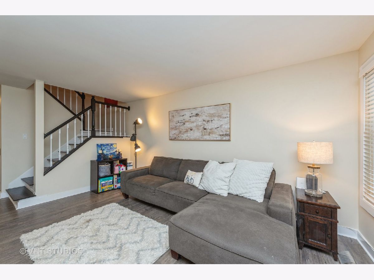 Great 2 bedroom townhouse in sought-after Stevenson HS District. Both bedrooms have plenty of closet space and feature en-suite bathrooms with shower tubs and new vanities and lighting. New vinyl planked floors on the first floor. Galley kitchen features stainless steel Samsung fridge, GE stainless microwave and oven/stove. New dishwasher. Additional cabinets and butcher block counters with space for work. Dining area with sliding door to back yard patio and open space. Living room boasts recessed lighting and a wood burning fireplace with gas starter and classic surround . Refinished staircase. 2nd floor laundry for ease and convenience with new frontload stainless washer and dryer Hurry home!