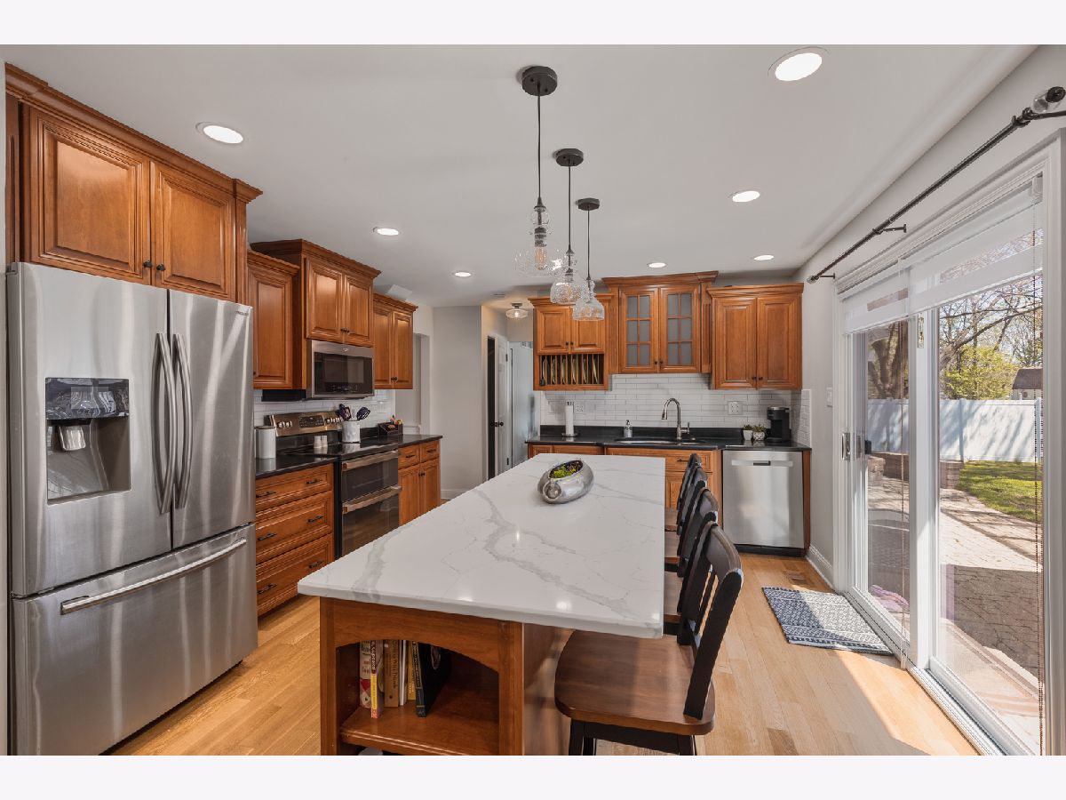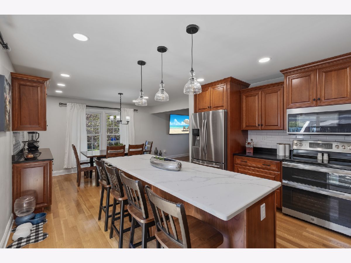 Walking up to this completely move in ready 4 bedroom 2 1/2 bathroom home you're immediately impressed with the all brick paver driveway and walk up! This home was remodeled in November of 2022. The kitchen with custom cherry soft close cabinets, complete with under cabinet lighting, all stainless steel appliances, and new light fixtures and electric throughout the open concept kitchen and dining room combo. The entryway coat closet was turned into a large pantry to provide ample storage (but could easily be reverted back if desired). There is no shortage of natural light in this home with 3 sliding doors leading out to an amazing backyard OASIS. This backyard is what "staycations" are made of..the 800 sq ft. multi level deck leading up to the above ground pool also engulfs the completely covered 7 person hot tub made even more relaxing by the installed string lights overhead. Entertaining outside is easy and fun with the outdoor kitchen equipped with built in Smoker and Grill installed around the large brick fire pit making for a perfect ending to a perfect summer day. This backyard even has a fully powered outdoor shed to meet any storage or work space needs. Back inside the home, the family room boasts two ceiling fans for ideal airflow and has matching built in cherry wood shelving around a wood burning fireplace, to make for a cozy living space. Upstairs you'll find all new windows and treatments in the 4 bedrooms and 2 bathrooms.. The primary bedroom has built in storage bench along with attached private bath and walk in closet both with new life proof flooring. The other 3 bedrooms also have ample storage within large closets and share a full bathroom with new life proof flooring as well. The fully finished basement features an oversized wet bar along with mini fridge. You will also find the laundry room and a HUGE area for storage down there as well. The 2 car attached heated garage is in impeccable shape with epoxy floors and built in cabinets. It is currently being used as a "man cave" hosting a full size pool table (can either stay or be taken) and a movable bar under the TV mount. This gorgeous home is located just half of a mile from local Downers Grove South High School and less than 3 miles to downtown restaurants, shoppes and Metra Train Station!
