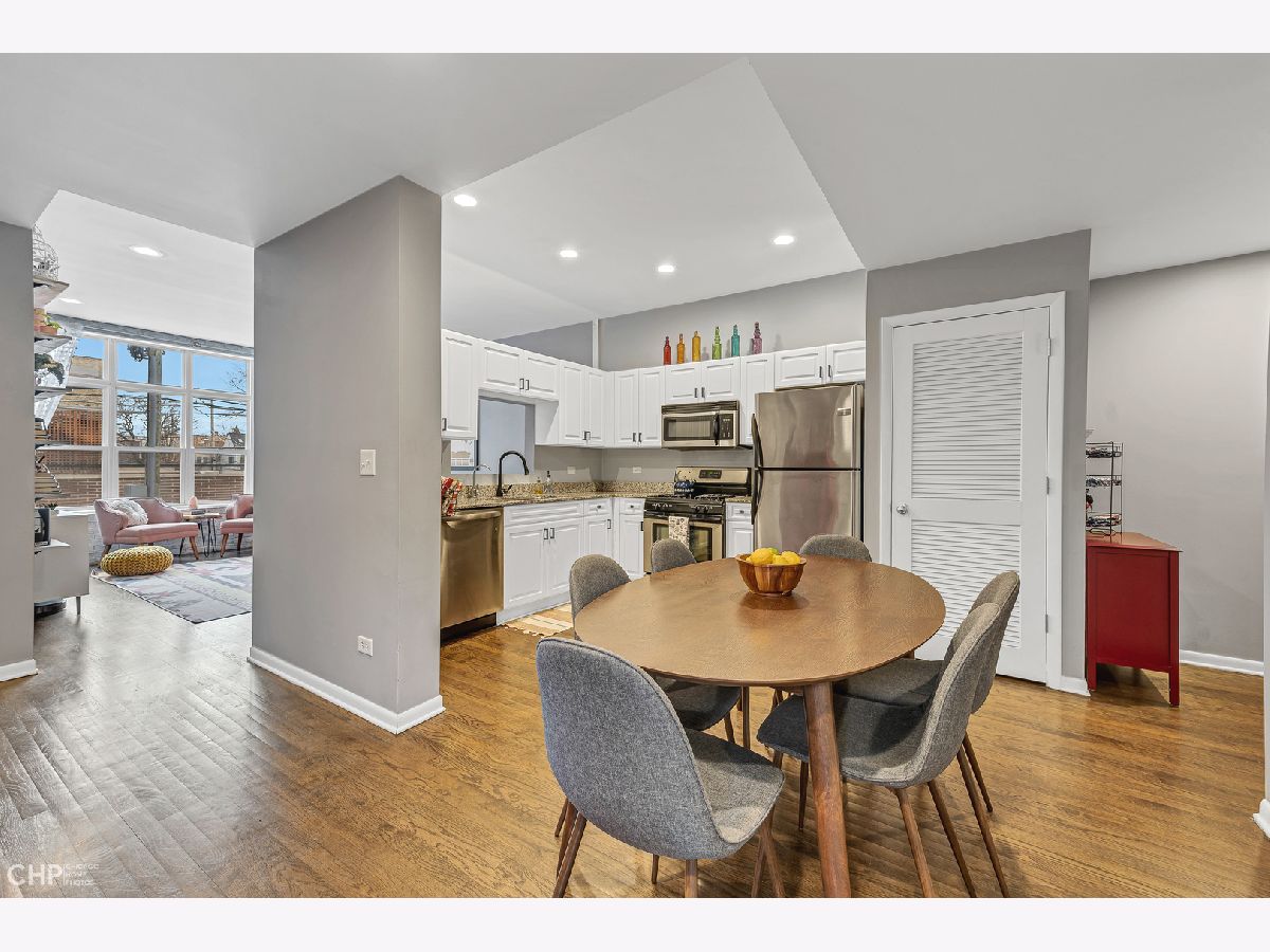 In the heart of Ravenswood, boutique elevator building; 10 residential units and 1 commercial space. Quiet, preferred North exposure unit with oversized windows. Loft feel throughout with a fully enclosed bedroom for added privacy and noise control. Partially opened kitchen provides great flow and maximum use of space in both living and kitchen area. Separate Dining, great for entertaining. Kitchen offers plenty of cabinets and great preparation counters. Private oversized terrace with West exposures and amazing afternoon light. In-unit laundry and central air. Hardwood floors throughout. Great storage and plenty of closets, also additional storage outside of unit. One gated parking space included with the sale. Low assessments in solid proactive self-managed association. Strong reserves. No rental restrictions, currently 80% owner occupied. Pet Friendly. Fabulous walkability, A+ neighborhood, immediate access to shops, restaurants, coffee shops, pubs, CVS, Mariano's, 2.5 blocks to the Brown Line, 3 blocks to the Metra, 2 blocks to Winnemac Par. Minutes to Andersonville, Lincoln Square, North Center and all that Chicago has to offer!