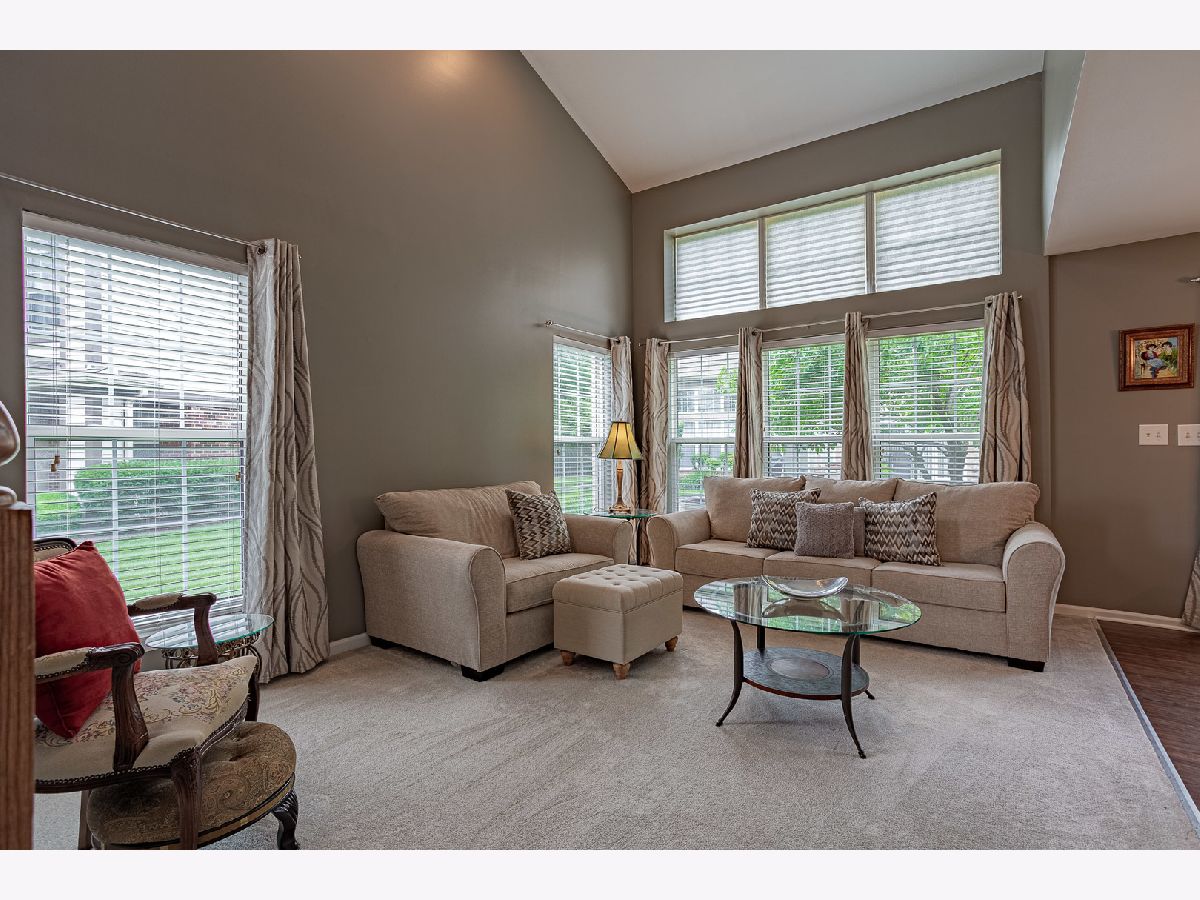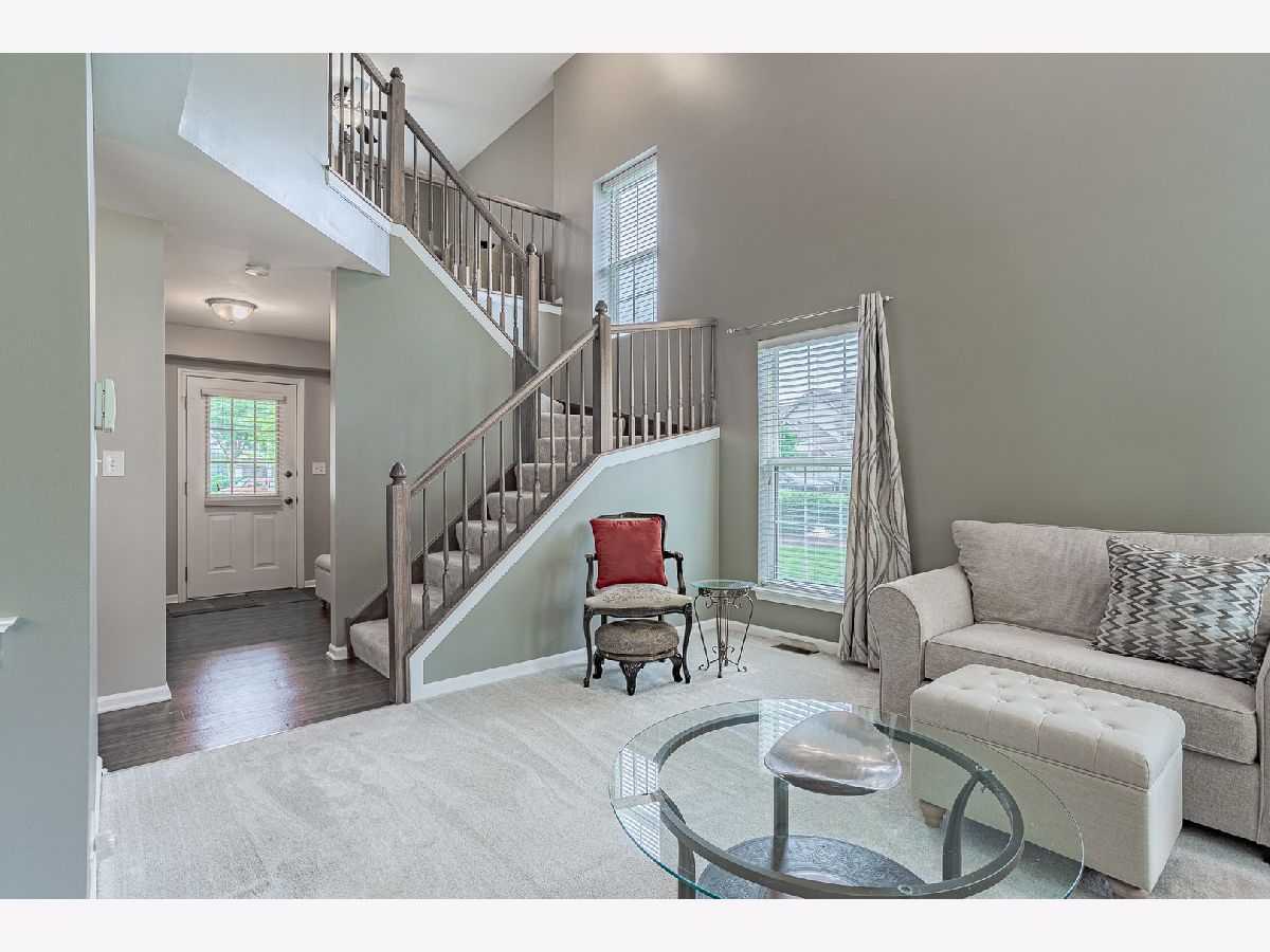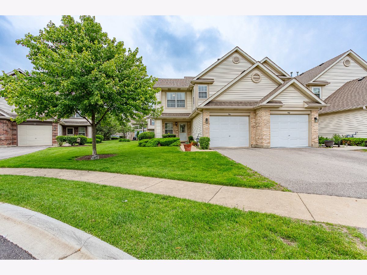 GORGEOUS 2-story end-unit townhome with a cul-de-sac location! 2 bedrooms, 2.5 bathrooms, plus a loft. Soaring ceilings in the 2-story living room with an open staircase. Stainless steel appliances in eat-in kitchen. Updated hardwood flooring, plush carpet, and freshly painted throughout. White 6-panel doors and trim. Primary bedroom with private bath and walk-in closet! Open and airy floorplan is flooded with natural light! Separate utility room with washer and dryer. Attached Garage. 54/211 Schools. Convenient location that is close to parks, a Metra station, shopping, restaurants, and highways.