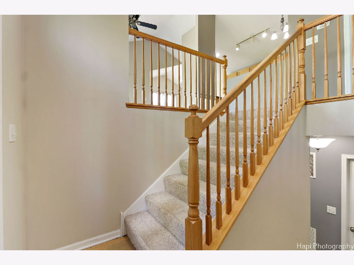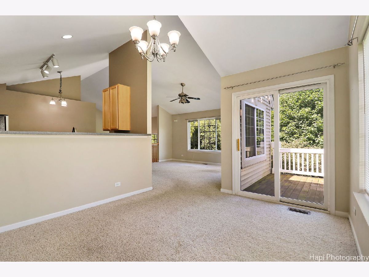 Rarely available Morgan Hill end unit with gorgeous views! Welcome to this bright & sunny former builder's model with volume ceilings and an open raised ranch floor plan. Main level features separate living room and loft area plus 2 bedrooms and 2 full baths. Enjoy cooking in the spacious kitchen with abundant 42" cabinets & cozy breakfast area. A separate dining room leads to the balcony with beautiful nature views. Generous master suite with private bath & large walk-in closet. The finished English lower level offers plenty of flexible space with a huge family room, 3rd full bath and laundry room. Could easily be your perfect home office or 3rd bedroom. Attached 2 car garage with extra storage space, plus 2 guest parking spots. Subdivision has a lovely neighborhood park, playground & walking trail. Conveniently located within minutes of the Metra station, hospital, shopping & restaurants. A must see!