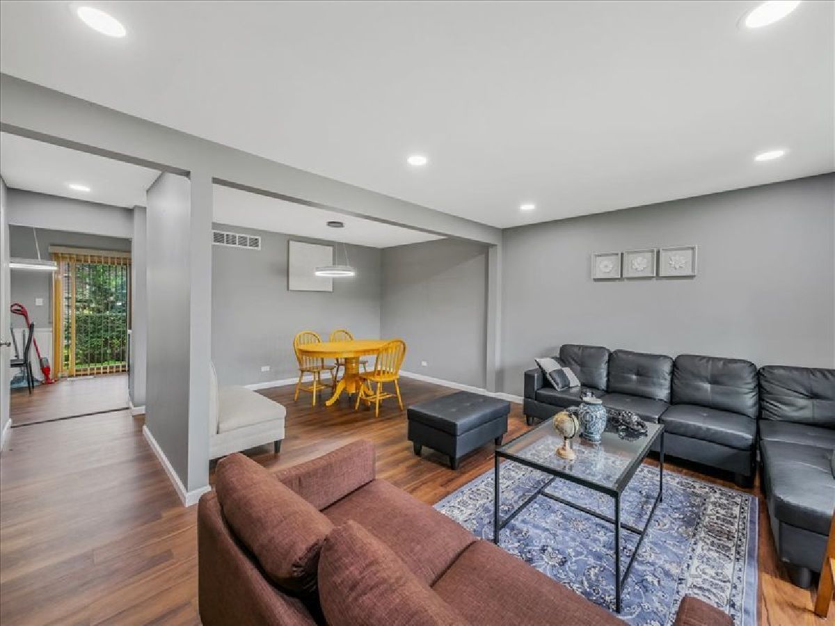 PERFECTLY LOCATED, HIGHLY RATED SCHOOLS, PRIVATE BACKYARD, & PRIVATE ATTACHED GARAGE! As you enter this stunning neighborhood, note the peaceful surroundings, well-maintained grounds, private front door entrance, private attached garage, and driveway space! Step inside, and you'll be greeted by a formal foyer, staircase, and room perfect for a workshop, office, at-home salon, or extra storage space! Entertain with ease in the OPEN CONCEPT living and dining rooms-perfect for holiday gatherings! The EAT-IN KITCHEN features incredible storage with ample cabinet space and flows beautifully to your private outdoor space. Take in the serene outdoor views from your private patio, offering plenty of space for outdoor grilling! Retreat to the spacious primary bedroom, which provides room for your bedroom set, a spacious closet, and hallway access to the full bathroom! The full bathroom boasts a spa-like feel with fresh paint, contemporary tile work, an upgraded vanity, and a new shower ! Guests will enjoy their choice of 2 additional bedrooms, each with peaceful views of the backyard! A short distance to shopping, entertainment, parks, and restaurants! Quick commute to Metra and highways! Incredible community and truly a commuter's dream! Well-maintained association that takes care of snow removal, lawn service, exterior building maintenance, and more!