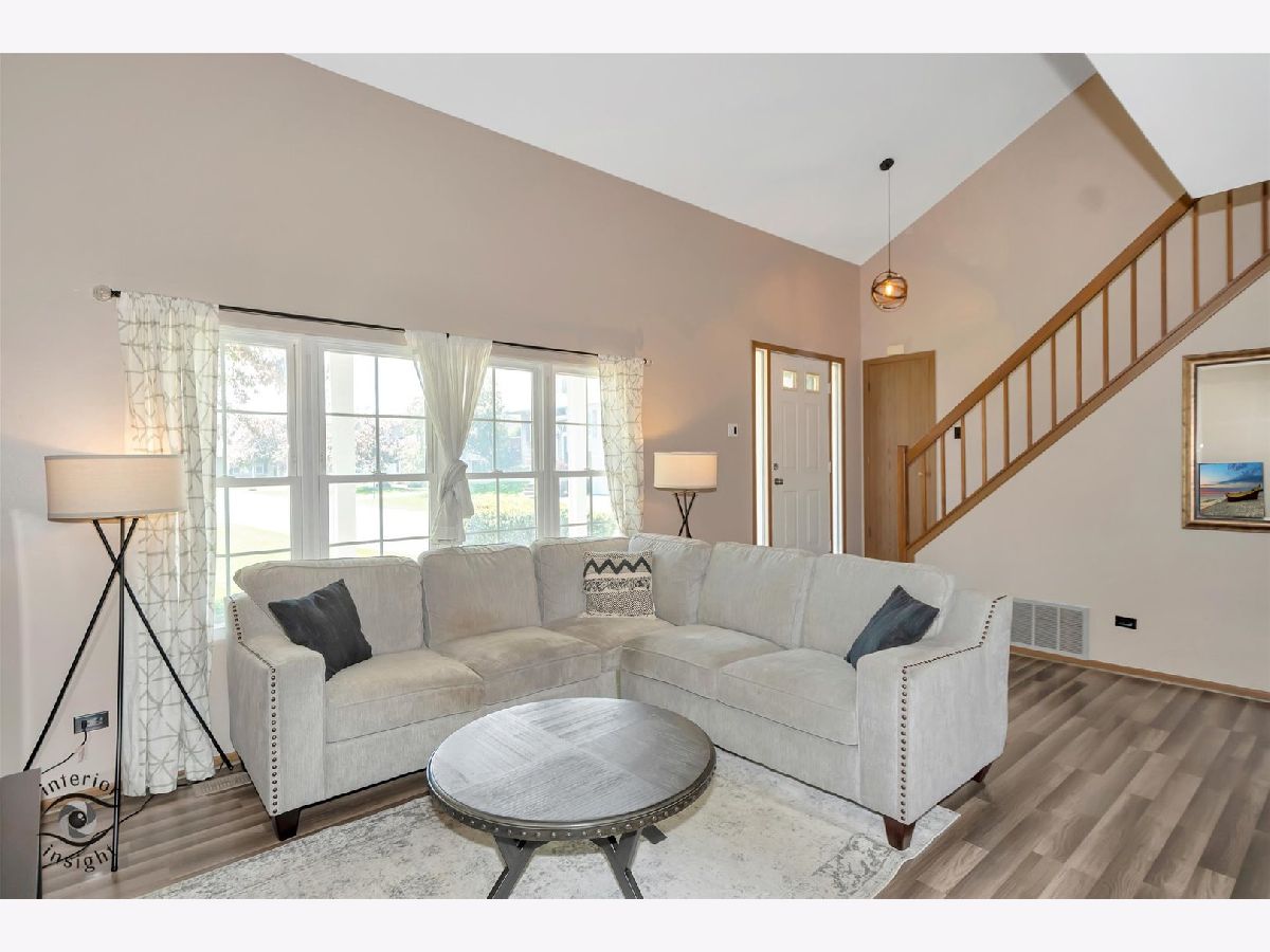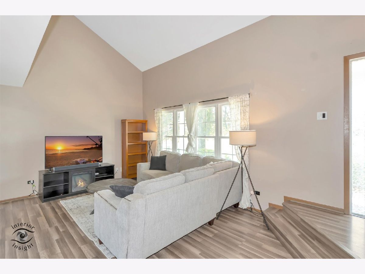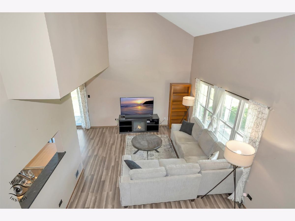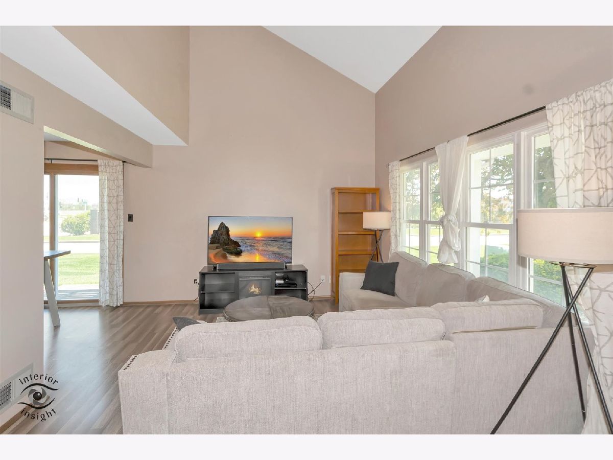 Stylish End-Unit Townhome in Prime Location! Welcome to this beautifully maintained end-unit townhome that perfectly combines comfort, style, and convenience. Step inside to an inviting open floor plan featuring a dramatic living room with vaulted ceilings and a stunning wall of windows, flooding the space with natural light. The kitchen comes fully equipped with appliances and flows effortlessly into the dining area, where sliding glass doors open to your own private deck-perfect for morning coffee or evening relaxation. The spacious master bedroom includes a generous walk-in closet, while the second bedroom offers its own private balcony, making it a serene retreat. With 1.5 bathrooms and first-floor laundry, everyday living is both easy and efficient. An attached one-car garage adds convenience and extra storage for bikes, seasonal gear, or outdoor equipment. Located near shopping, restaurants, entertainment, expressways, walking paths, and the local Park District, this home offers an unbeatable lifestyle. Whether you're a first-time buyer, downsizing, or looking for a smart investment (owners can rent!), this townhome checks all the boxes. Don't miss your chance to call it home!