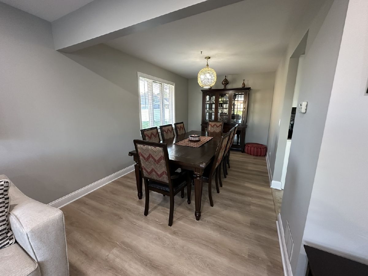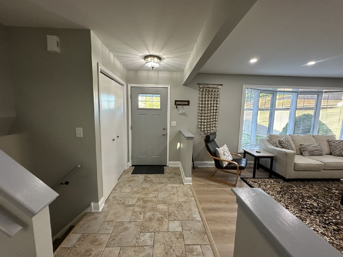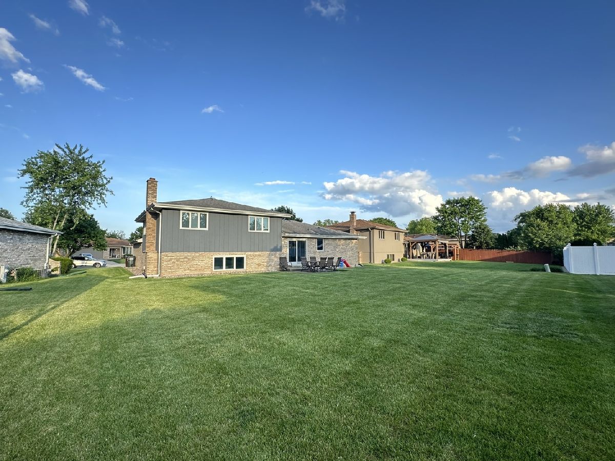 Nestled in the heart of Mokena, this renovated and well maintained split level has 4 bedrooms, 3 full bathrooms in highly sought-after Green Meadows sub division. When you first walk in, you'll be greeted with newer ceramic tile in the foyer. Beautiful luxury vinyl flooring in the main and lower levels. The large eat in kitchen boasts new SS appliances, quartz counter tops with tasteful back splash. Very bright home with extra canned lighting in the main and lower levels. Upstairs you'll find 3 freshly painted bedrooms, full updated hall bath, primary bedroom with updated private bath, new vanity and fixtures. The lower level is complete with family room, cozy fireplace with gas logs that can be turned back to a wood burner, laundry, another bedroom for guests or office, a third full bathroom, drywalled garage with hanging storage, sub-basement with tons of room for storage. Oversized yard with plenty of room for entertaining! Close to shopping, parks, schools, train, dining, etc... Great location! Truly a must see! This home was very well cared for and all the big ticket items have been done! Roof and skylight in '07, windows in '09, A/C & Furnace '14, whole house humidifier and sump pump '14, water heater '11, front door '21, exterior siding stained in '22. Welcome home!