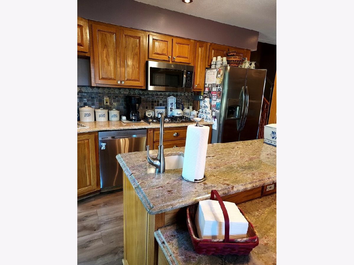 Beautiful, well maintained one-owner home on almost an acre, fenced, with 12.5' gazebo, two car attached garage with opener and 42' x 36' garage/workshop in back with water, electric, internet, and 9' overhead doors. Large wood decks in front and back make this a great home for outdoor entertaining! Solid oak and wood laminate flooring throughout. Gas forced air furnace, central air, plus, electric baseboard heat for backup. New (2023) tank-less gas water heater and additional under-sink water heater in LL bath, two whirlpool tubs, new roof (2021) and gutter guards (over $3600, in 2019). All kitchen appliances (stainless steel) are less than 3 years old, plus new granite counter tops. Washer/dryer stay along with all window treatments, natural gas grill, built-in safe, flagpole, and living room flat screen TV. Beauty shop equipment could stay, and sellers may have additional items to sell.