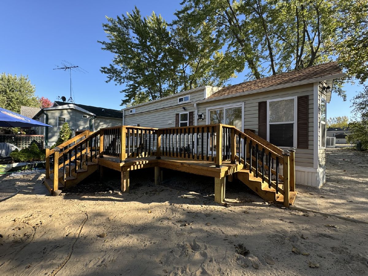 All decked out and ready to show. This park model has been redone from the inside out. Starting outside, it offers you a beautiful brand new deck, situated on your own private sand beach. Fish, boat, swim and build a sand castle all from your own property! Inside has been updated and upgraded from the floors to the ceilings. Walls have been updated with fresh paint and trim. New sliding glass door lets in plenty of sunlight. Kitchen updated with barn wood accent wall, backsplash, and new lighting. Bathroom has new walk in tile shower, located right next to the laundry closet, washer and dryer included. Master bedroom has built in closet and dresser, and an egress window as well. Items to mention: All in 2024: Roof, 6 windows, plumbing, flooring, and water heater. Bathroom remodel, brand new carpet in loft areas. New skirting, heat tape around the main lines. Double loft area is open and great use for storage or extra sleeping areas. John boat and trailer to convey as well. (We have the titles to the park model, boat and trailer). This is a private gated community. We have miles of fresh water channels, lakes, and marshes all interconnecting. This is the place to fish, swim, or boat, where it can reach 42 feet deep in some areas. (BIG FISH POSSIBILITIES!) Wildlife is abundant as well. This association includes a club house, community pool, a separate sand beach, pavilion, dog park, volleyball and basketball area (other games as well). They offer plenty of family and group activities. Other important notes: Close to I55 & only 60 Mins. from Chicago. Only Electric Boats & Golf Carts allowed. Association Dues are on a tiered basis and depend on the time you spend at the property- . Dues include water, sewer and garbage. Buyer / Buyer's agent to call Shadow Lakes to verify all rules / info. Lot size and square footage is estimated.